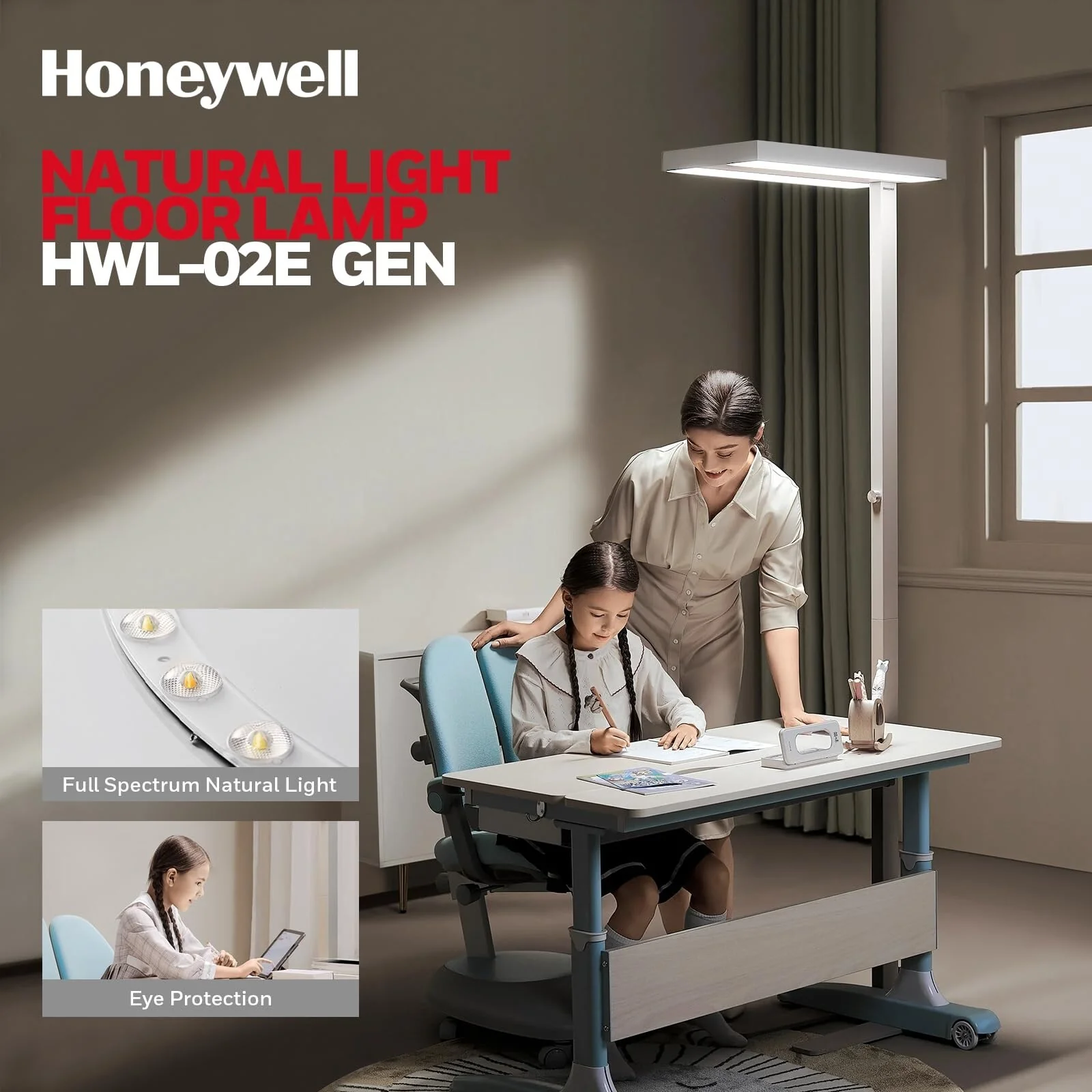 Honeywell LED Floor Lamp �C 5000K Dimmable, Eye Care, Home Office