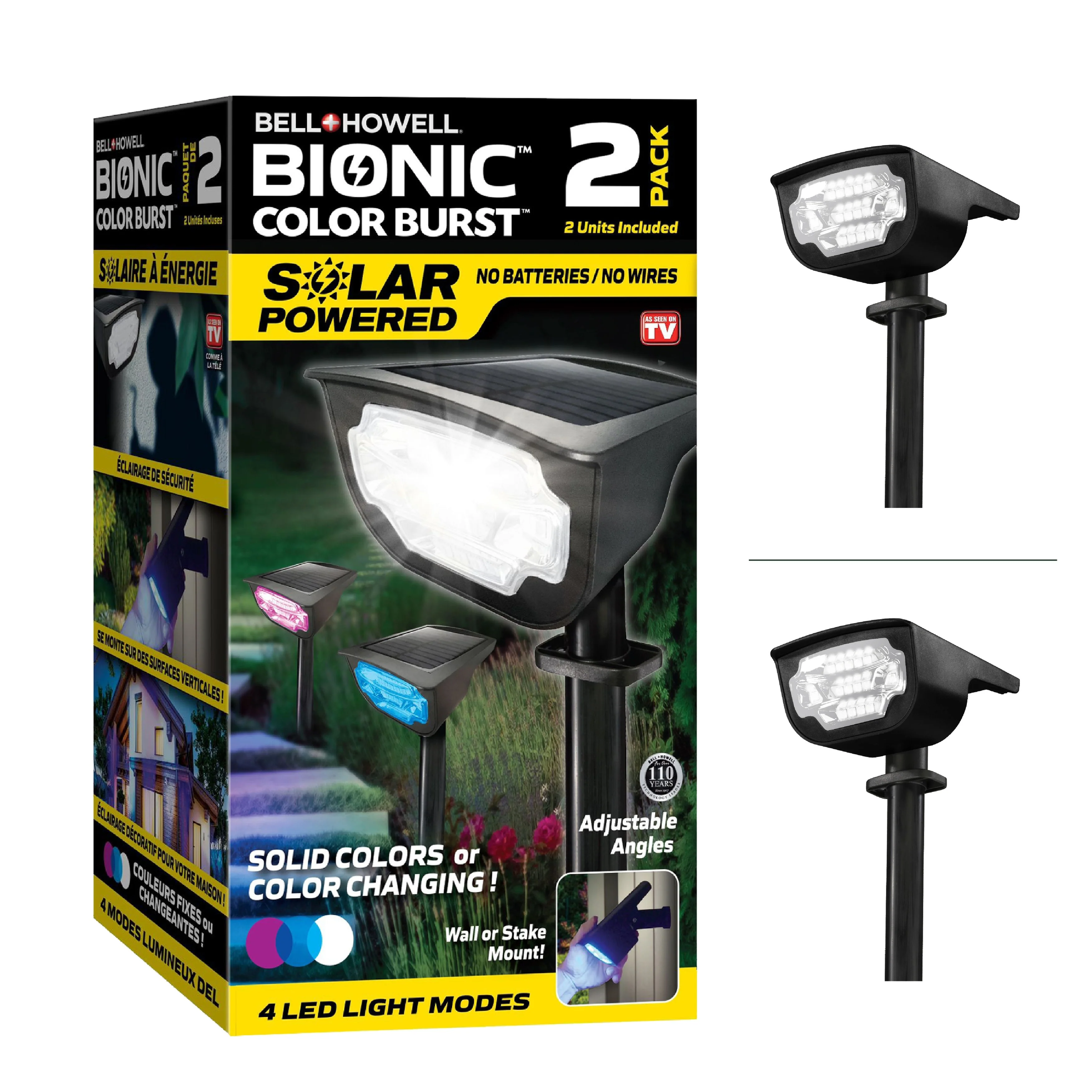 Bell + Howell Bionic Color Burst Solar Powered Waterproof Pathway Lights- 2 Pack - Black