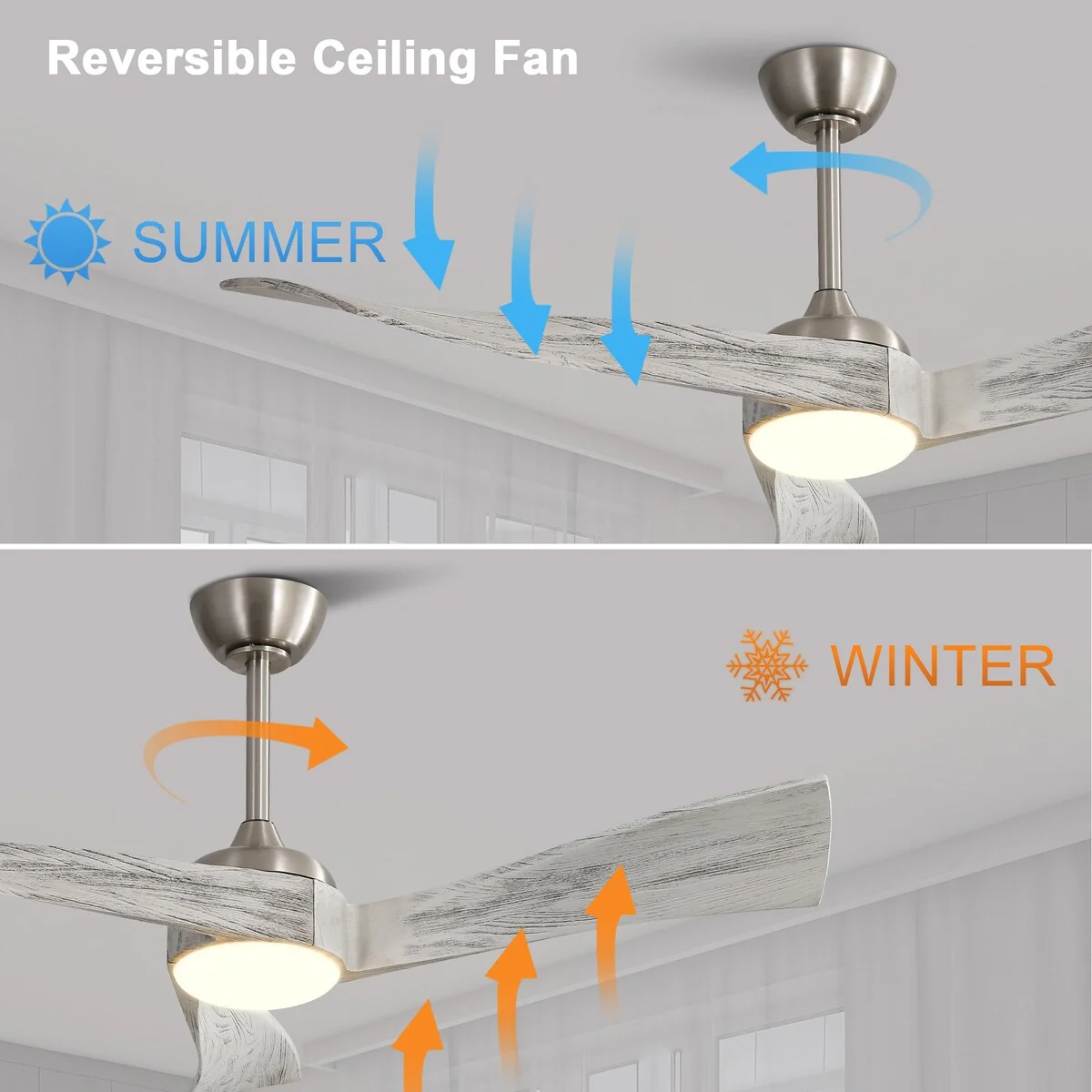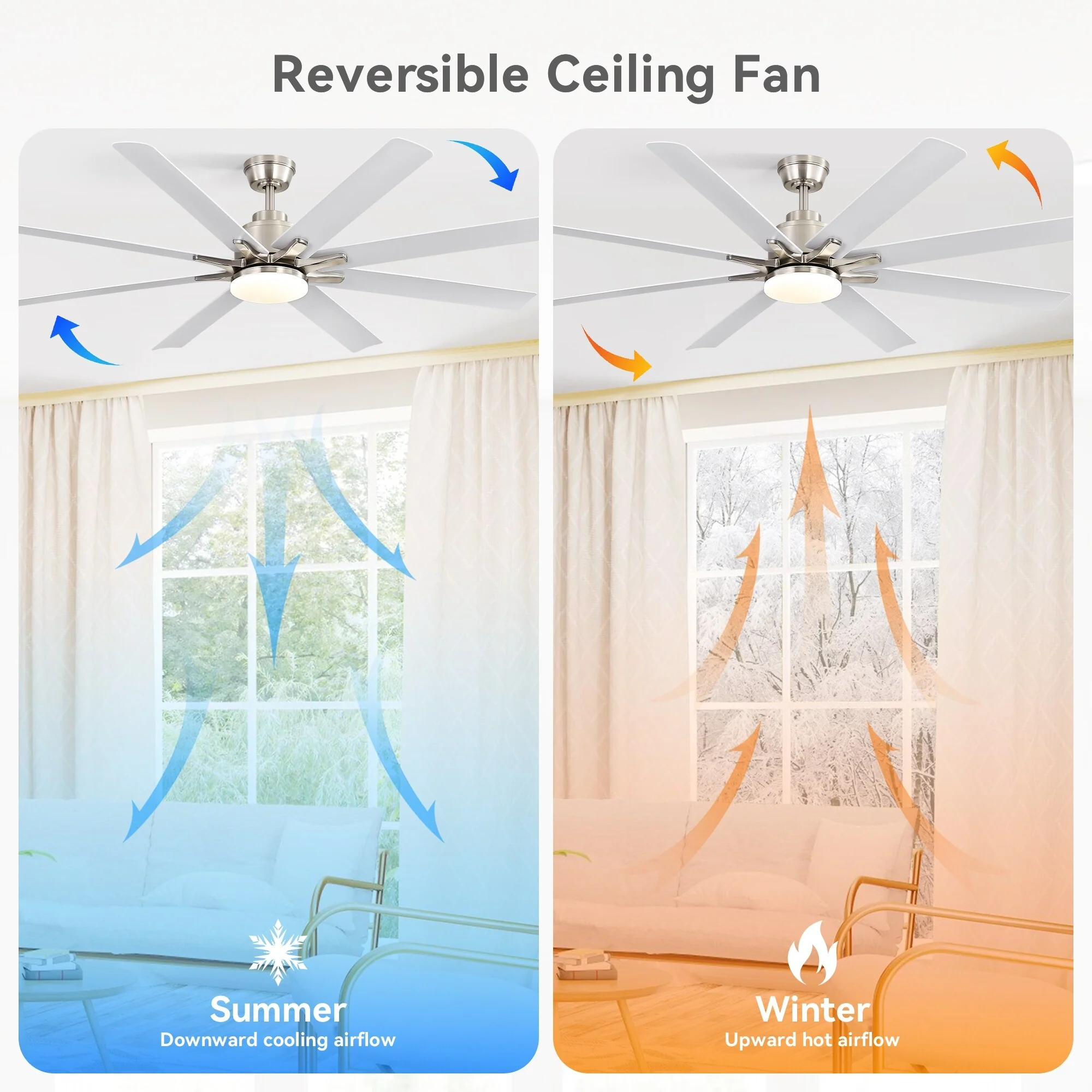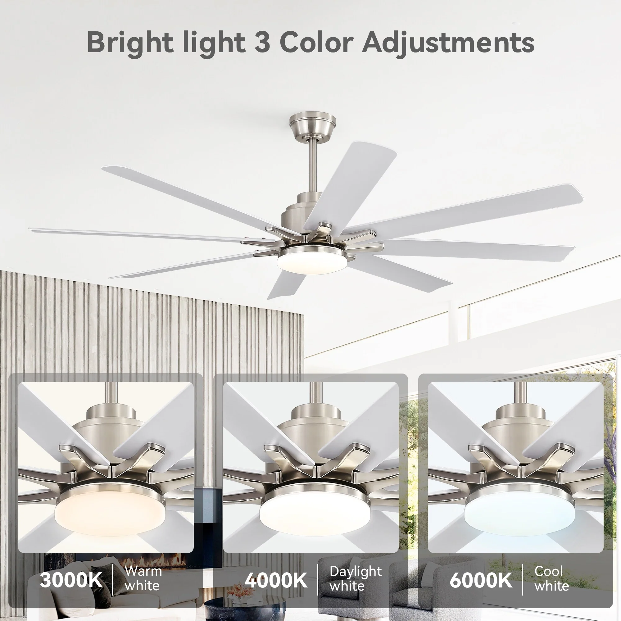 52" Reversible DC Motor Ceiling Fan with Remote/APP Control Dimmable 3-color Temperature, 8 ABS Blades Ceiling Fan Chandelier