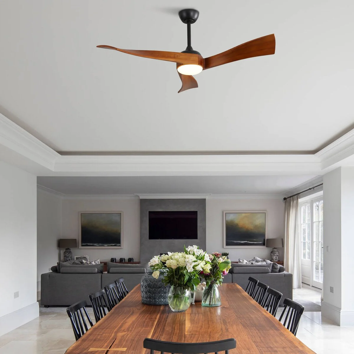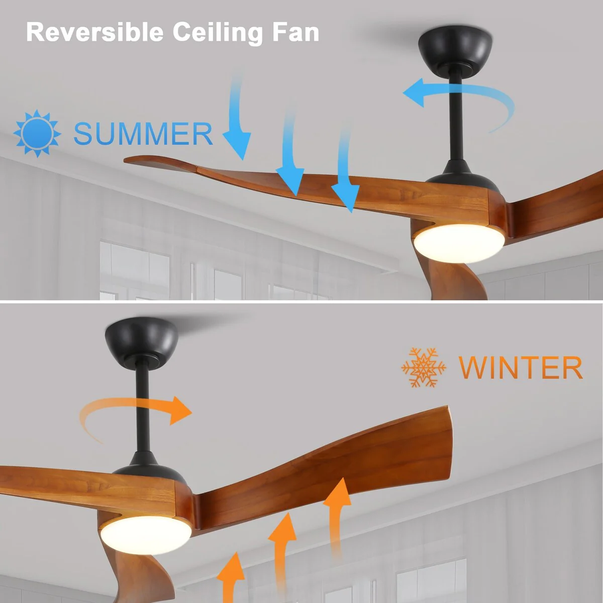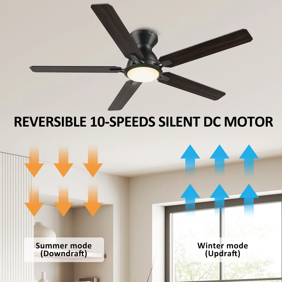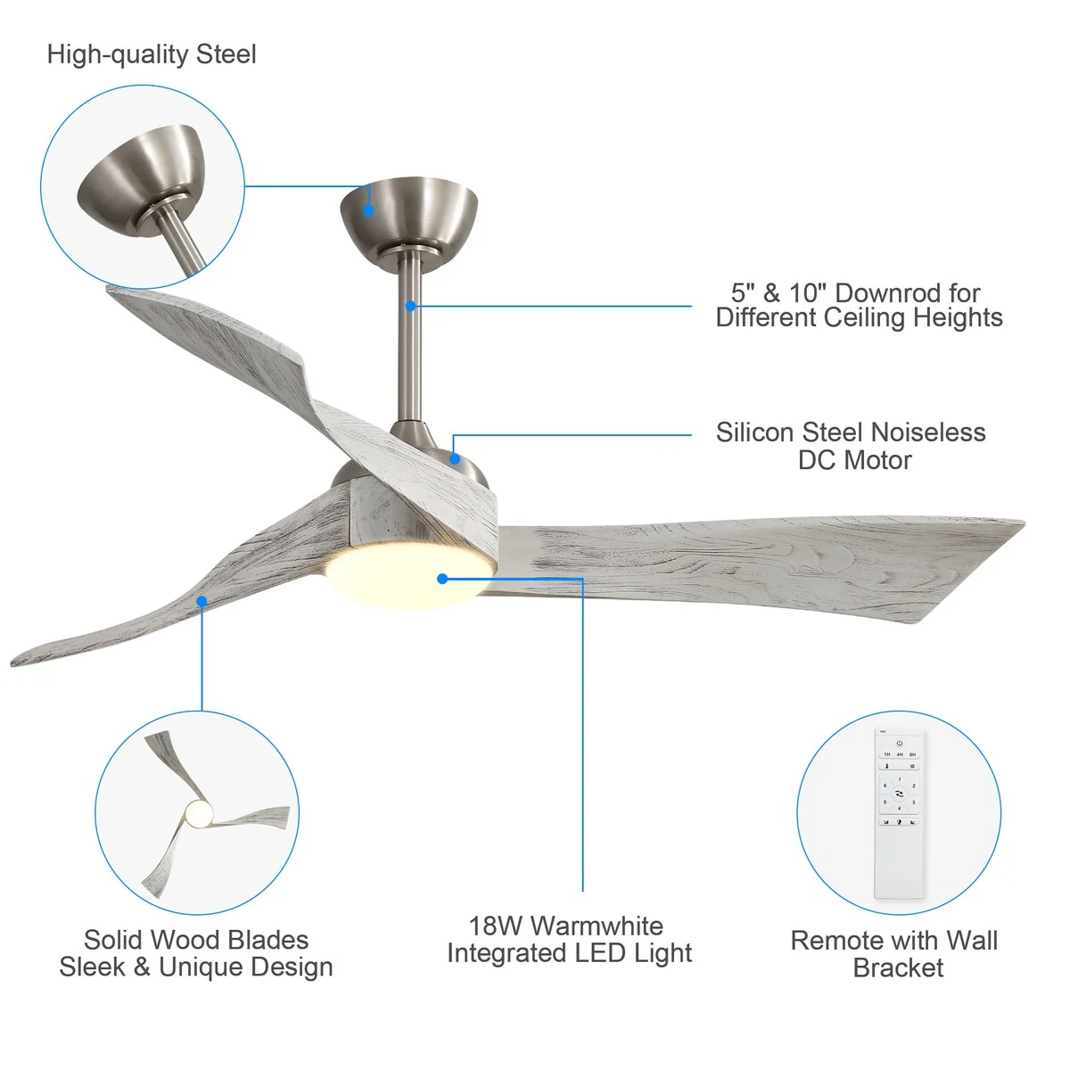 52" Reversible DC Motor Ceiling Fan with Remote/APP Control Dimmable 3-color Temperature, 8 ABS Blades Ceiling Fan Chandelier
