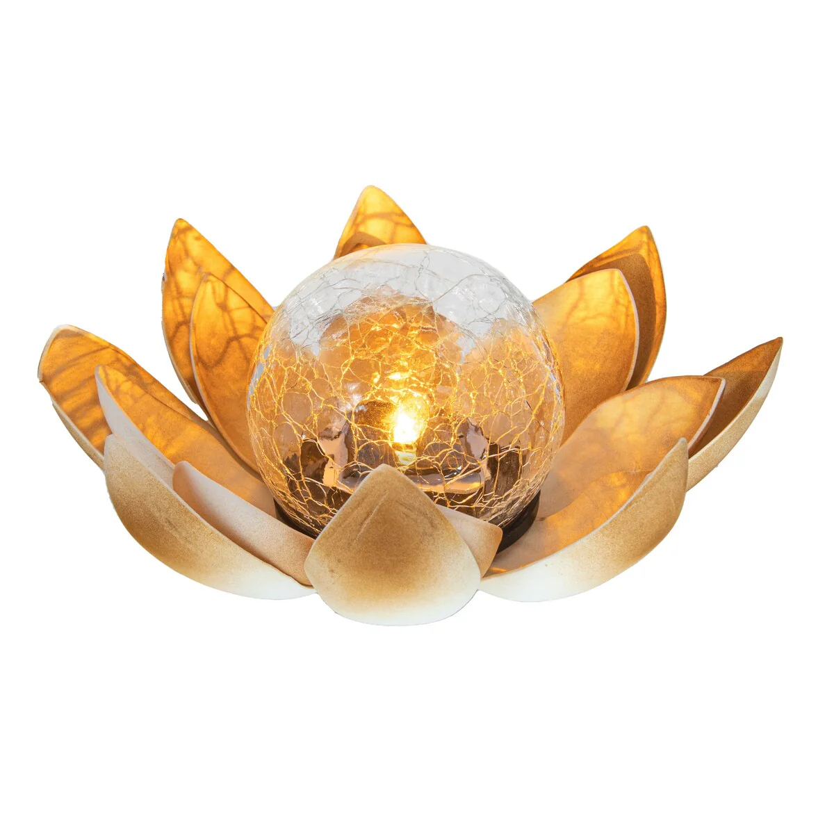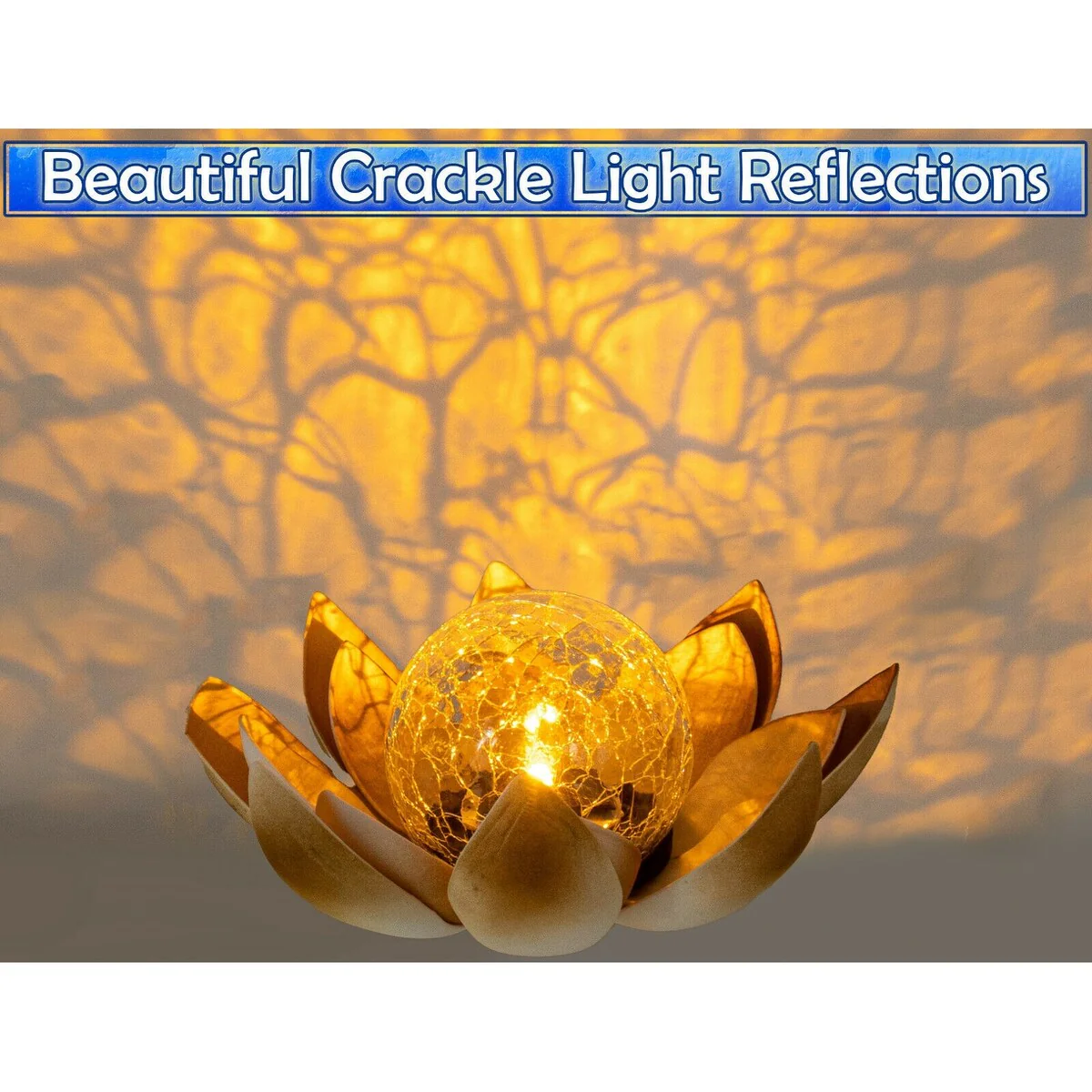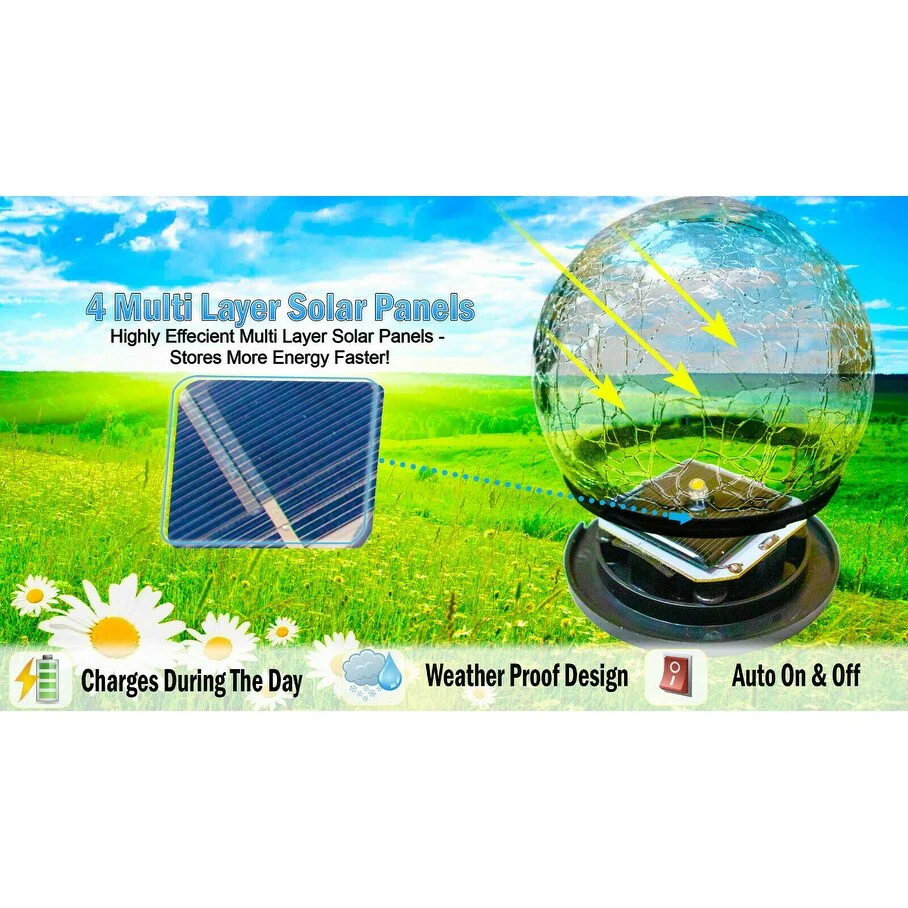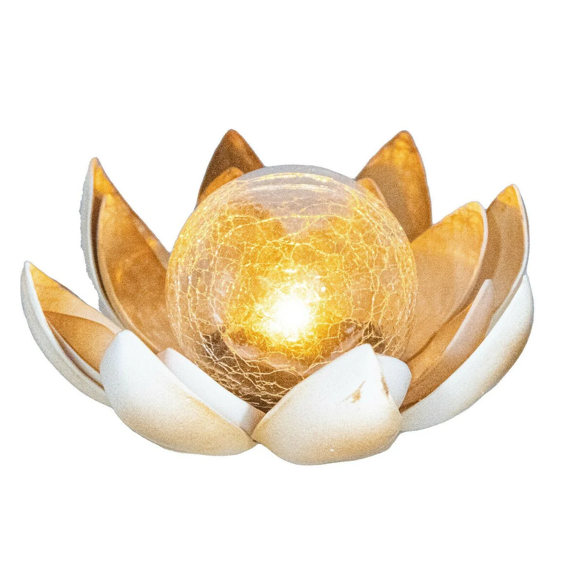 Solar Flower LED Garden Crackle Globe Outdoor Lotus Flower Landscape Decor Light