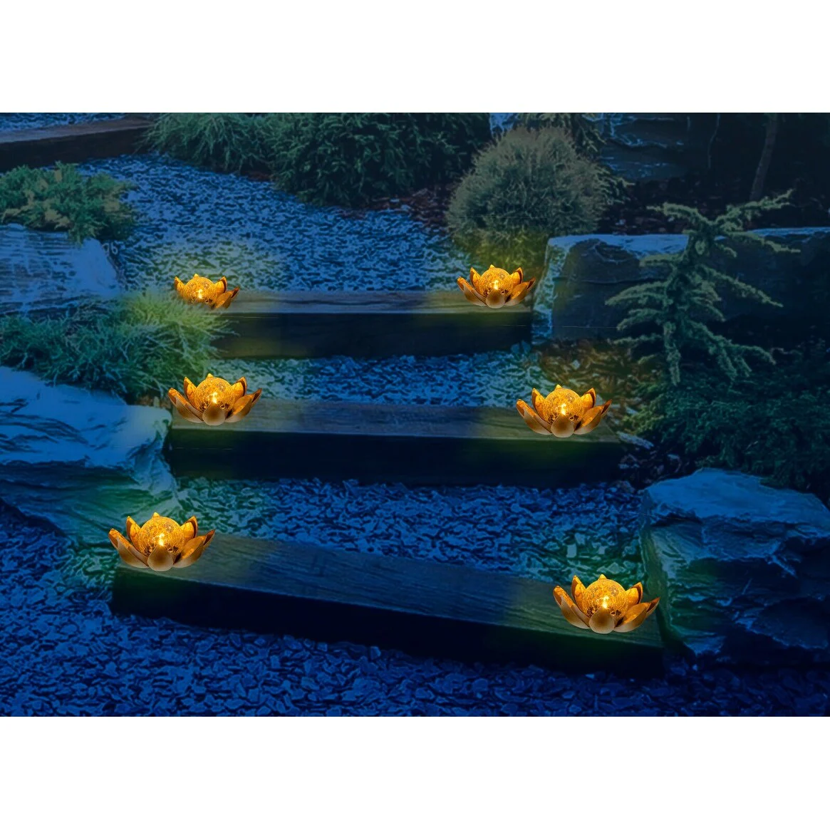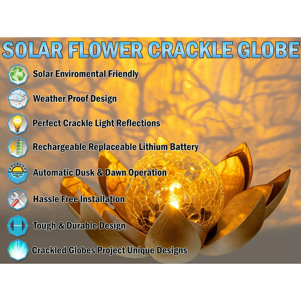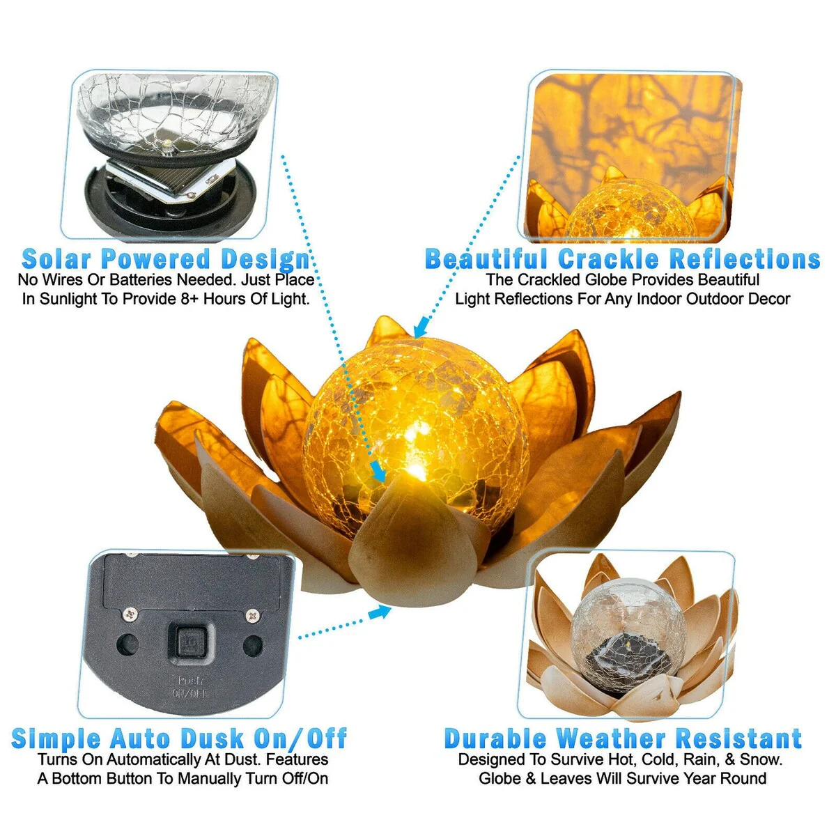 Solar Flower LED Garden Crackle Globe Outdoor Lotus Flower Landscape Decor Light