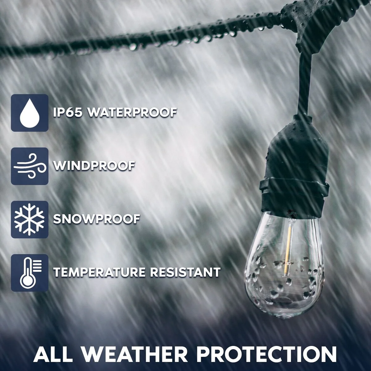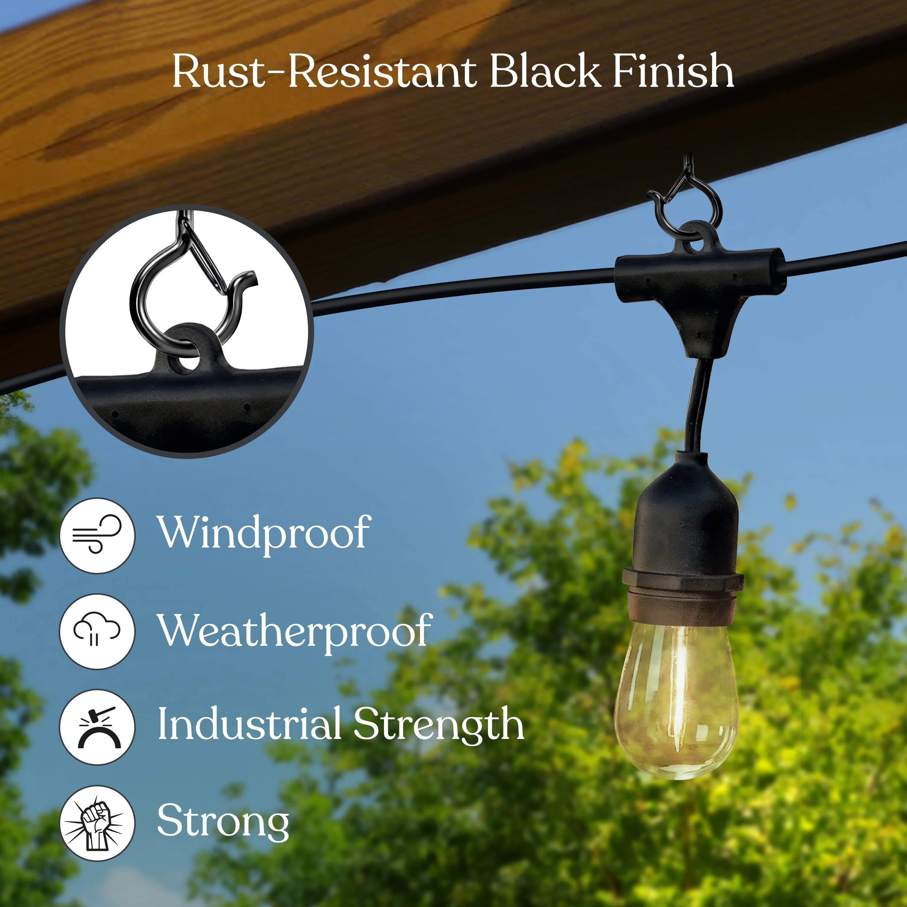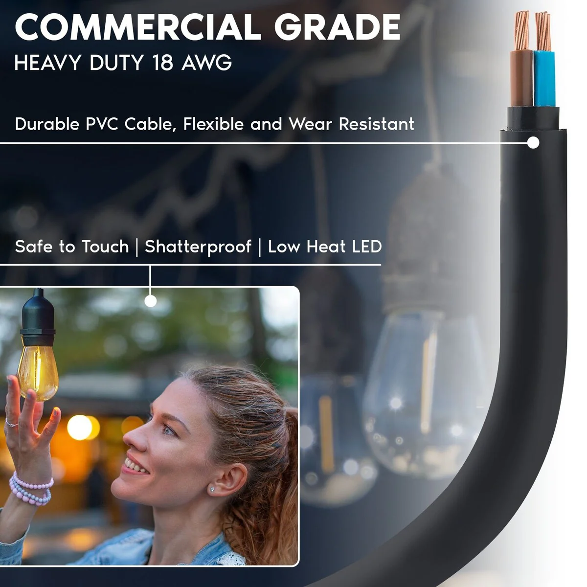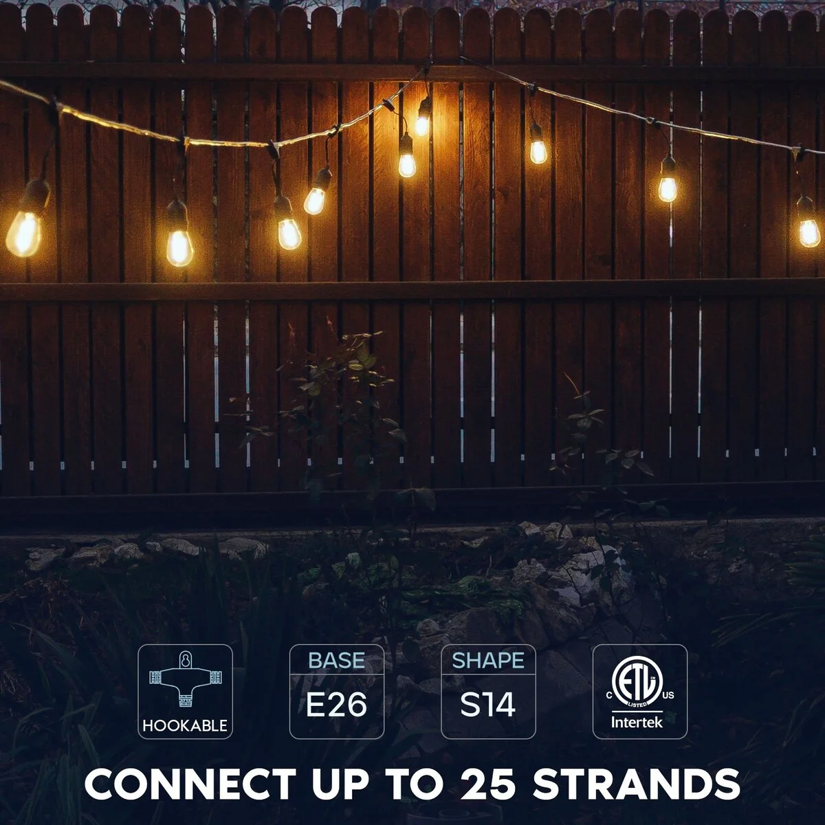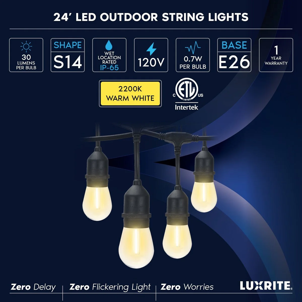 Luxrite 24FT LED Outdoor String Lights Commercial Grade Waterproof, 12 S14 Shatterproof Bulbs, IP65, Patio Garden Cafe - 24 FT