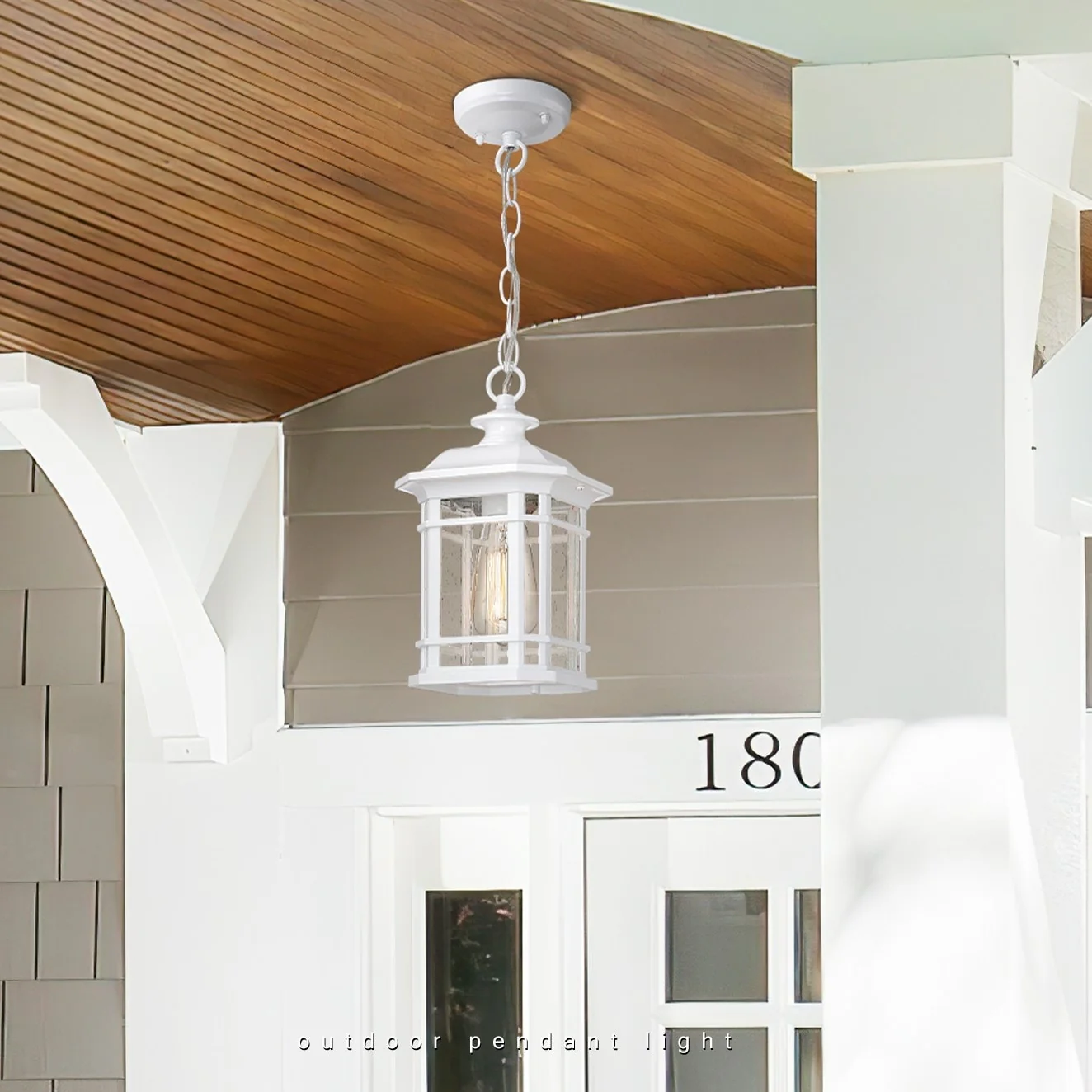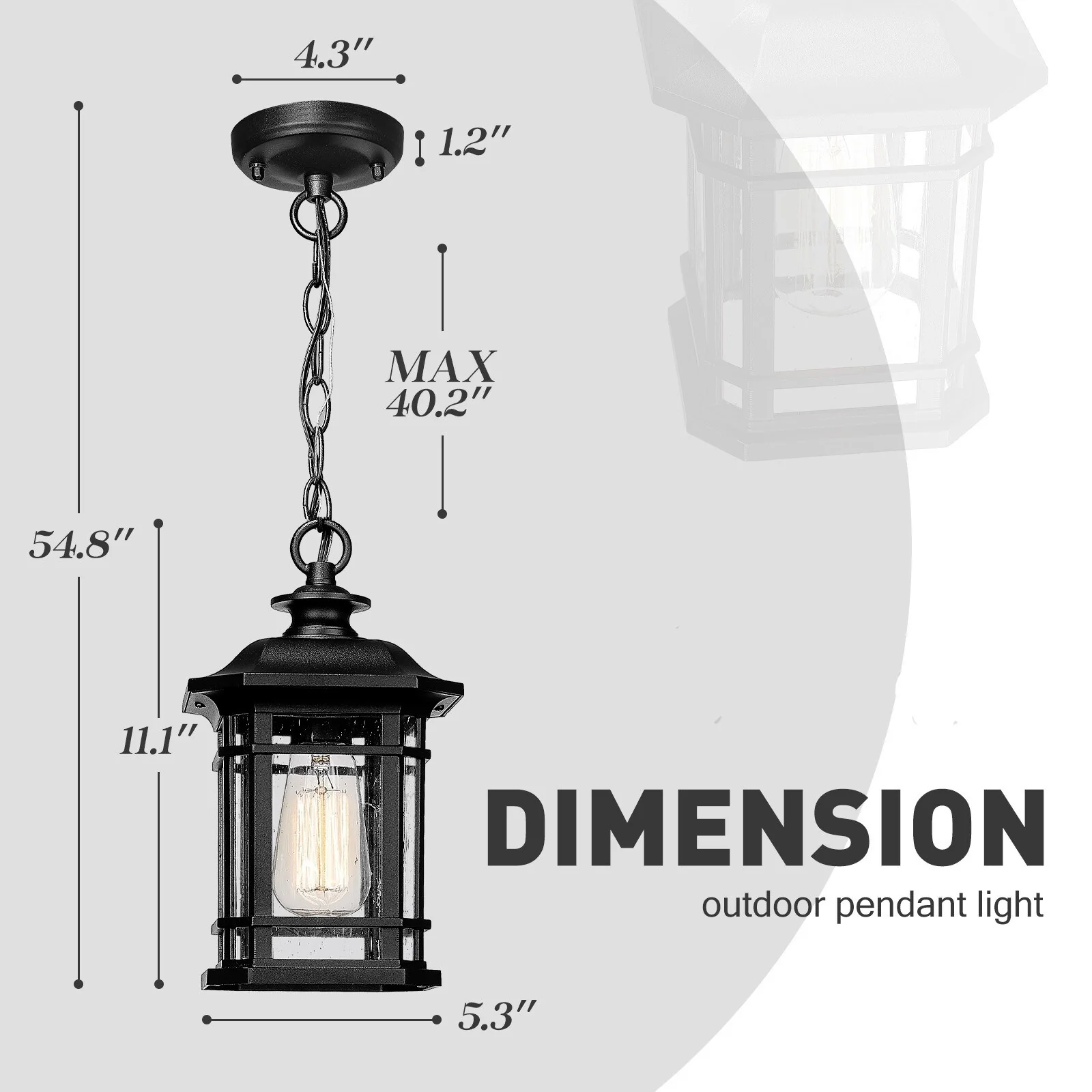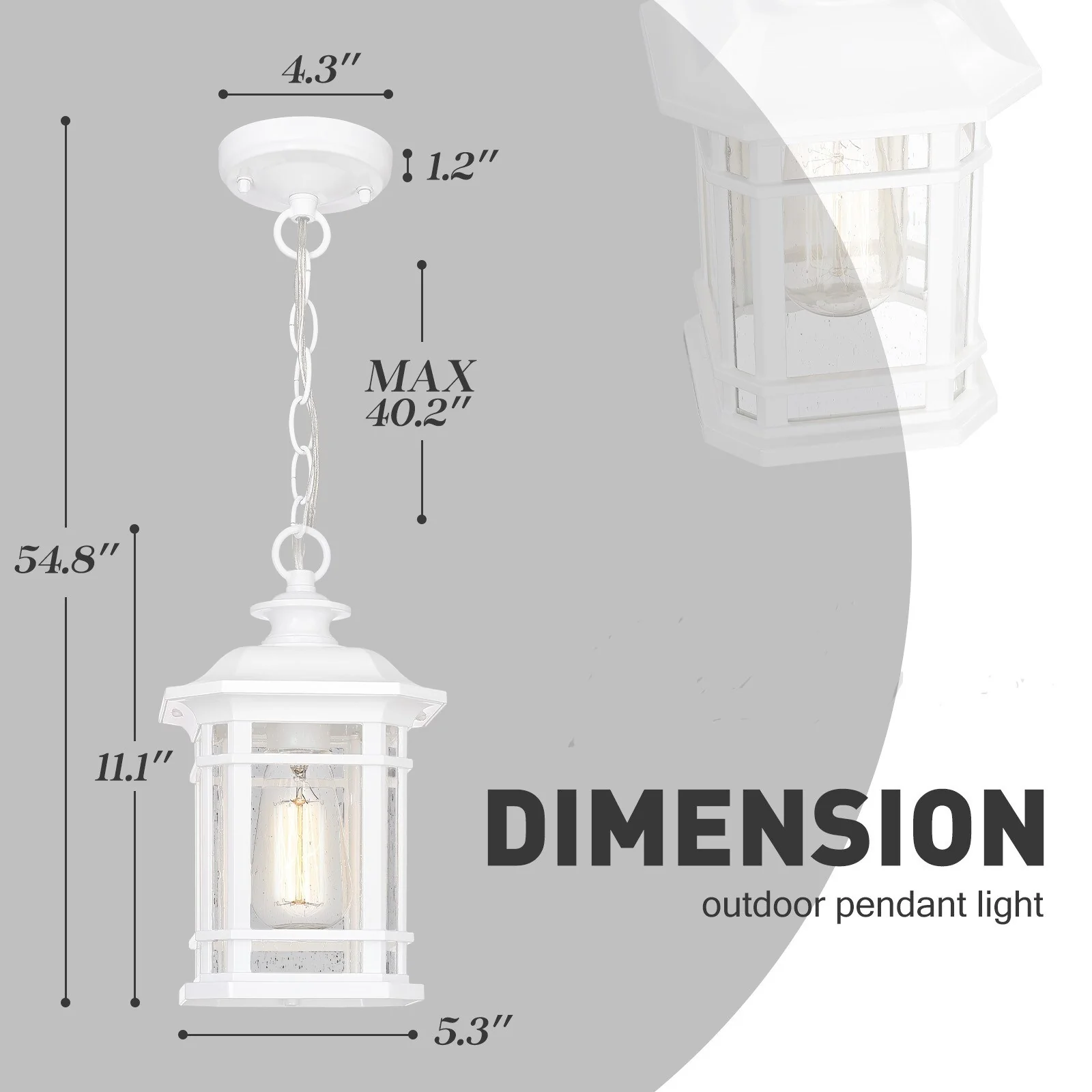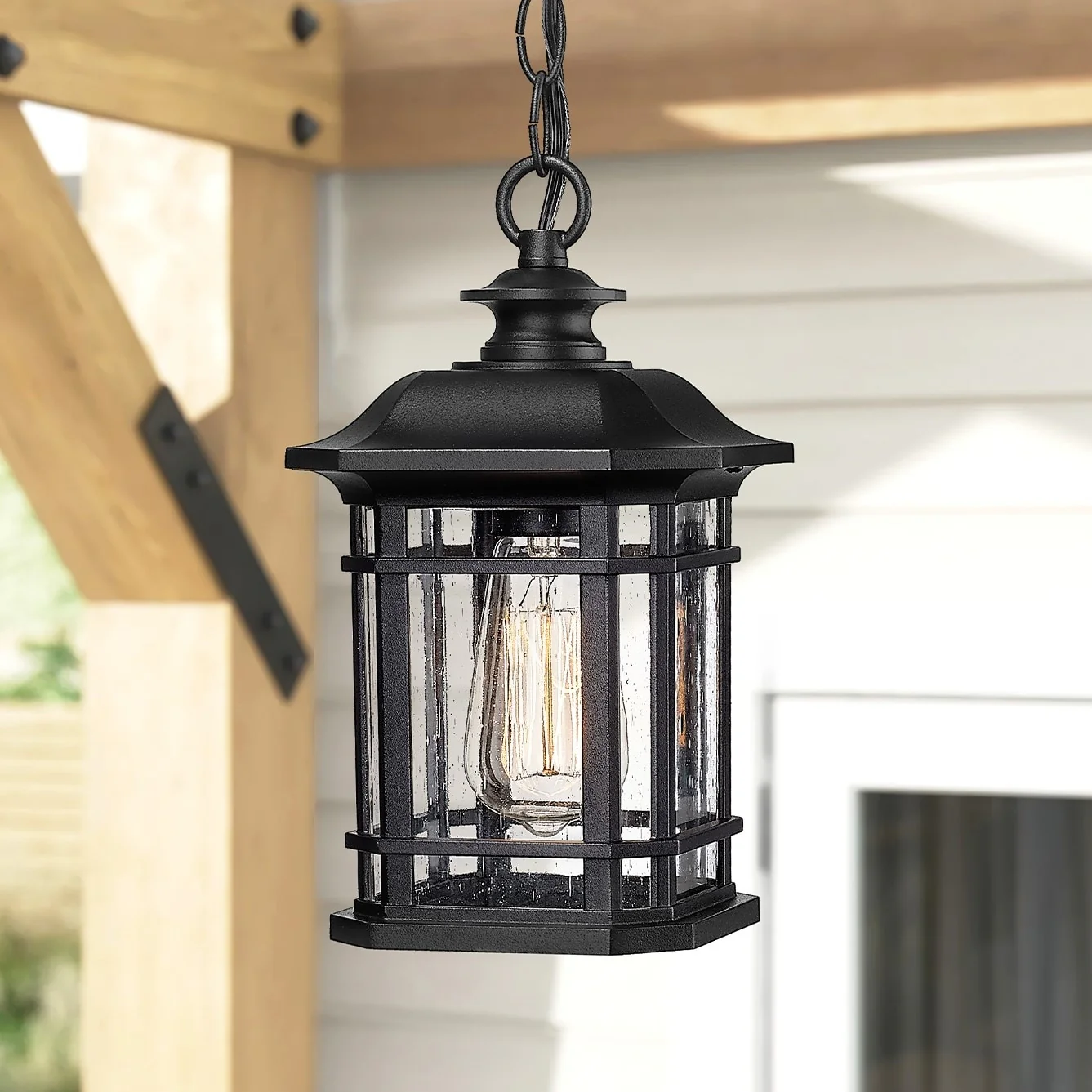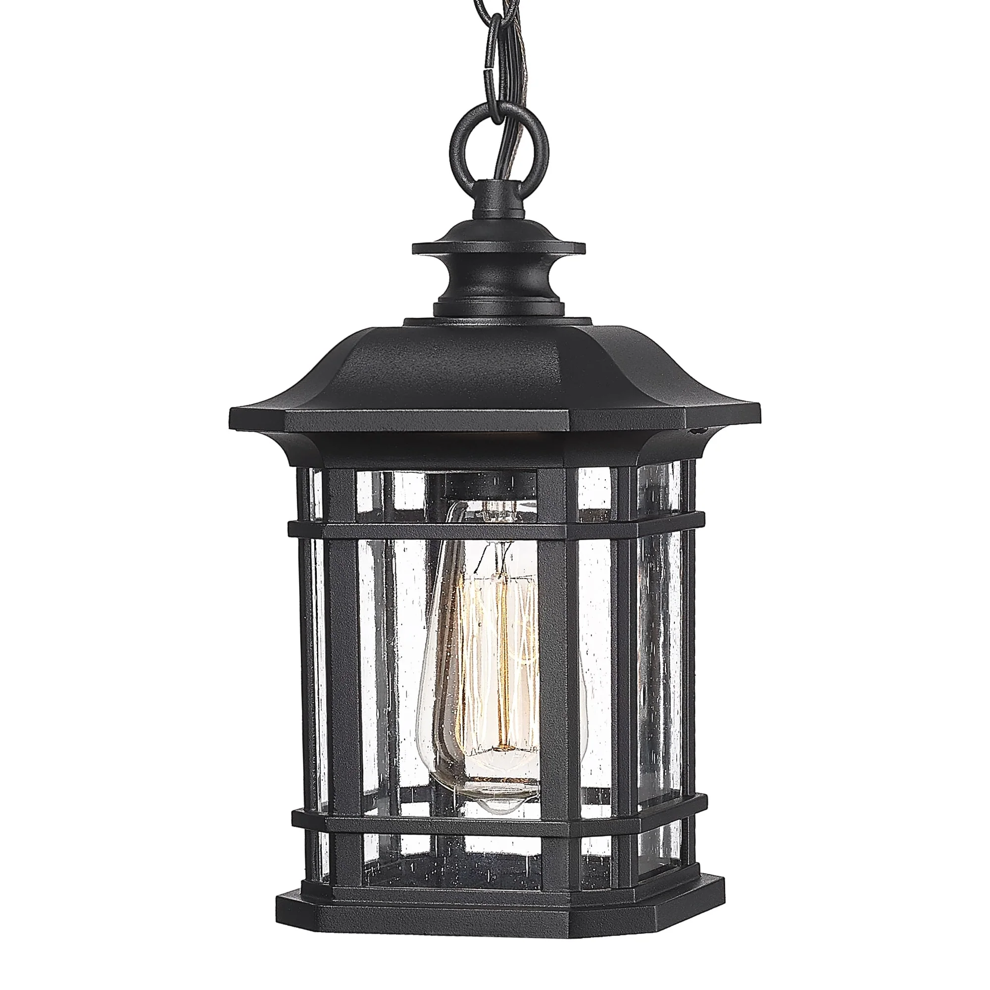 Outdoor Hanging Pendant Light Chandelier with Seeded Glass - ?5.3" x 5.3" x 11.1