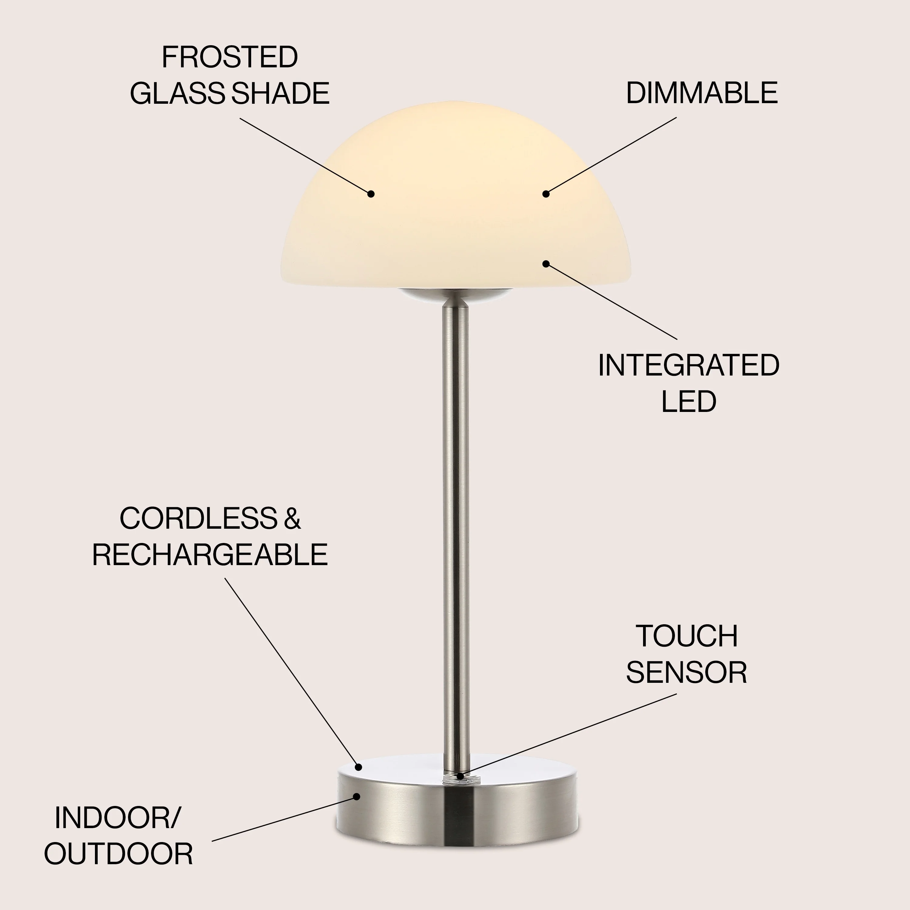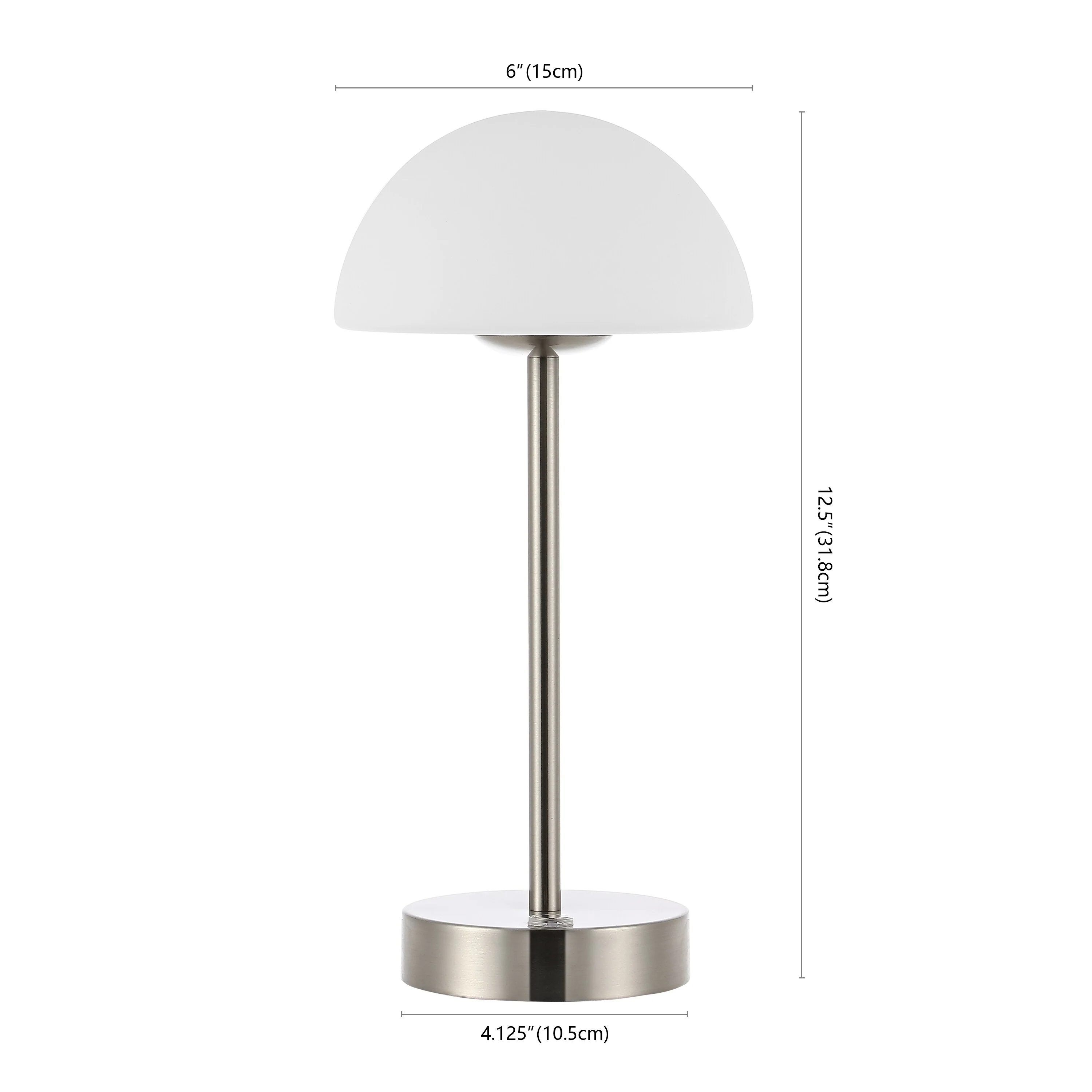 Carson 12.5" Modern Minimalist Iron Wireless Rechargeable Integrated LED Table Lamp, Nickel/White by JONATHAN Y