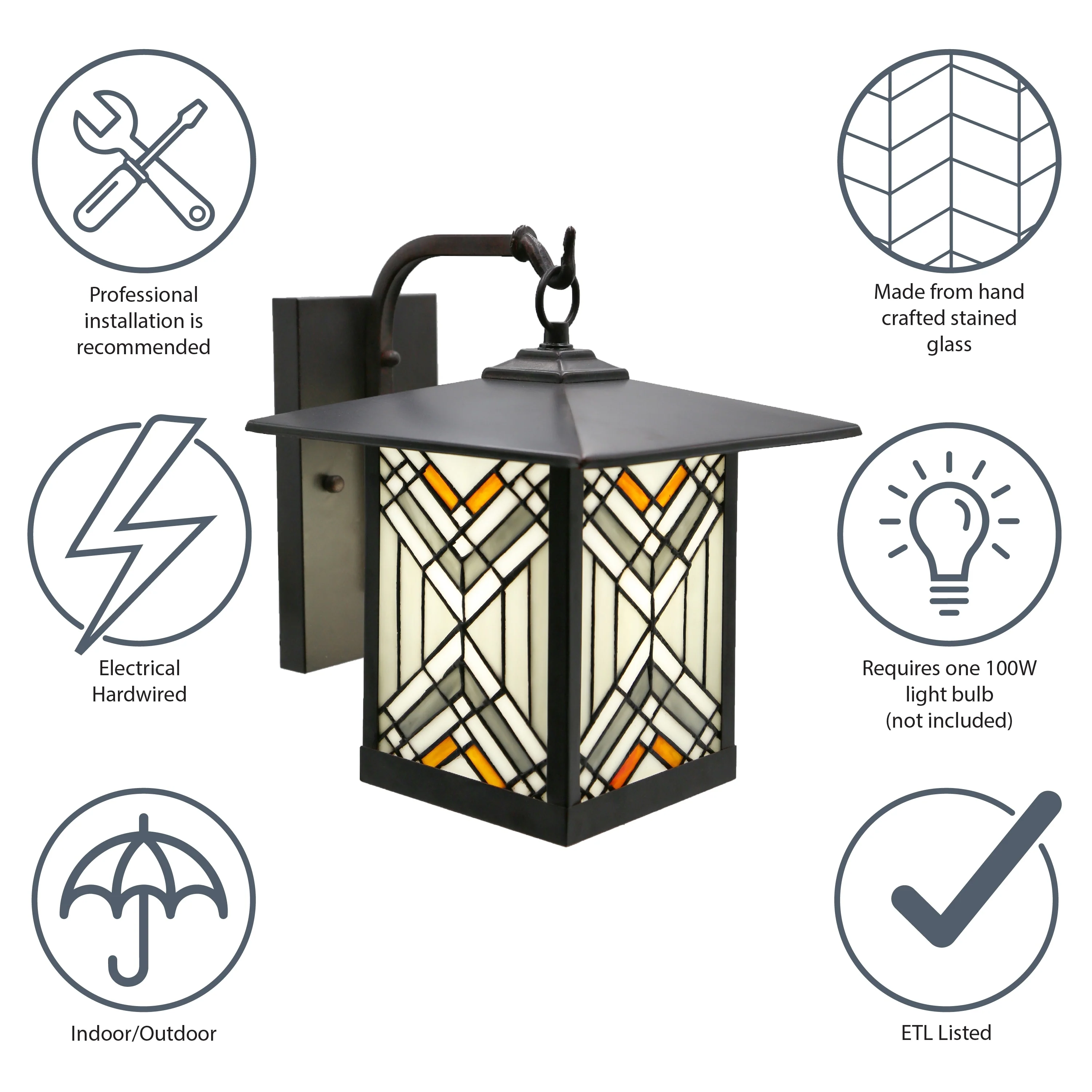 Bawe Grey Stained Glass Oil Rubbed Bronze Light Fixture by Havenside Home - 9x10.75x11.75