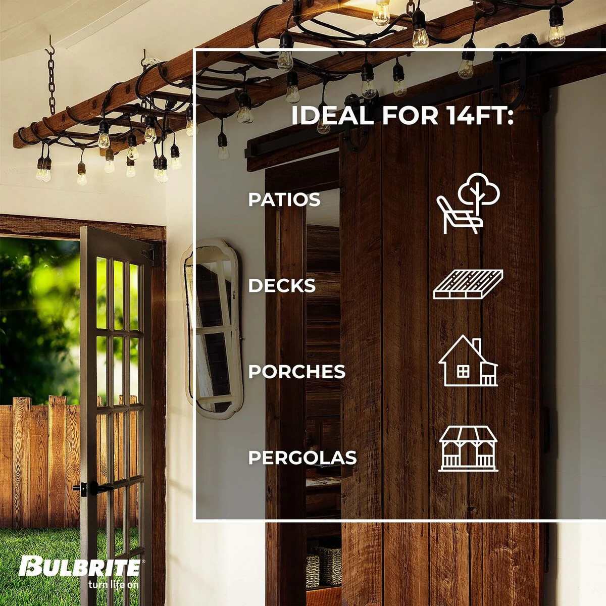 Bulbrite 14 ft Indoor/Outdoor 10-Socket (E26) Decorative String Light Kit, Black