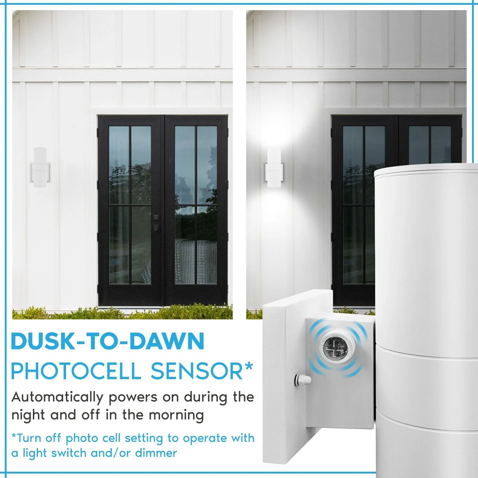 Luxrite Dusk to Dawn LED Outdoor Wall Light 12" 3CCT Wall Sconce 18/24/30W Dimmable IP65 ETL 2-Pack