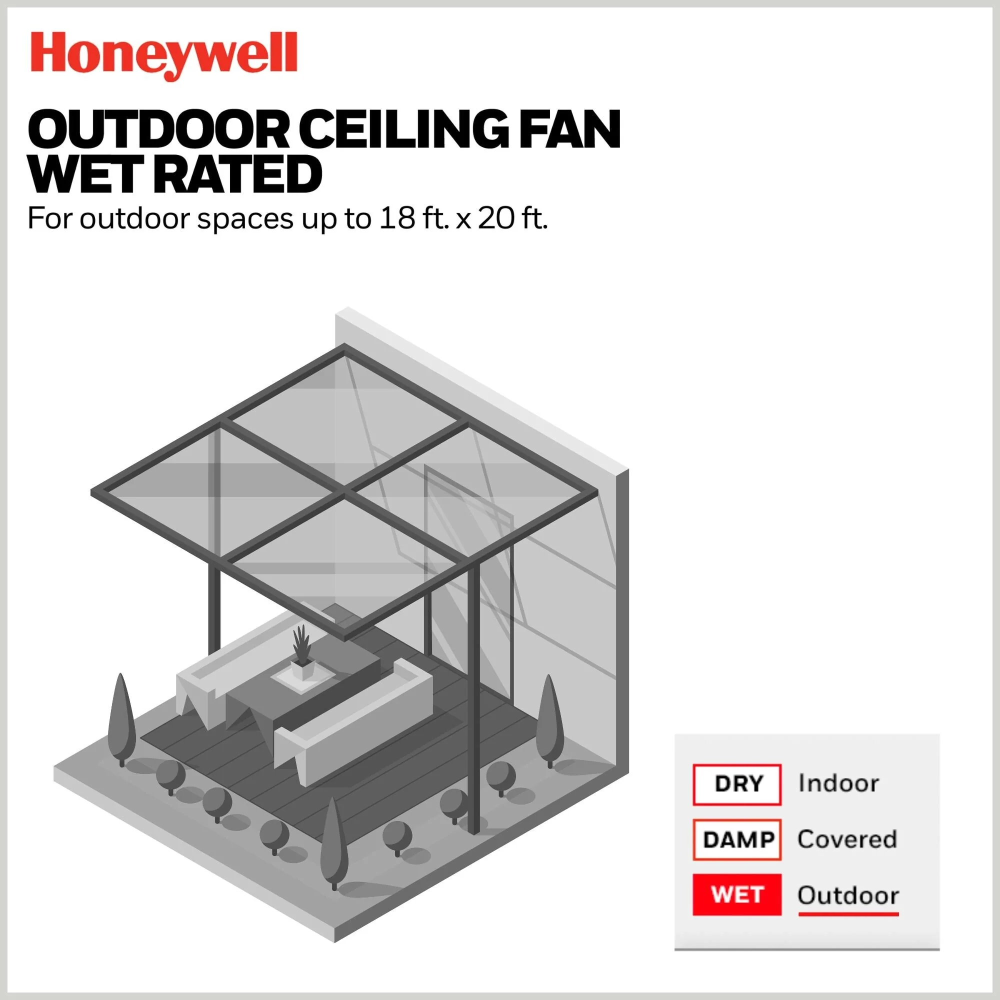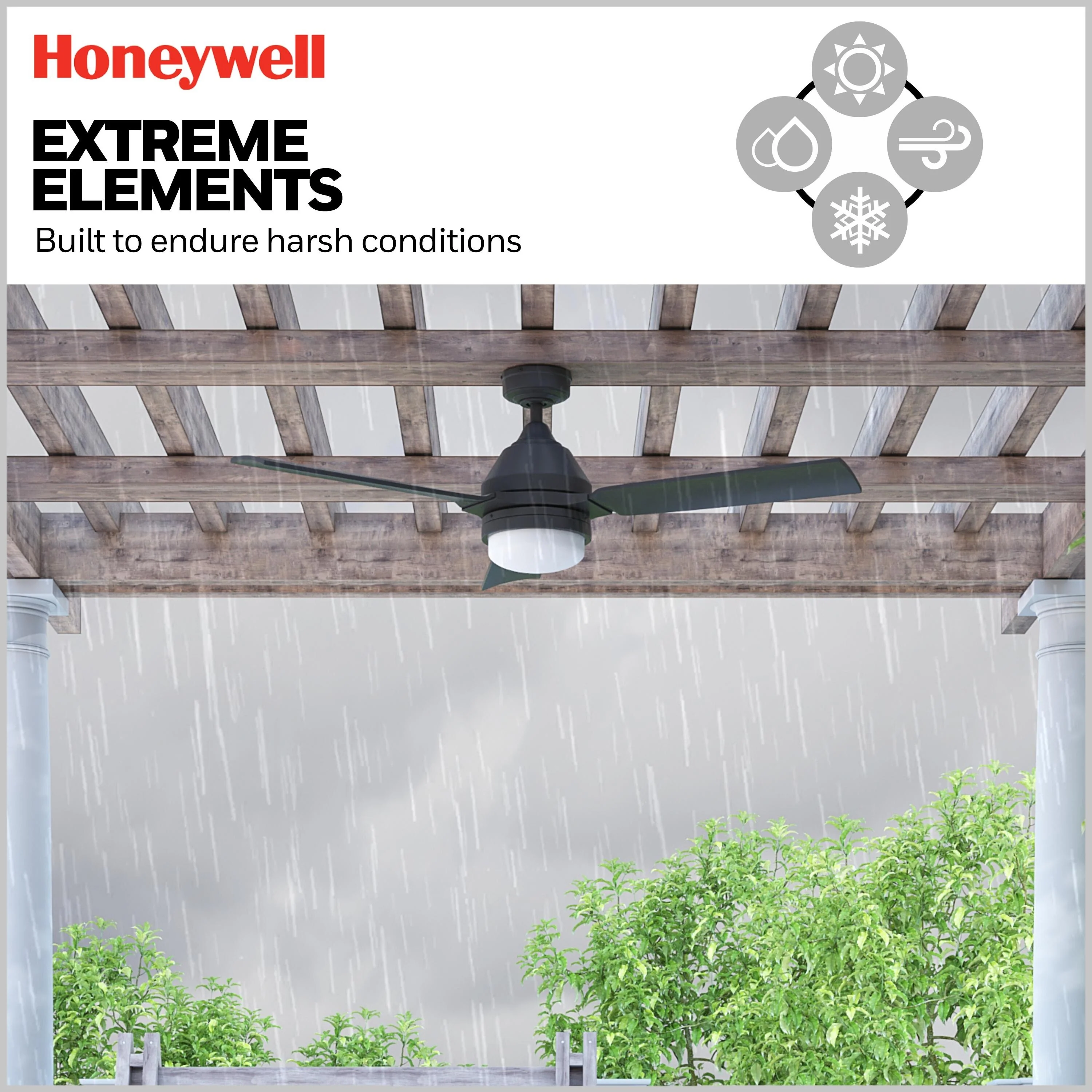 54" Honeywell Port Isle Wet Rated Outdoor Ceiling Fan with Light, Remote Control, Weather Resistant Blades