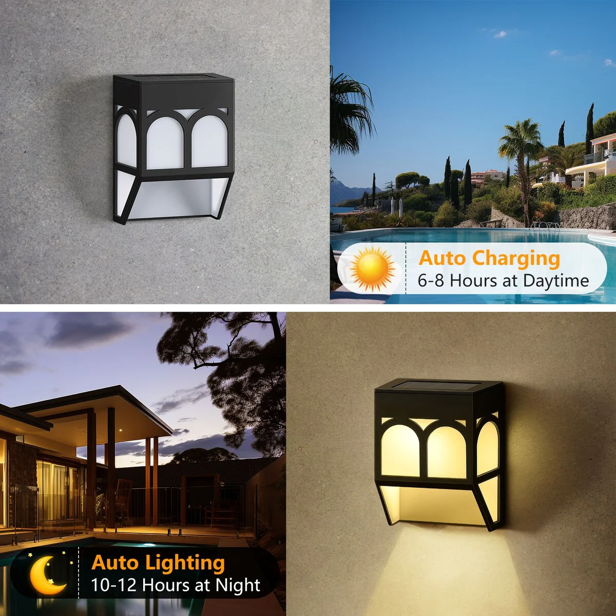 C Cattleya 2-Pack Solar LED Dusk to Dawn Outdoor Wall Sconce Light