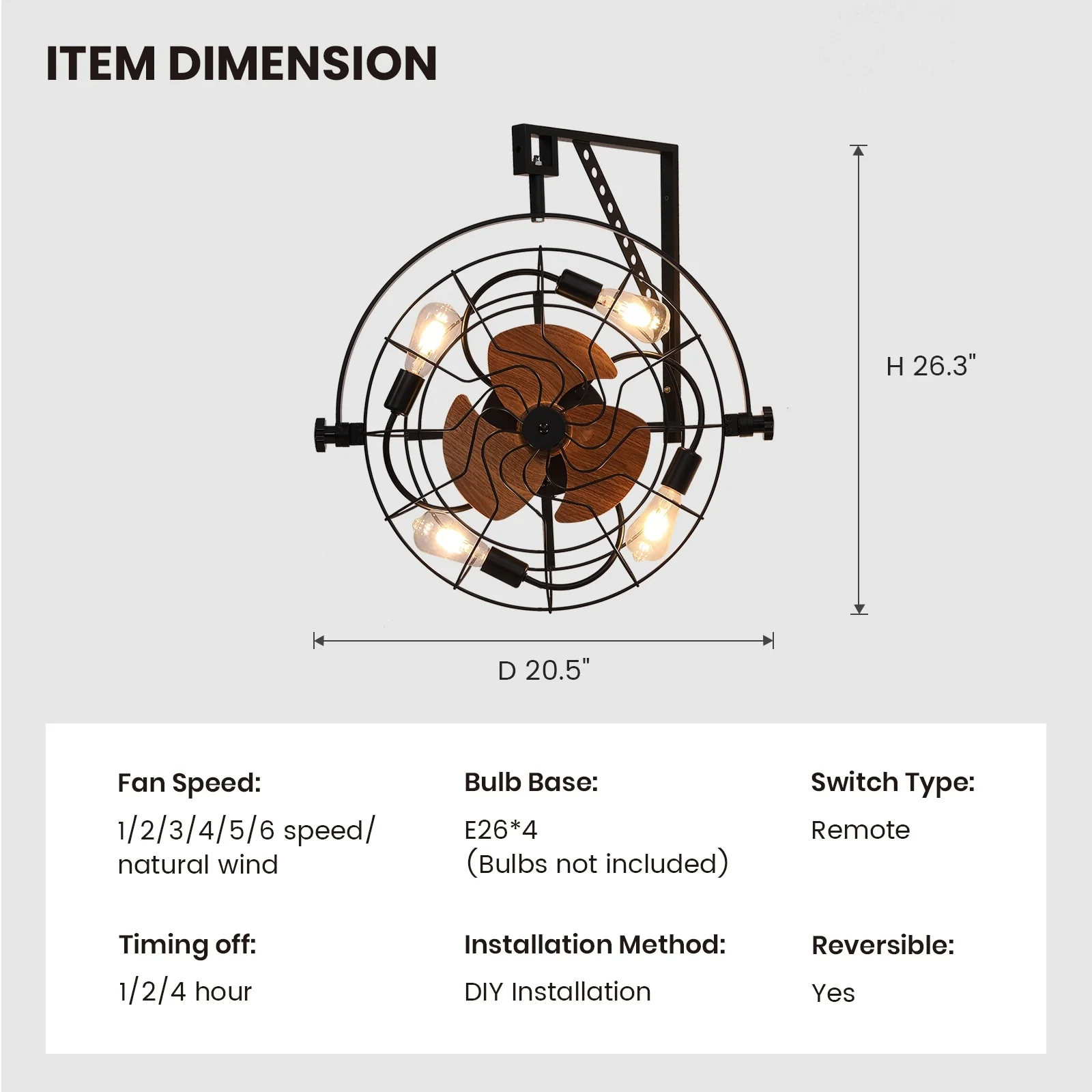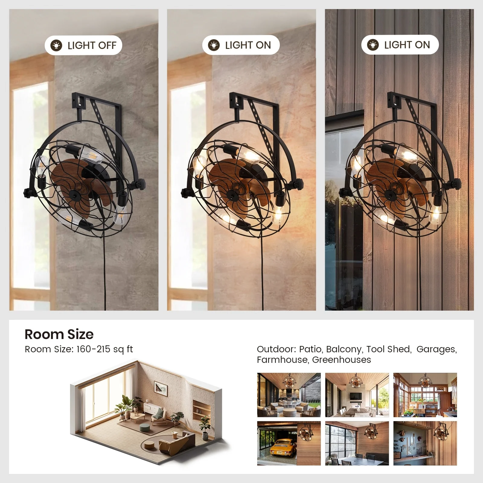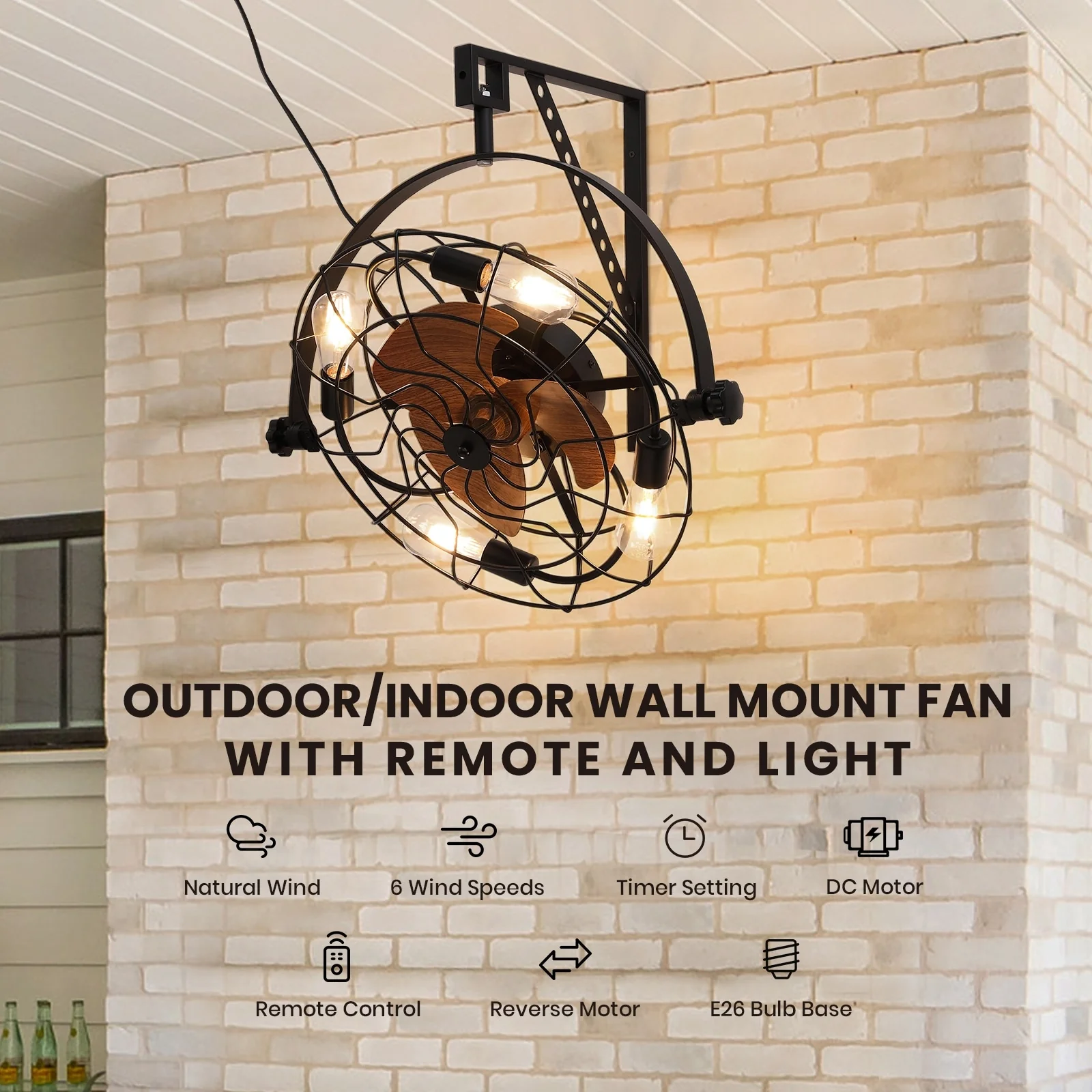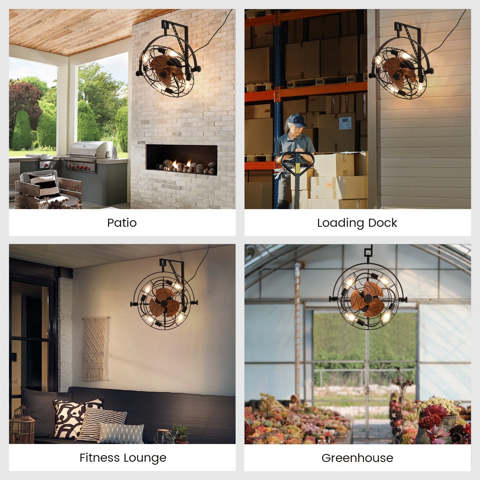 20" Fansconce Indoor/Outdoor Wall Mount Ceiling Fan with Lights and Remote, Industrial Ceiling Fan for Patio Garage