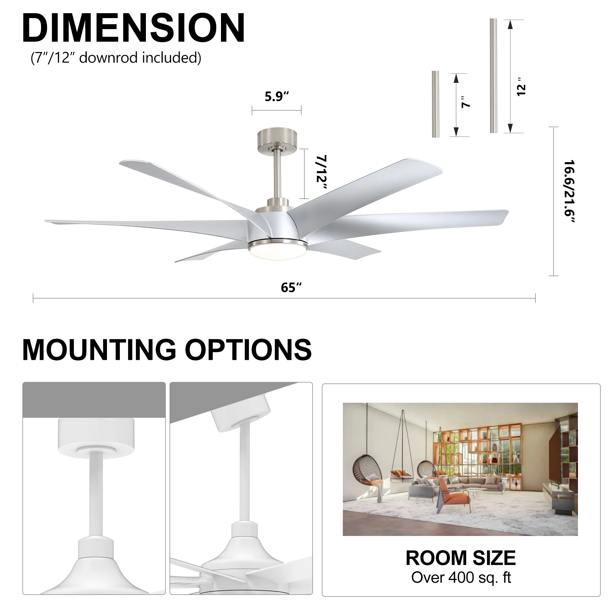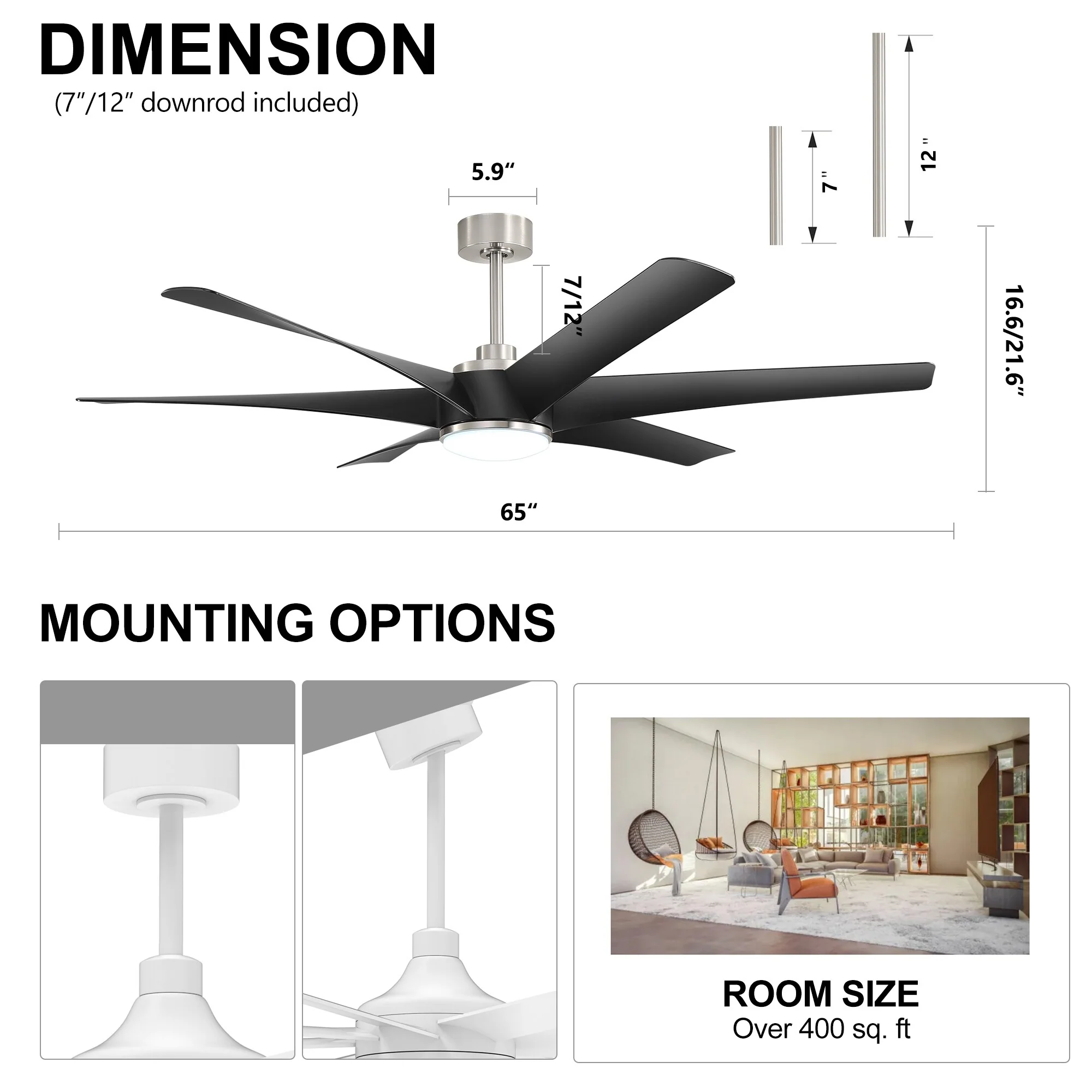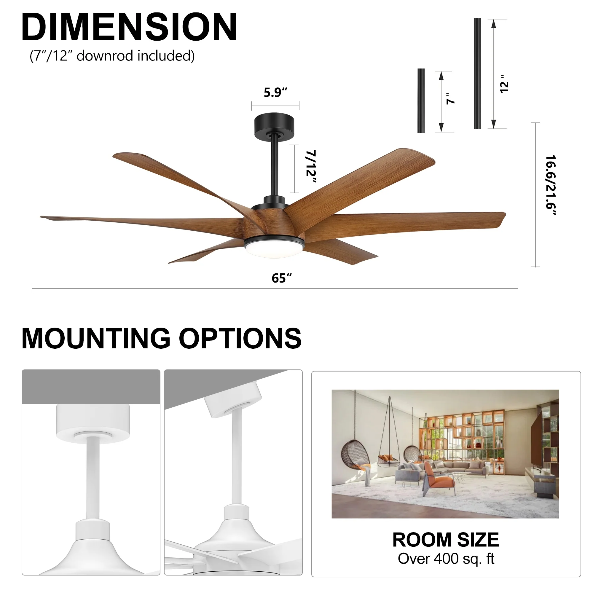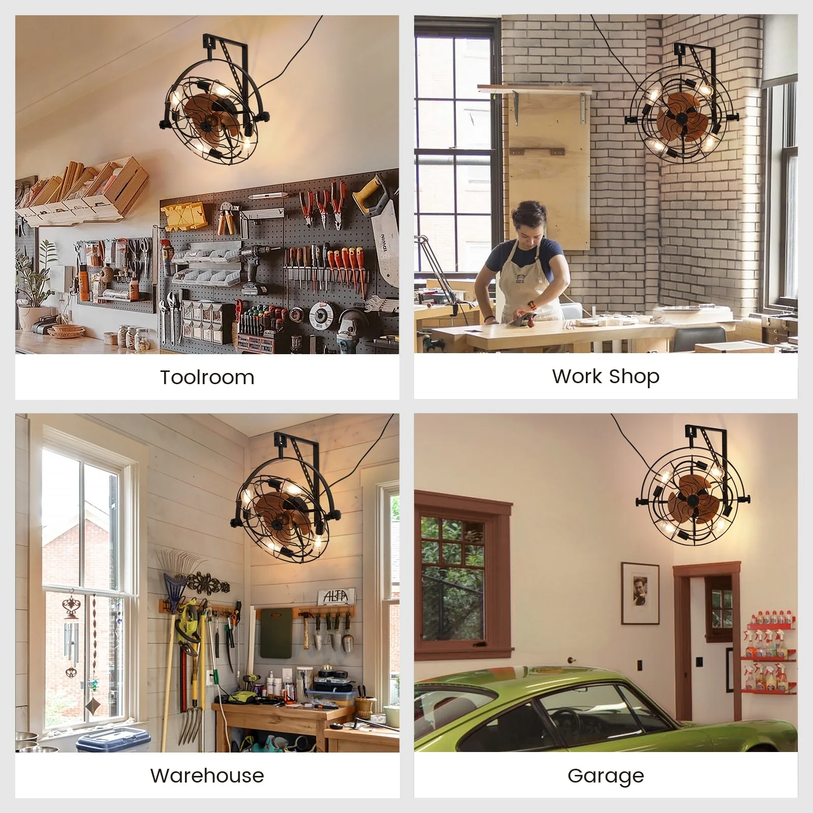 20" Fansconce Indoor/Outdoor Wall Mount Ceiling Fan with Lights and Remote, Industrial Ceiling Fan for Patio Garage
