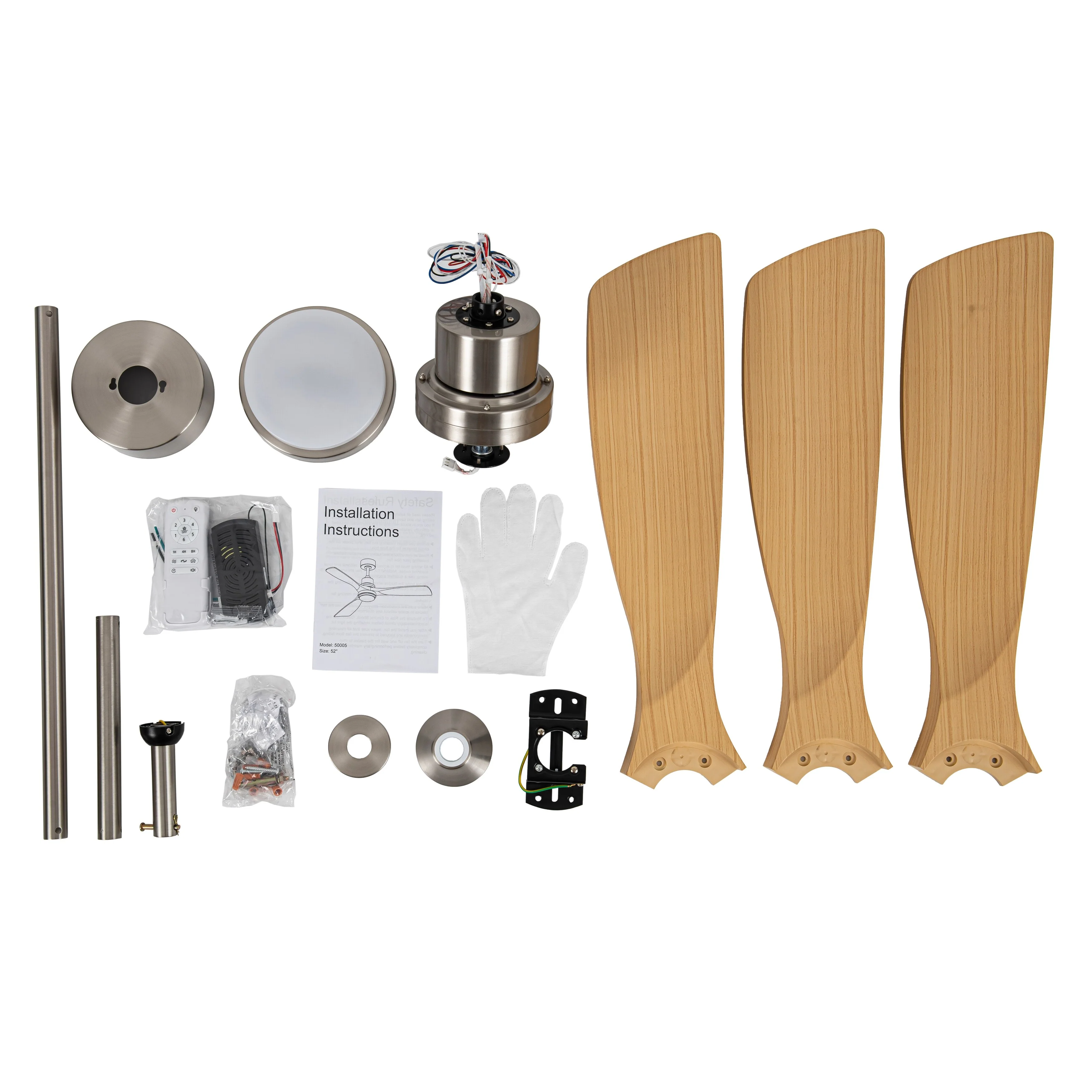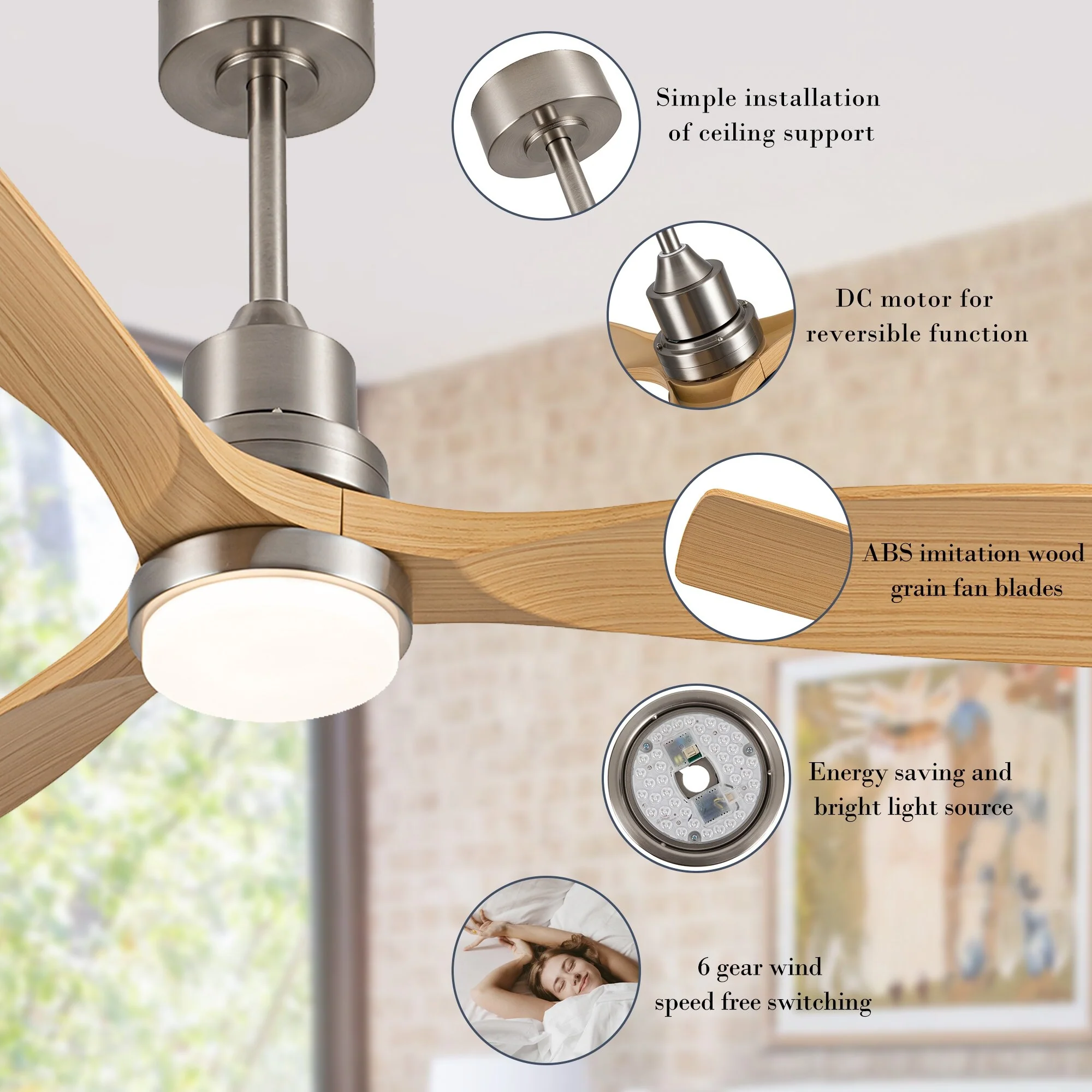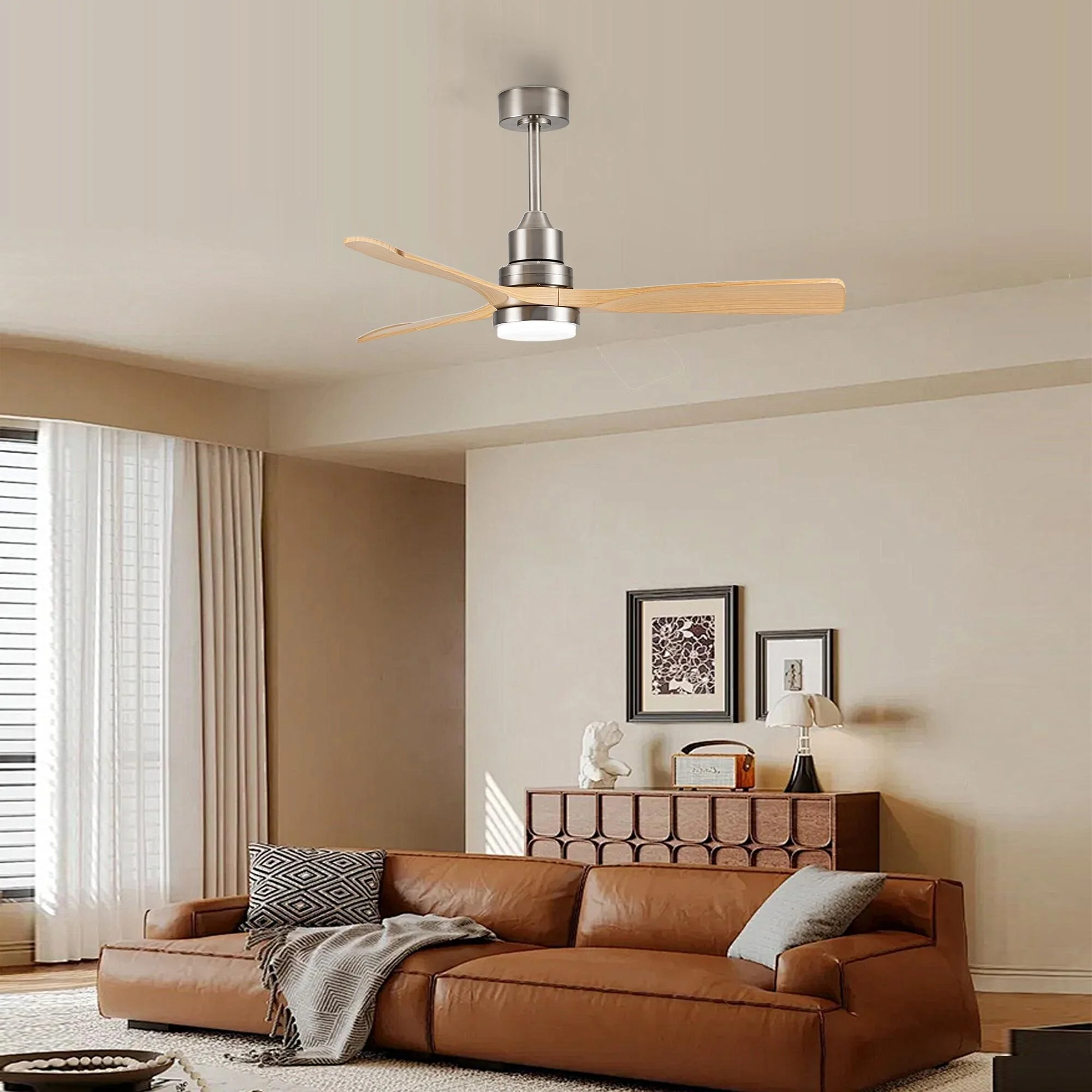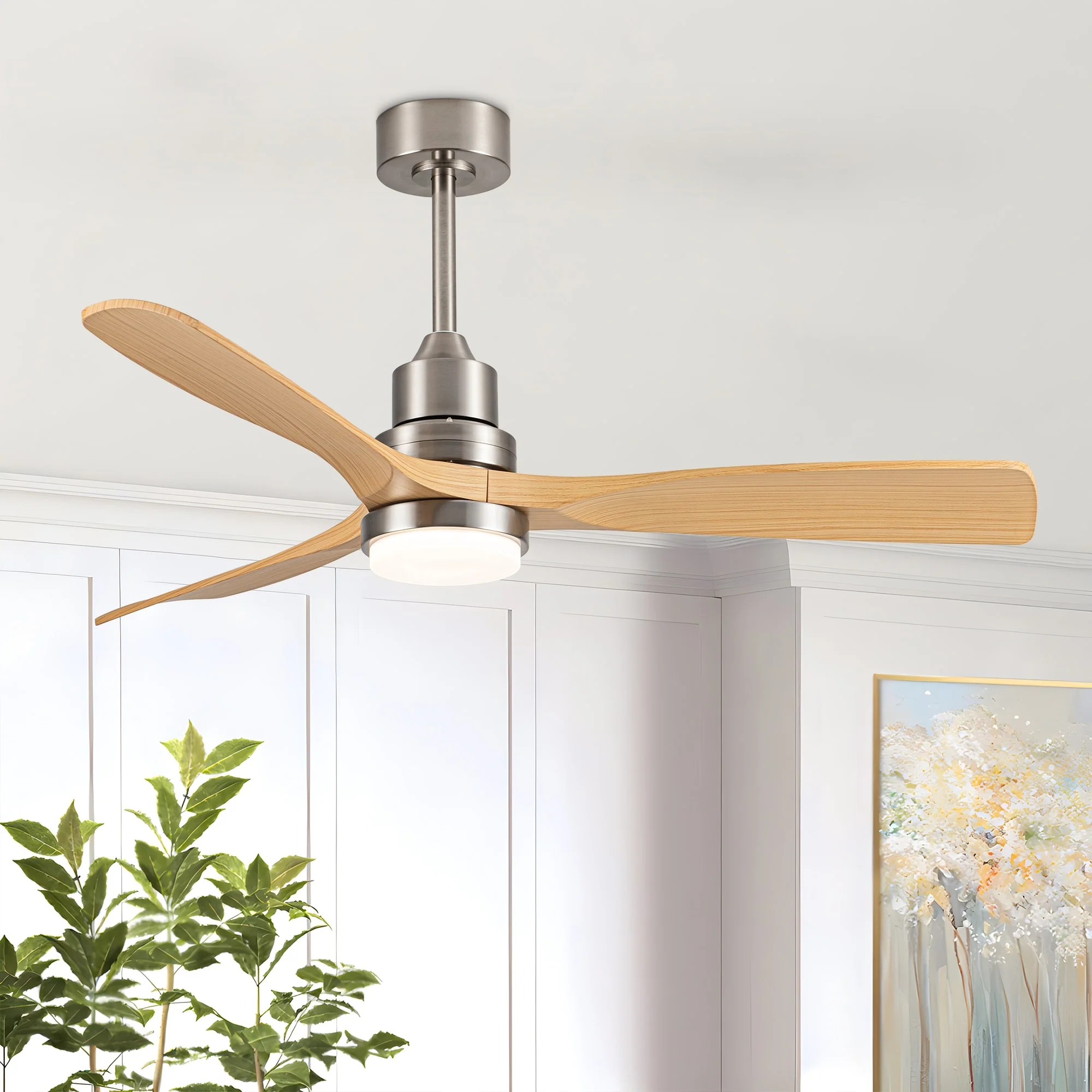 Brushed Nickel with Natural wood Blades
