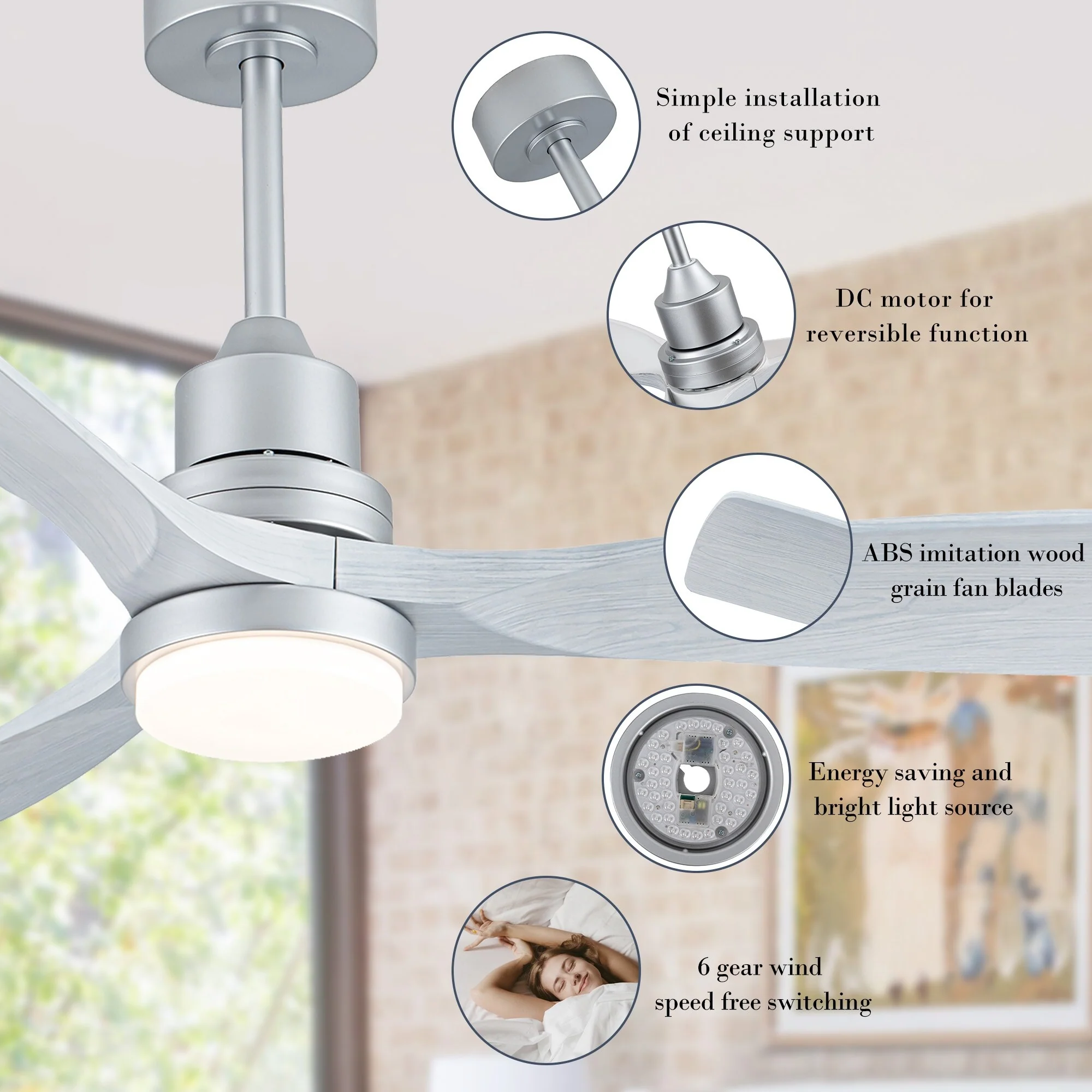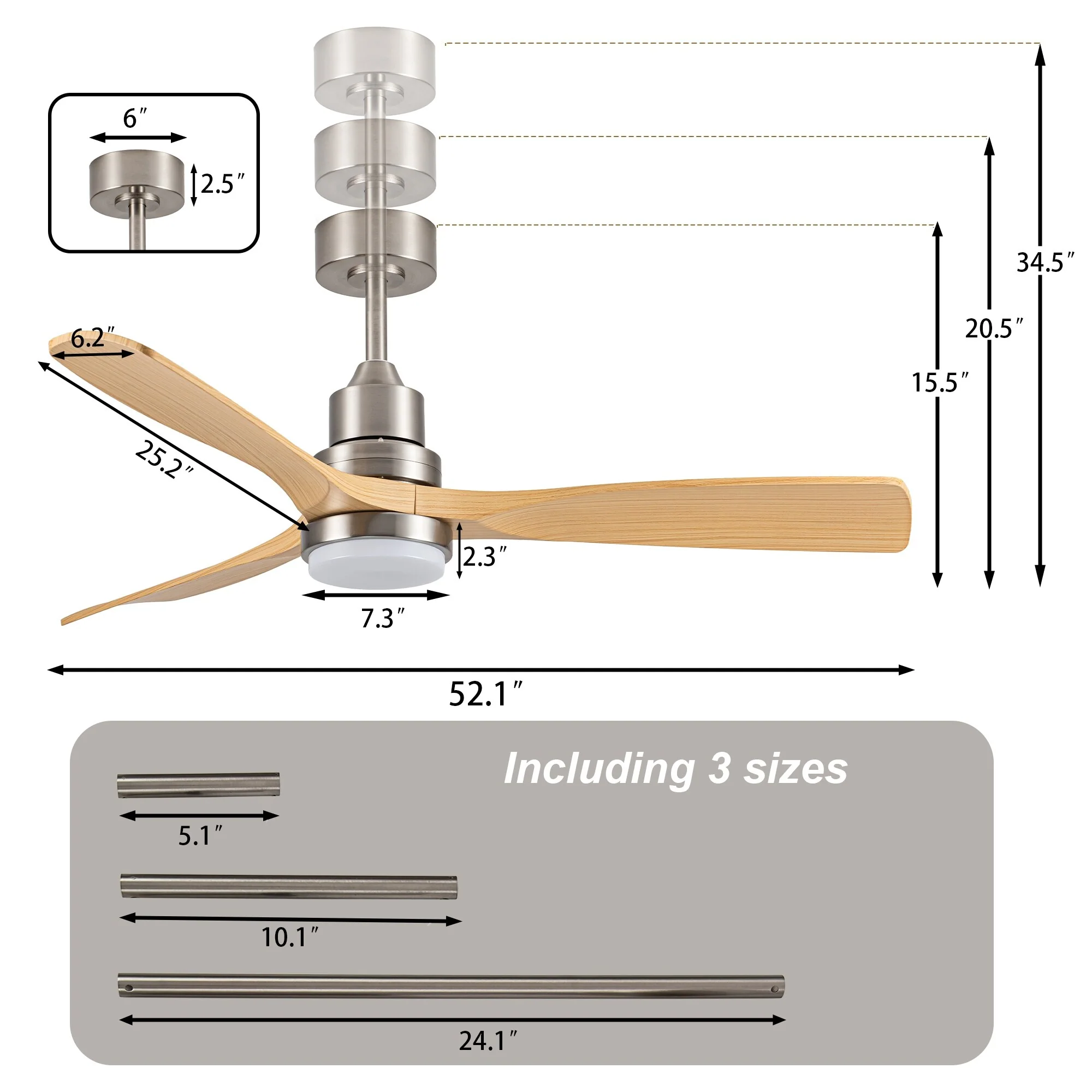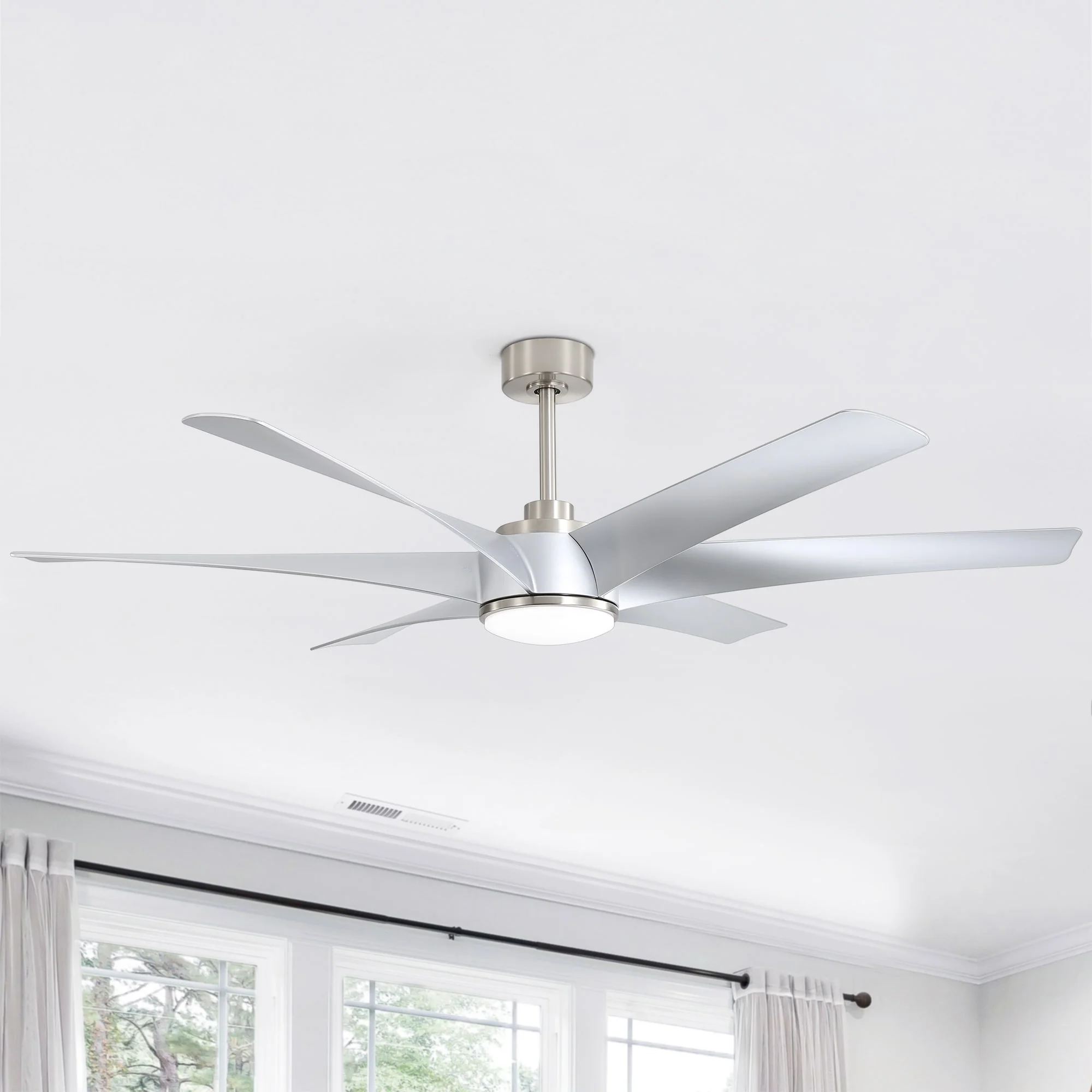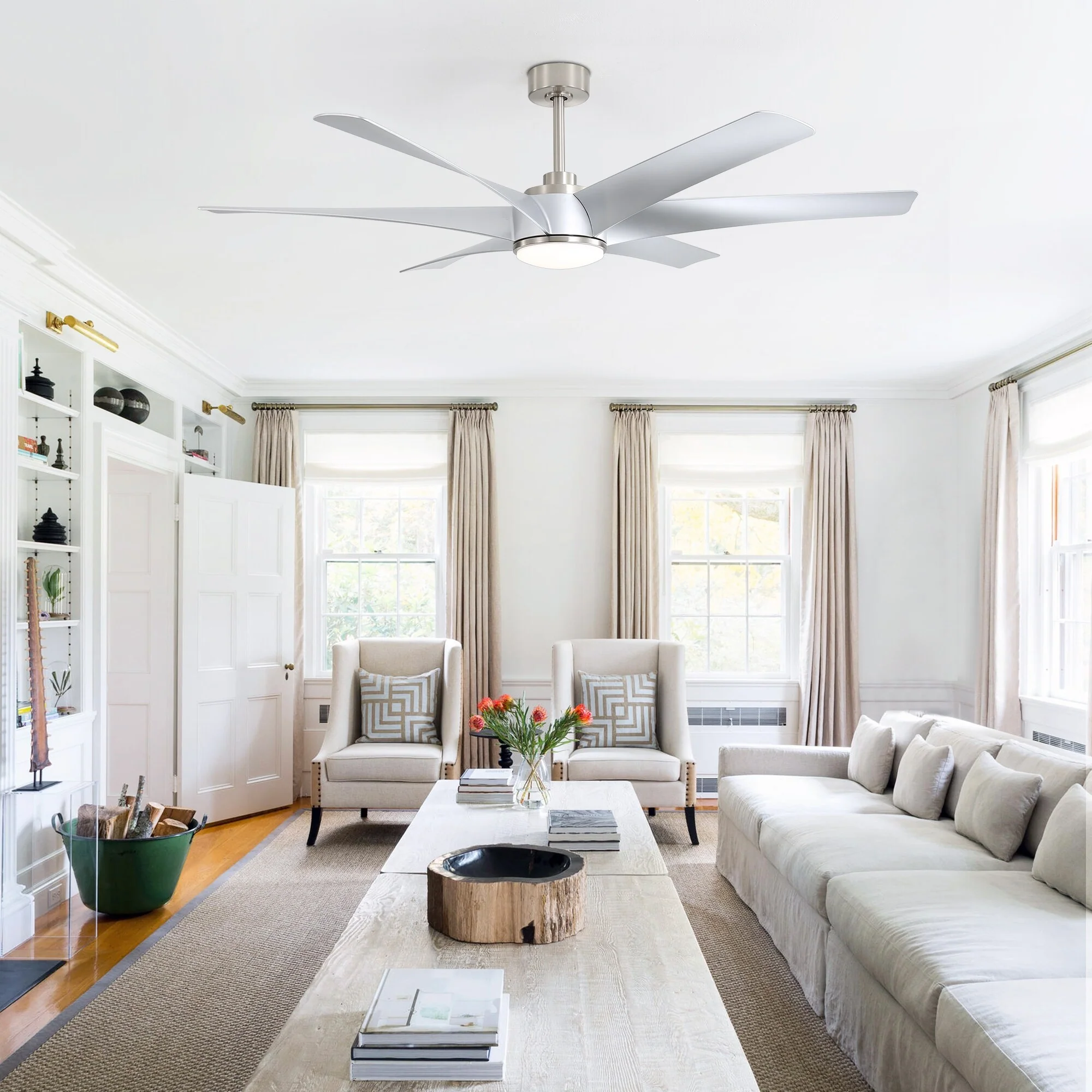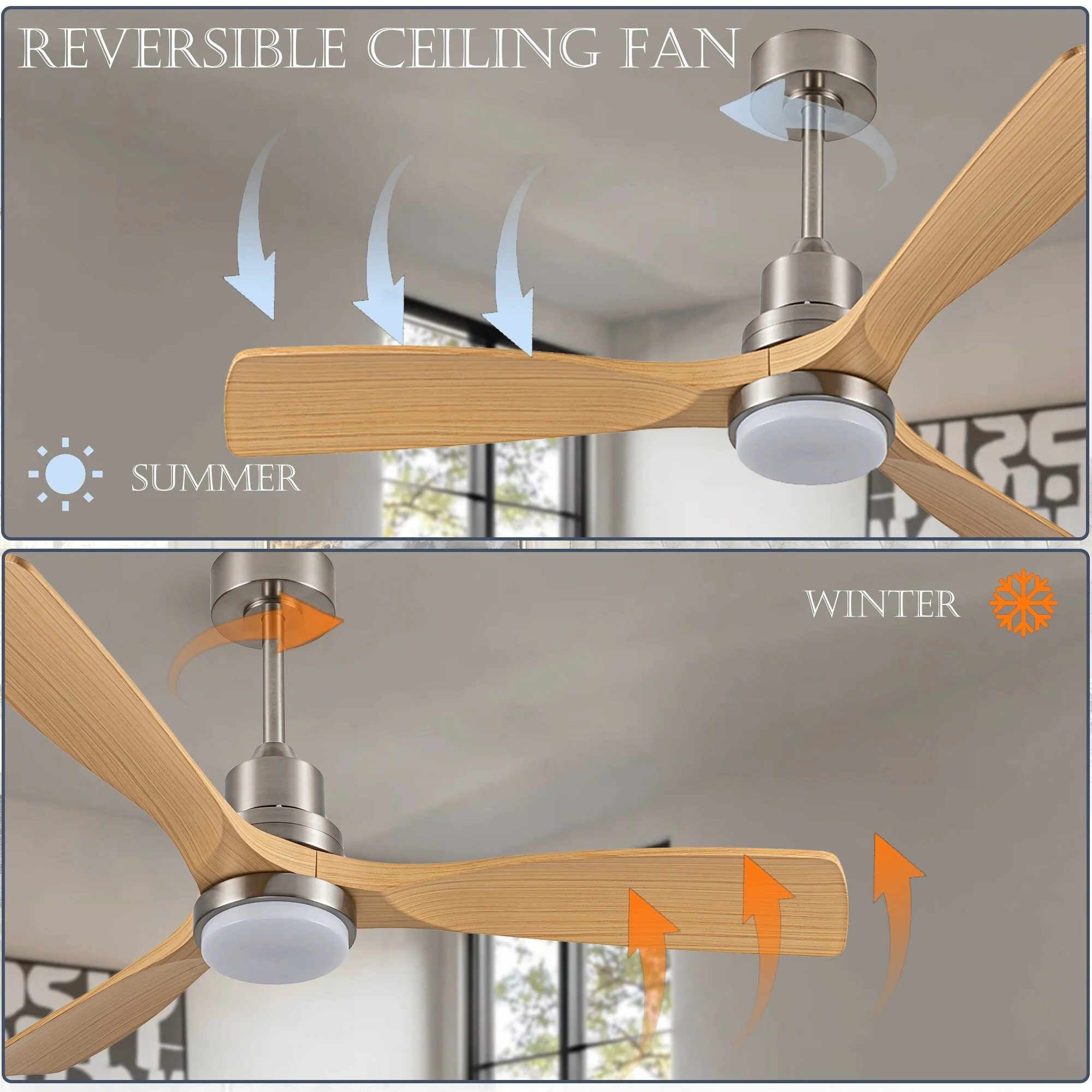 Brushed Nickel with Natural wood Blades