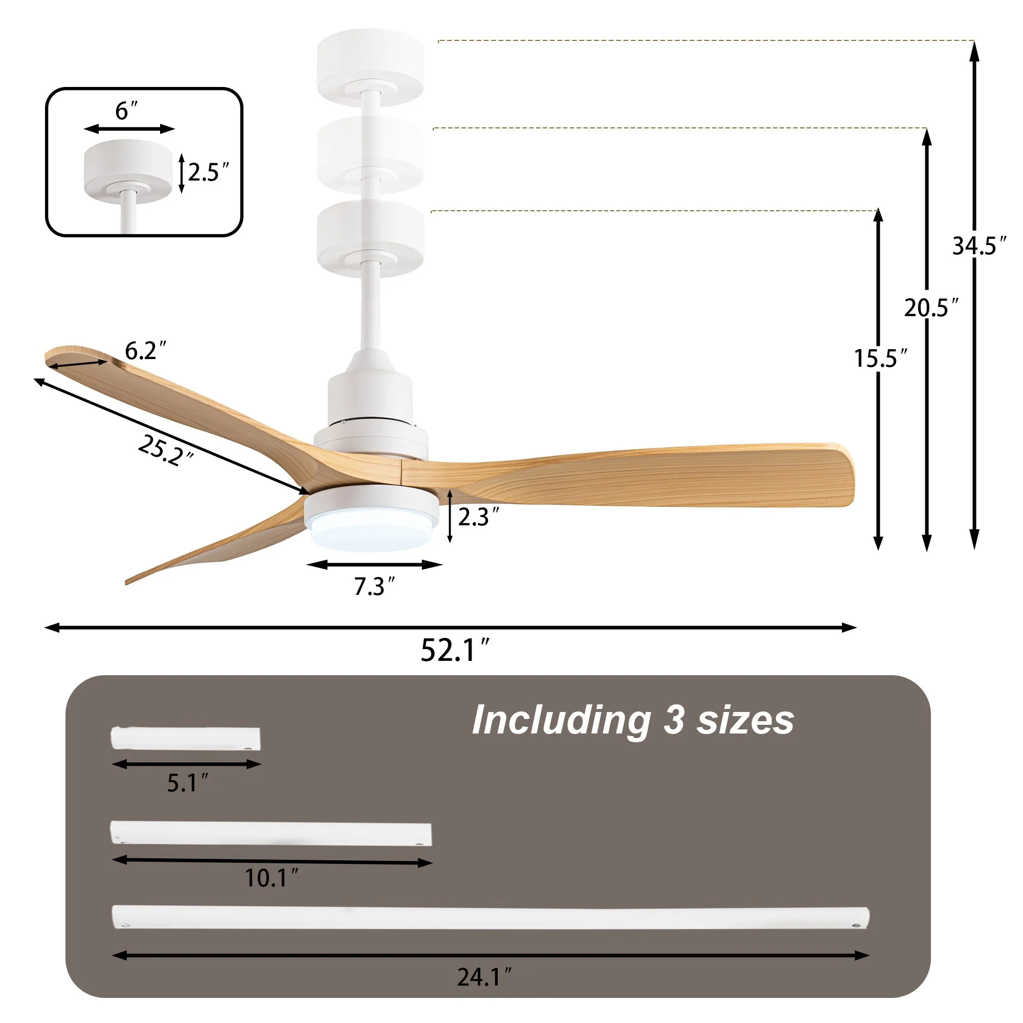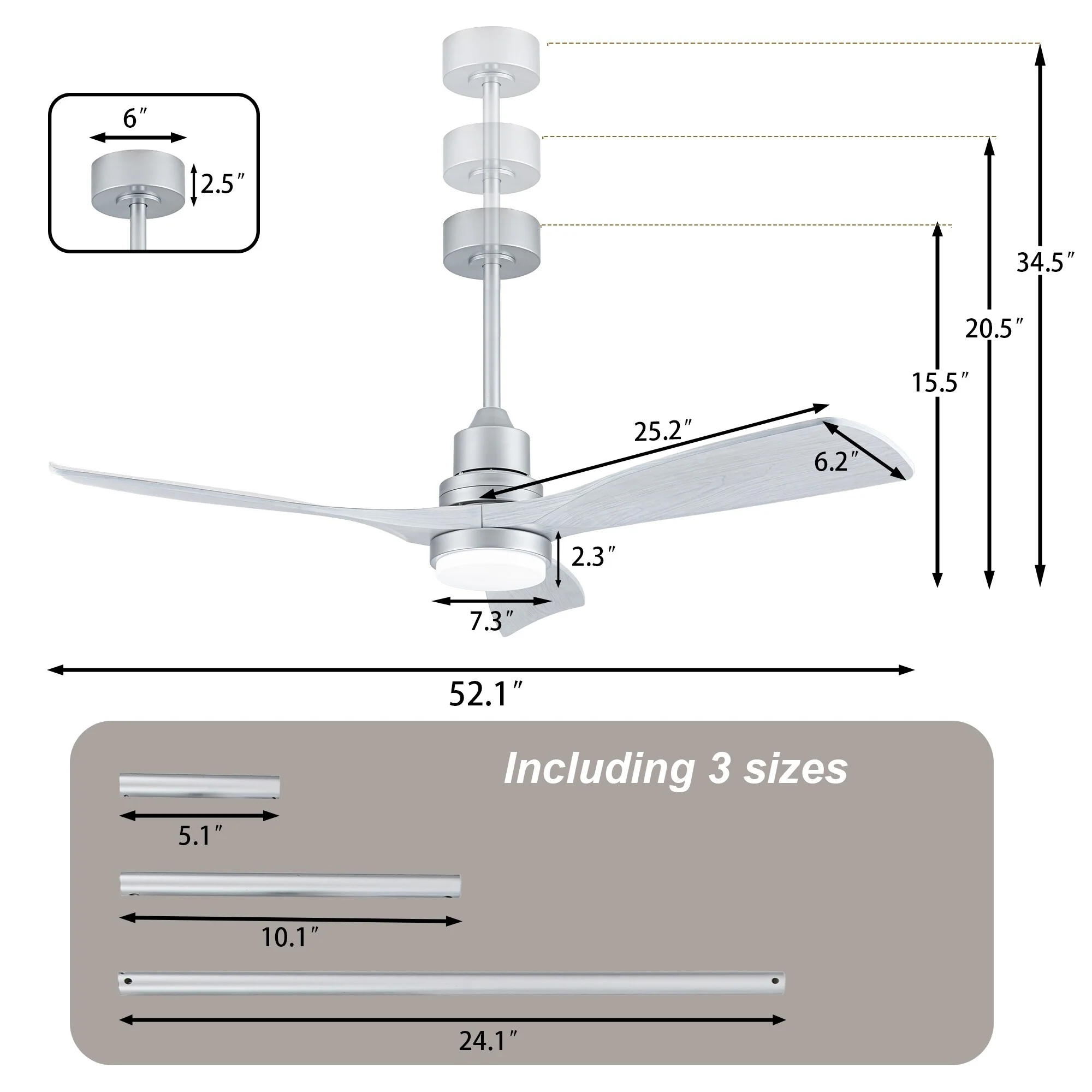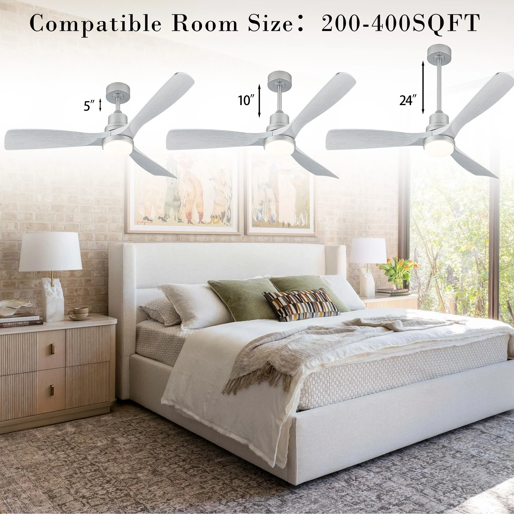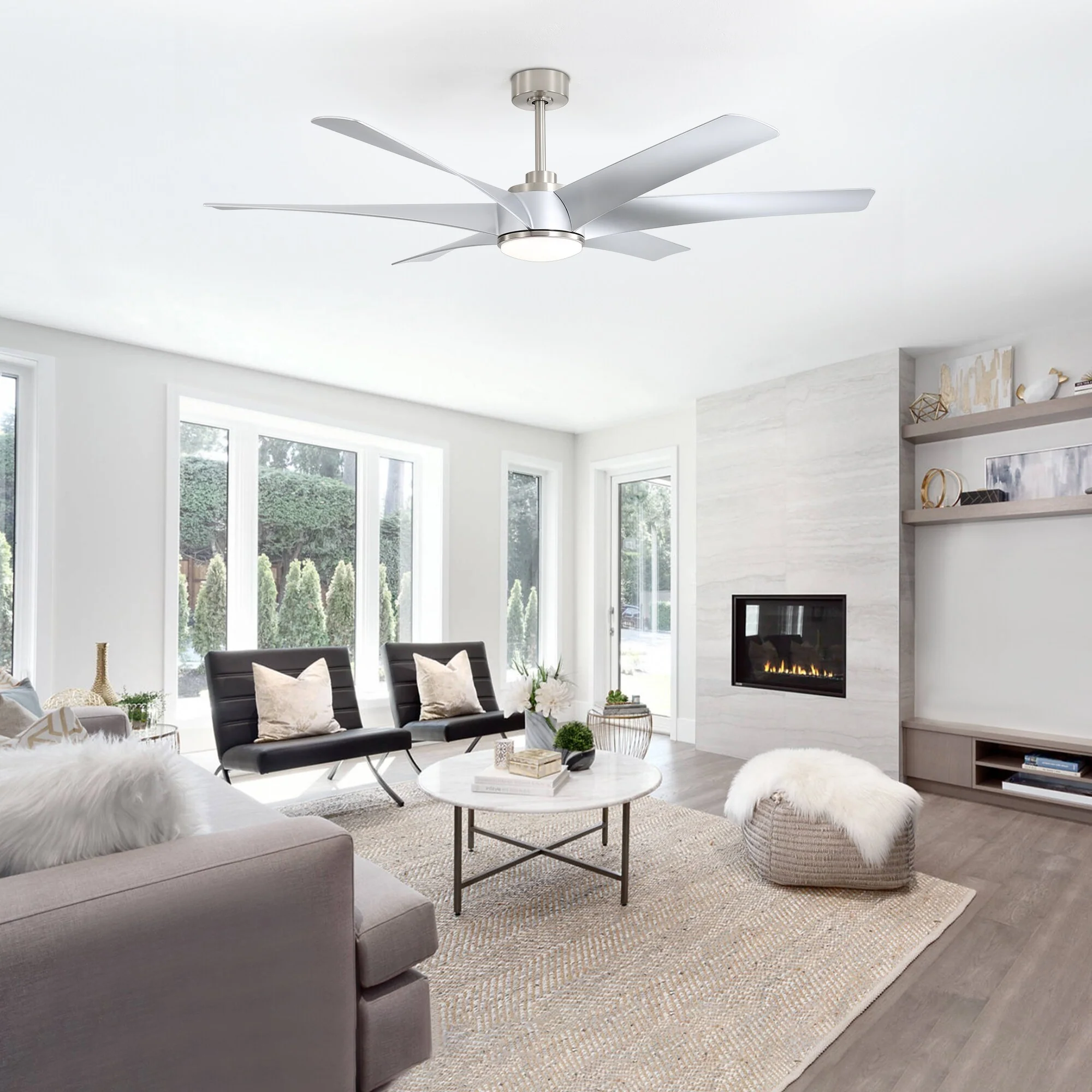 Brushed Nickel with Natural wood Blades