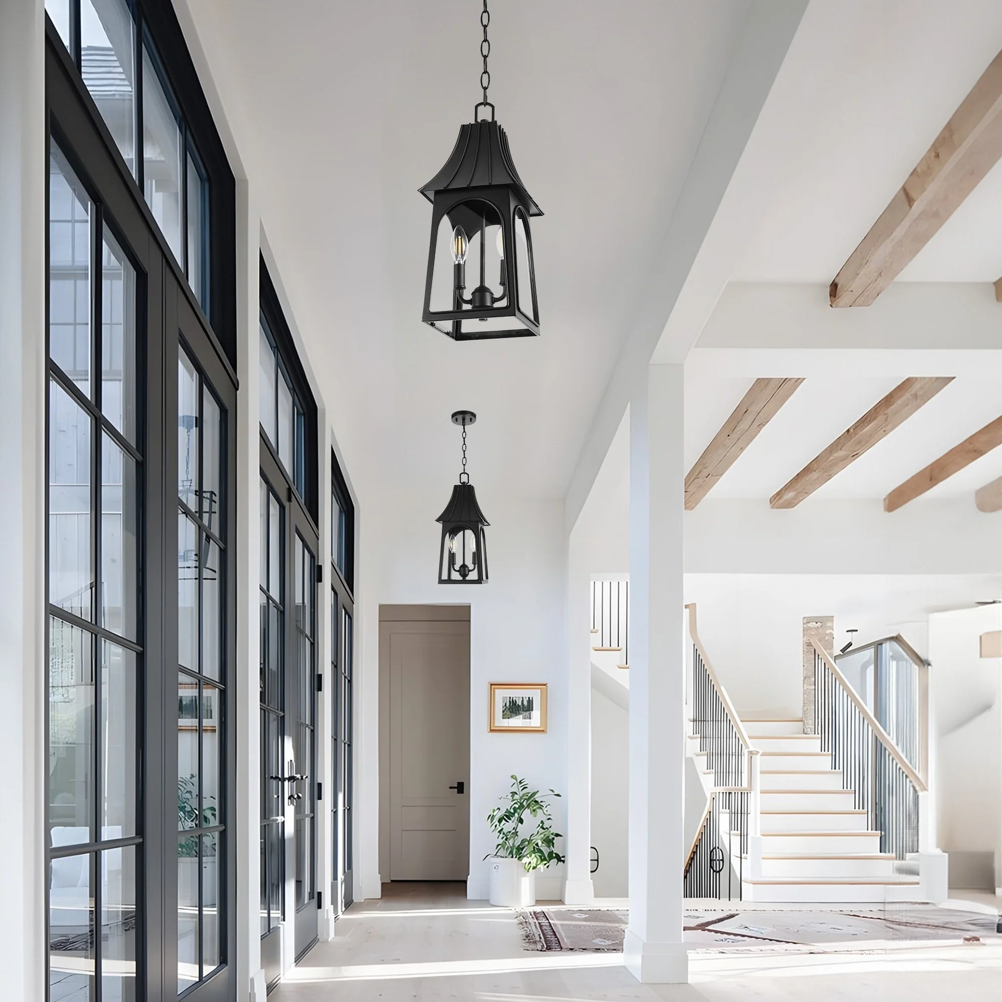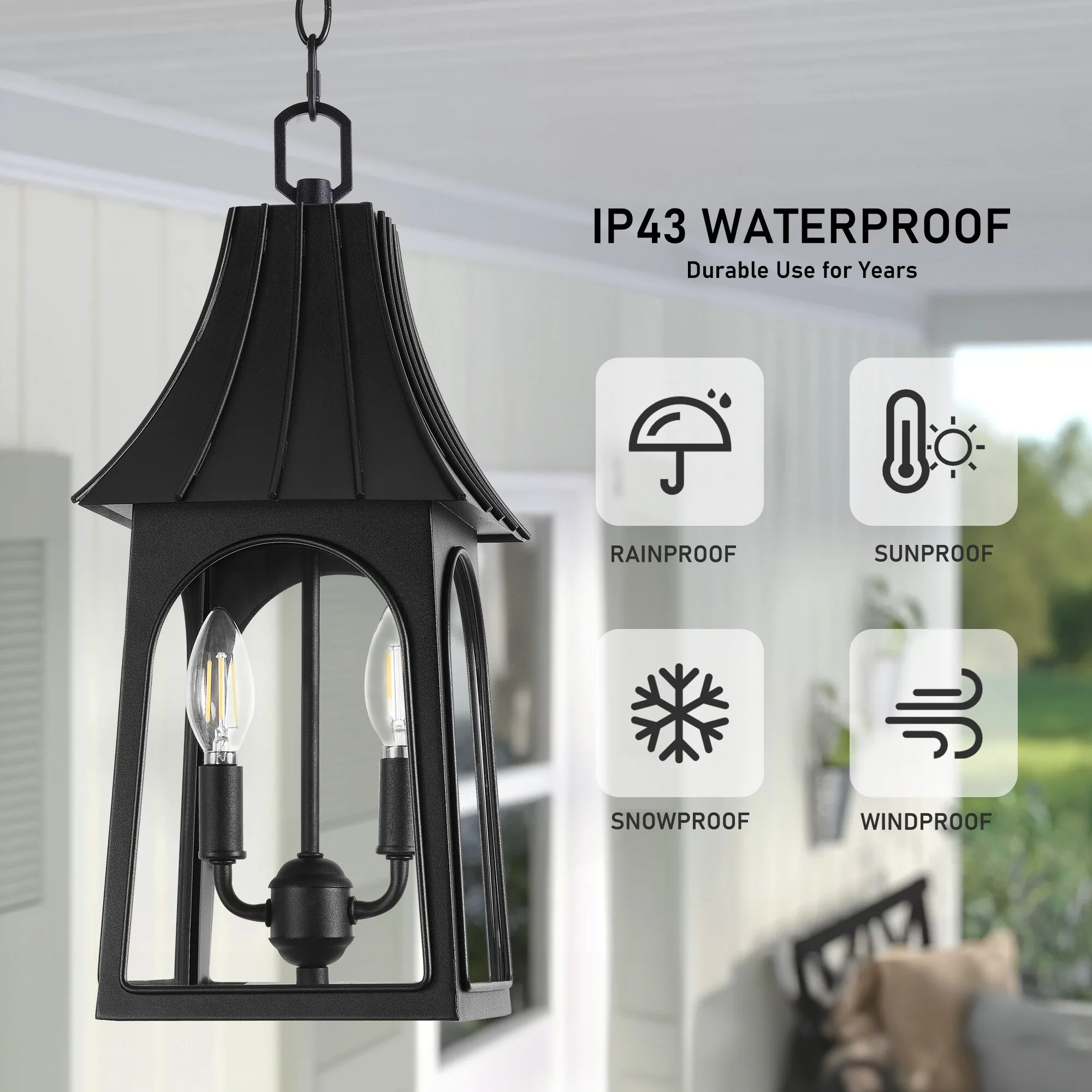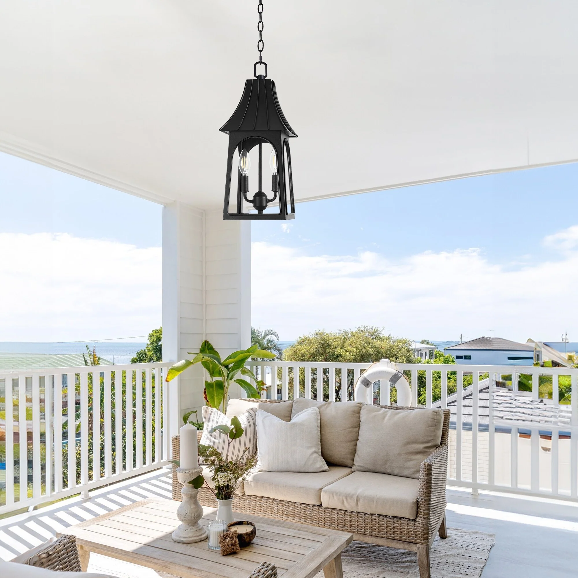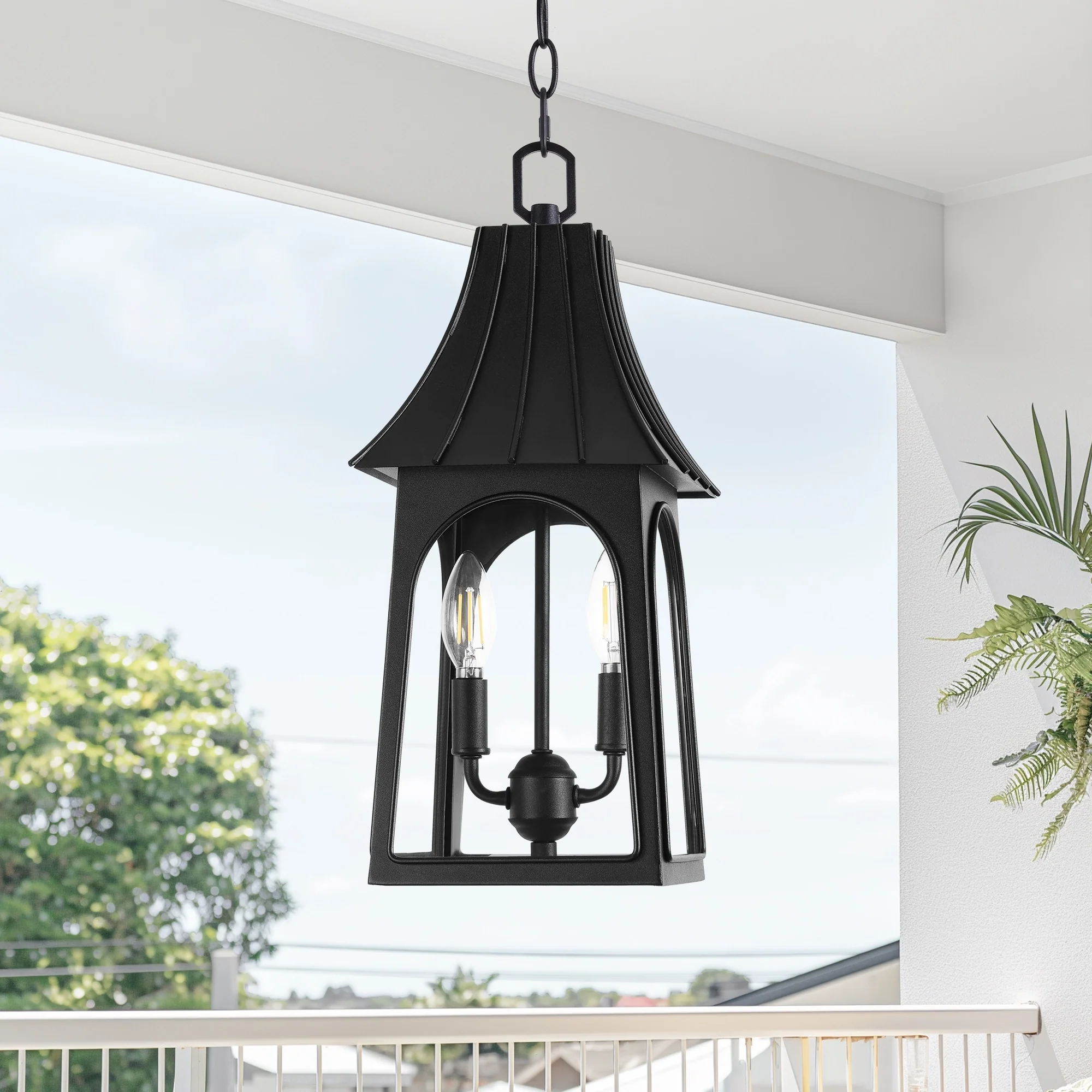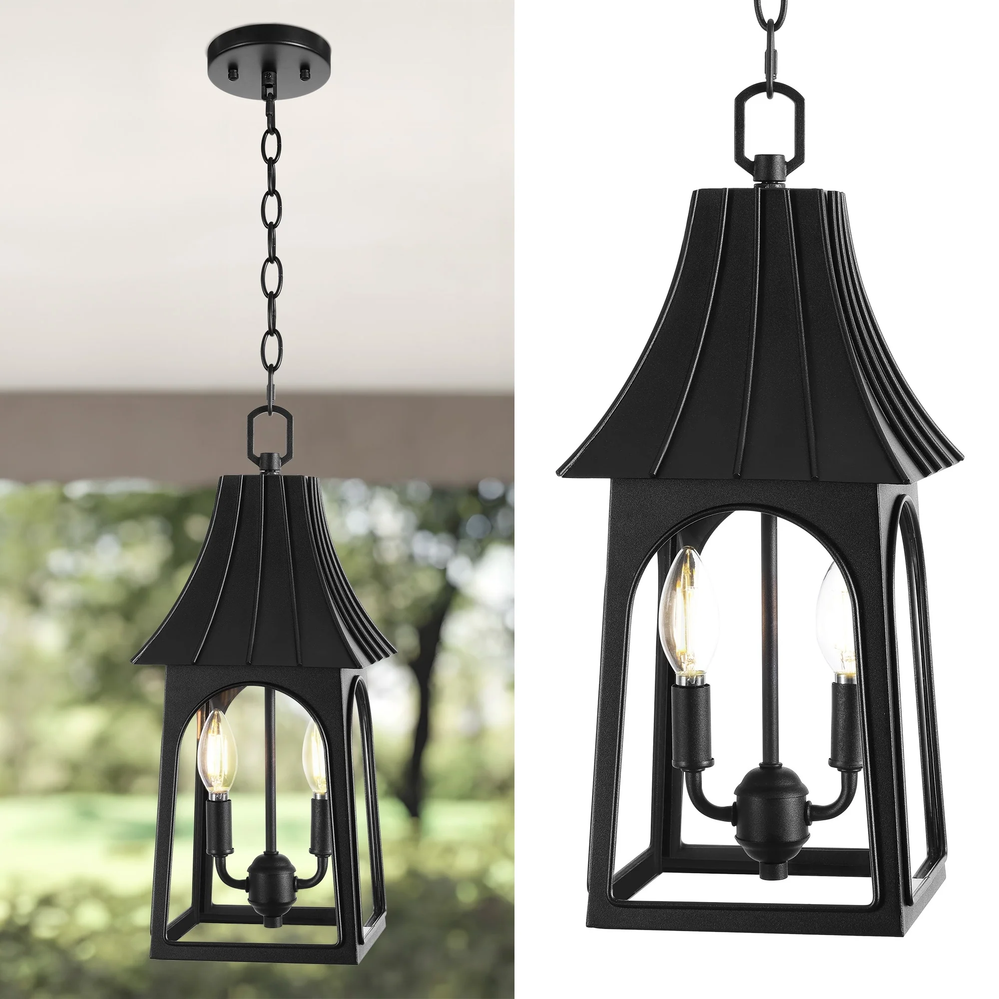 2-Light Black Outdoor Hanging Light Fixture with Clear Glass Shade - N/A