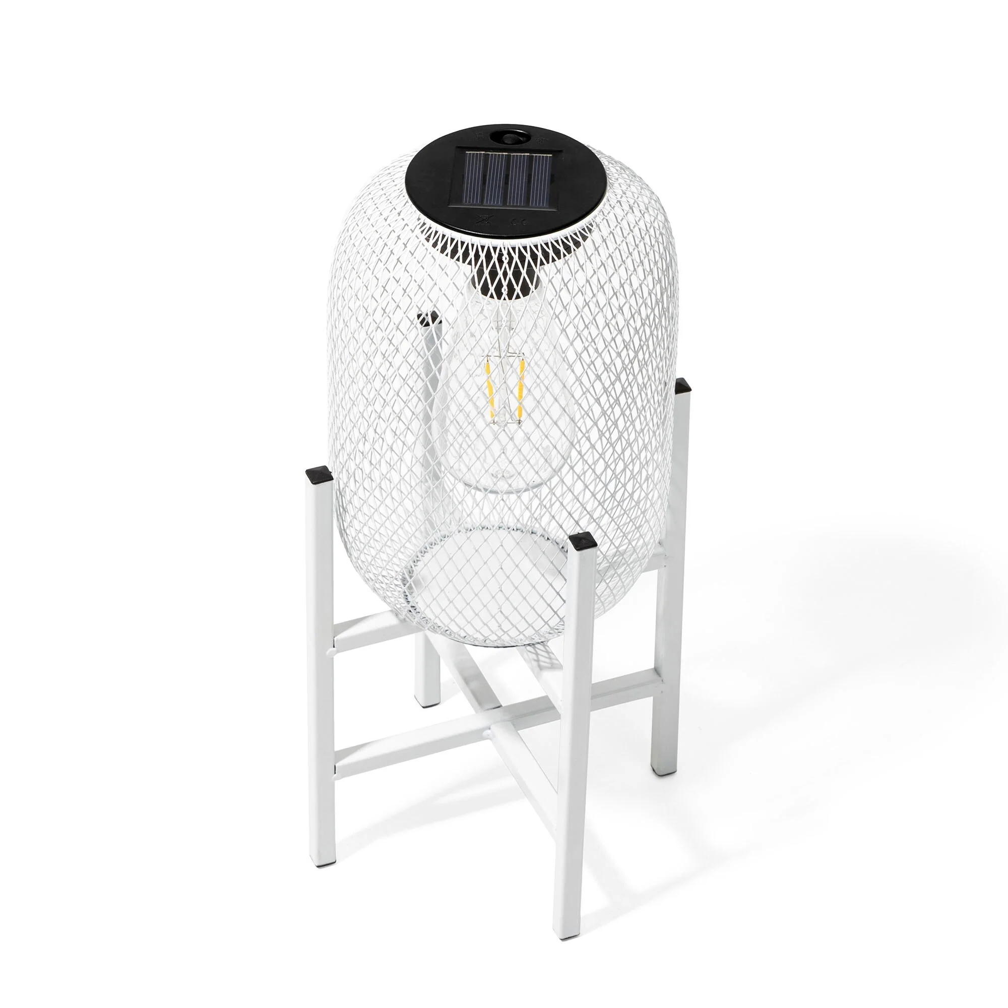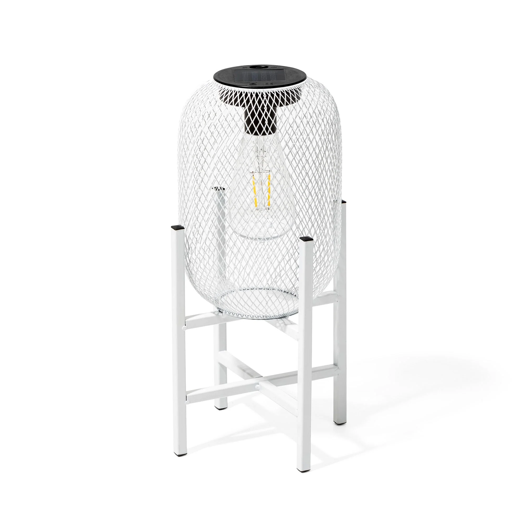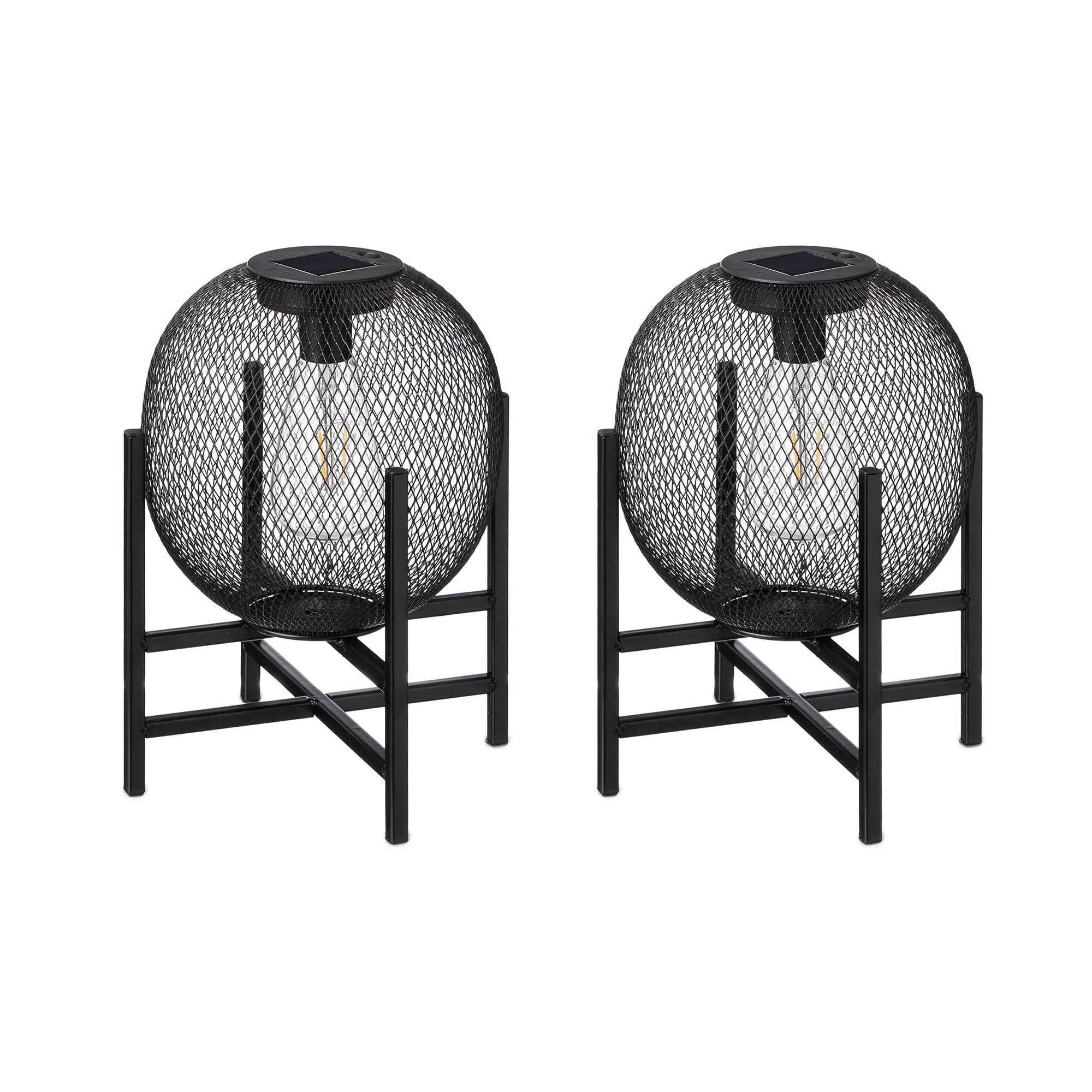 Glitzhome 11.5"H Set of 2 Mesh Edison Bulb Outdoor Solar Lantern with Stand