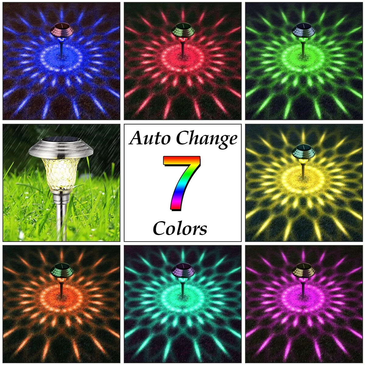 8 Pack Solar Pathway Lights Color Changing Outdoor Waterproof Multi Color Halloween LED Glass Garden Landscape Lighting