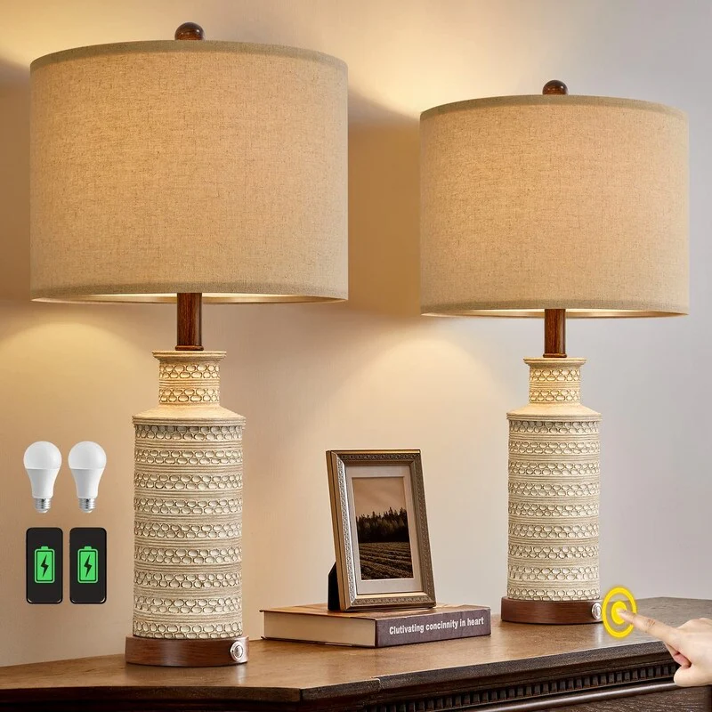 24'' Farmhouse Table Lamp Set of 2 for Bedroom