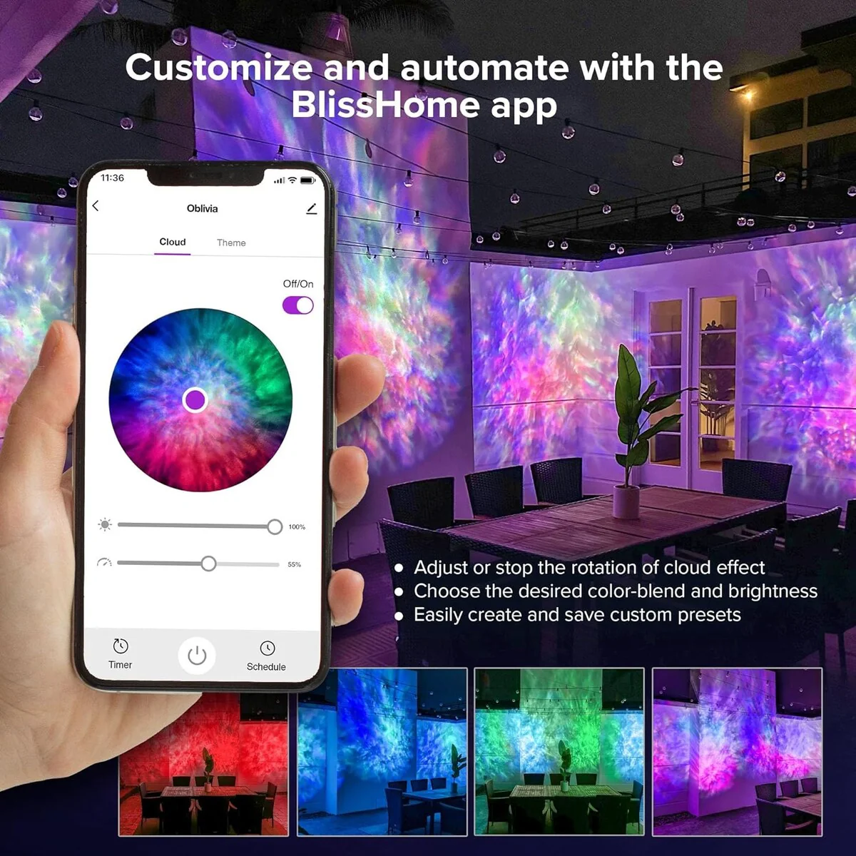 BlissLights Oblivia - IP65 Outdoor Nebula Cloud Projector, LED Landscape Lighting, Garden Path Light