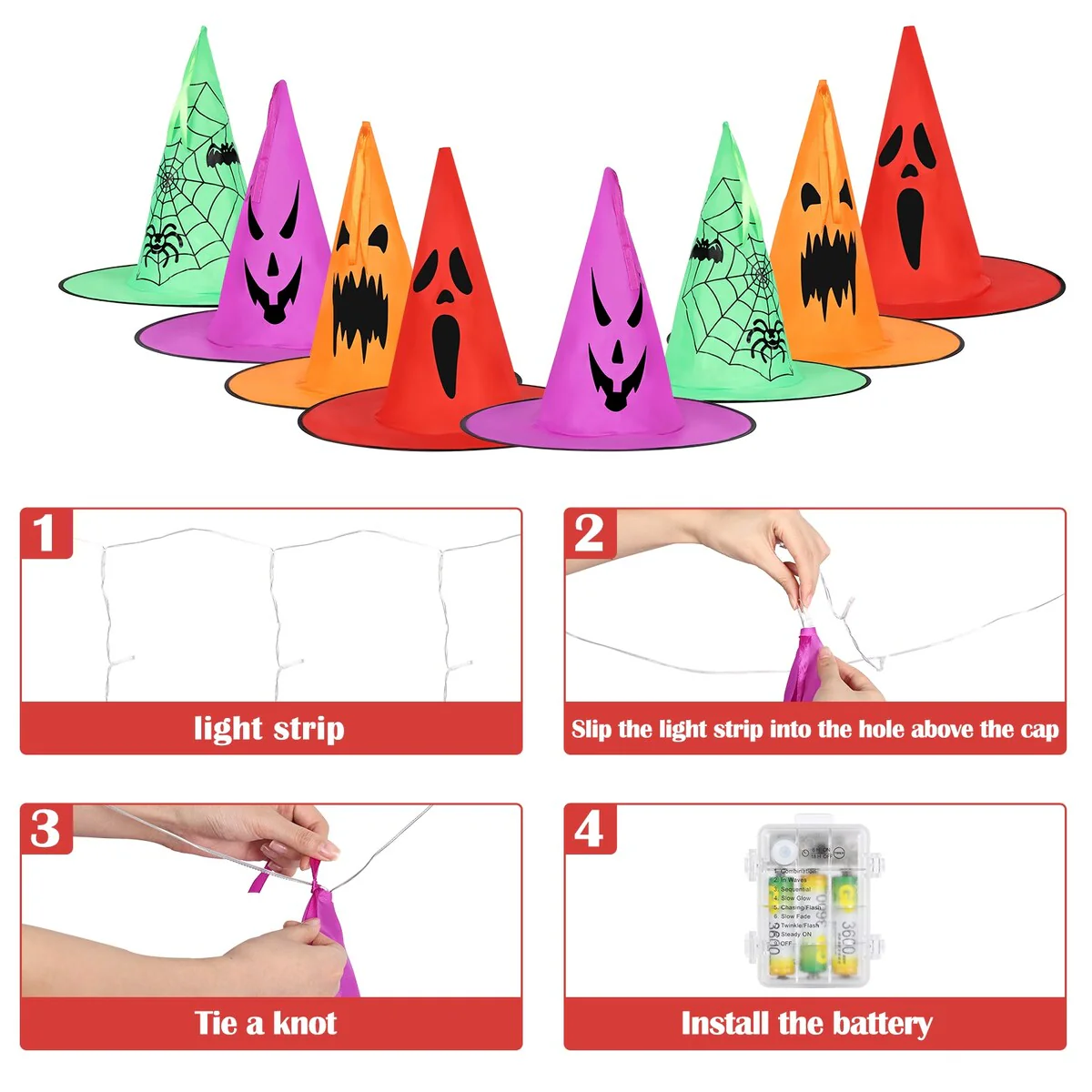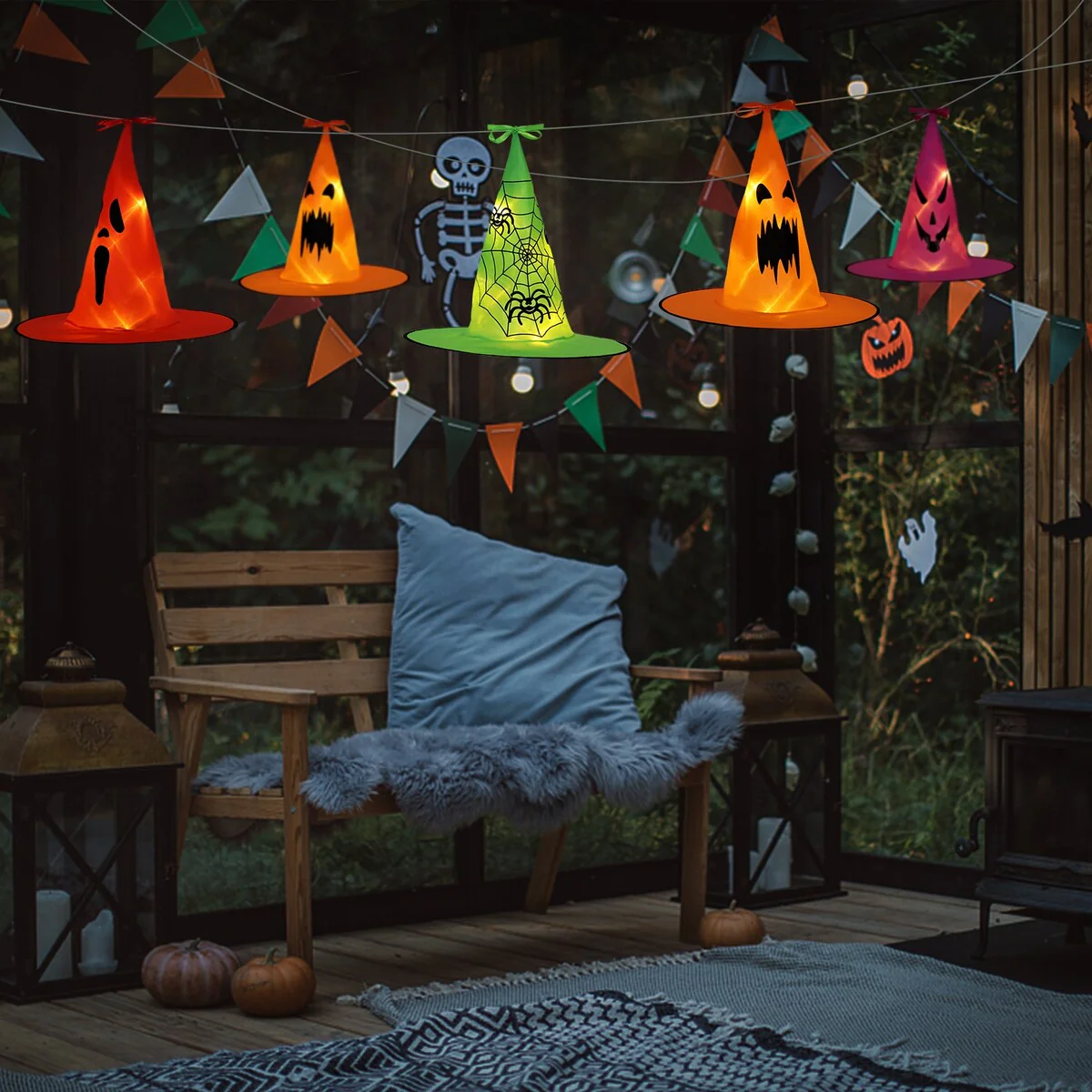 8 Halloween Hanging Light-Emitting Witch Hat Decorative Lights