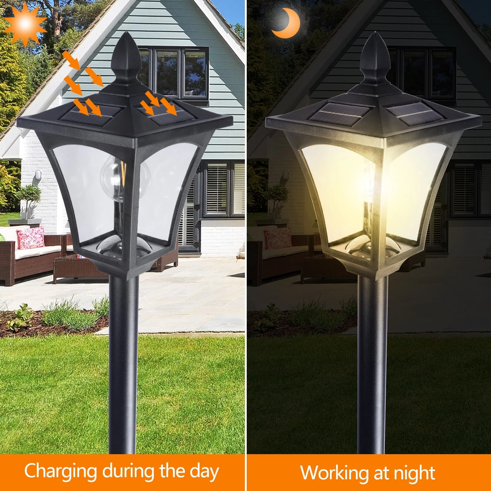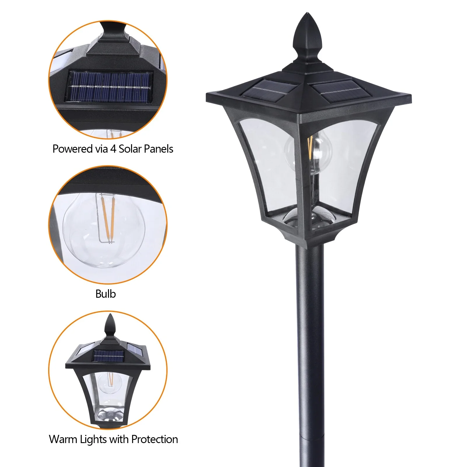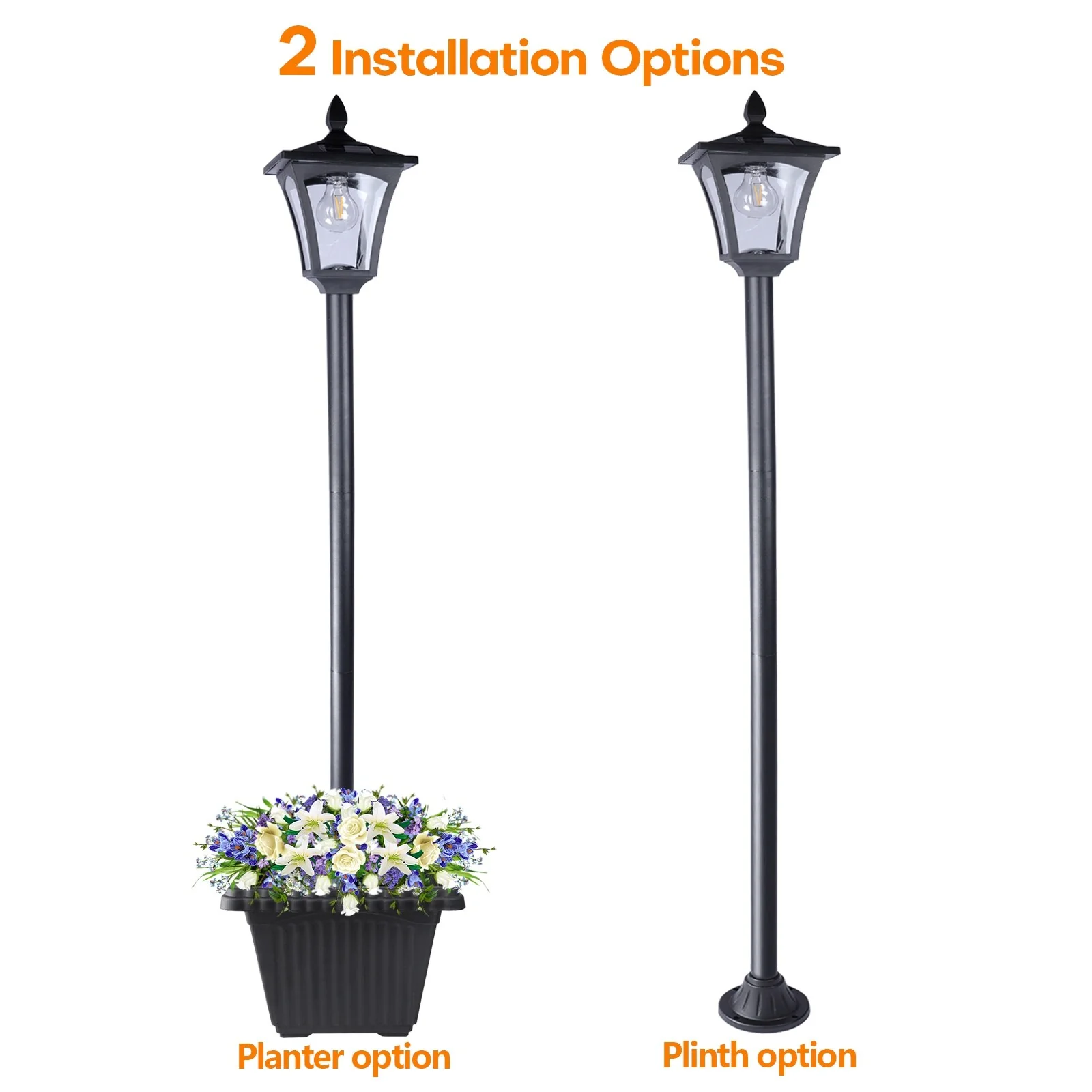 Solar Powered Lamp Post Lights Outdoor Garden Vintage Street Lighting - 63" Height