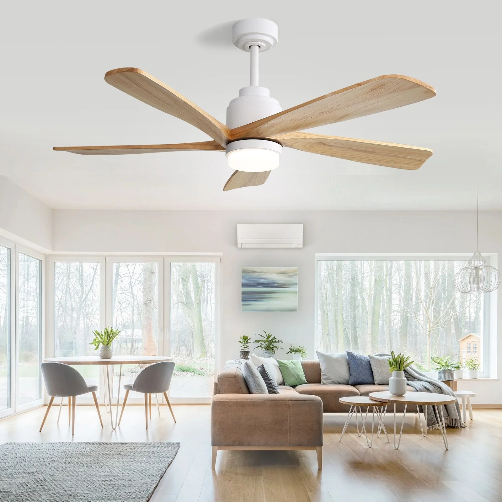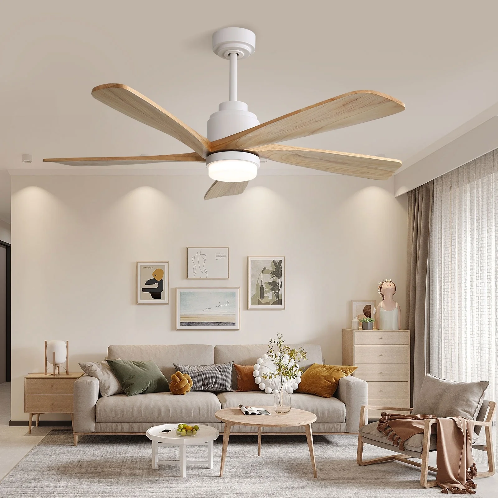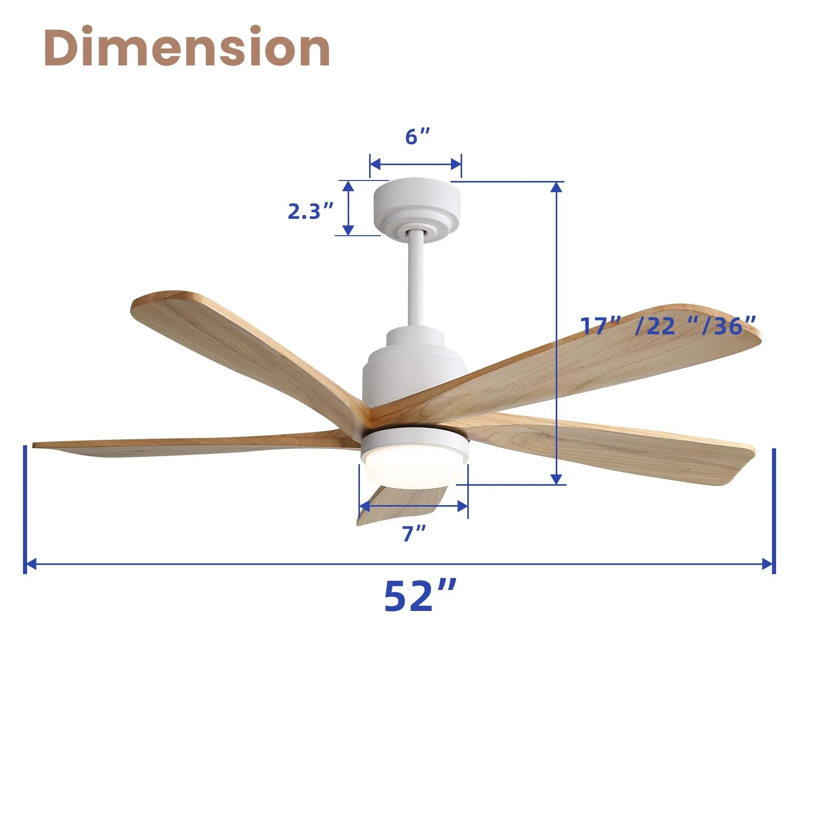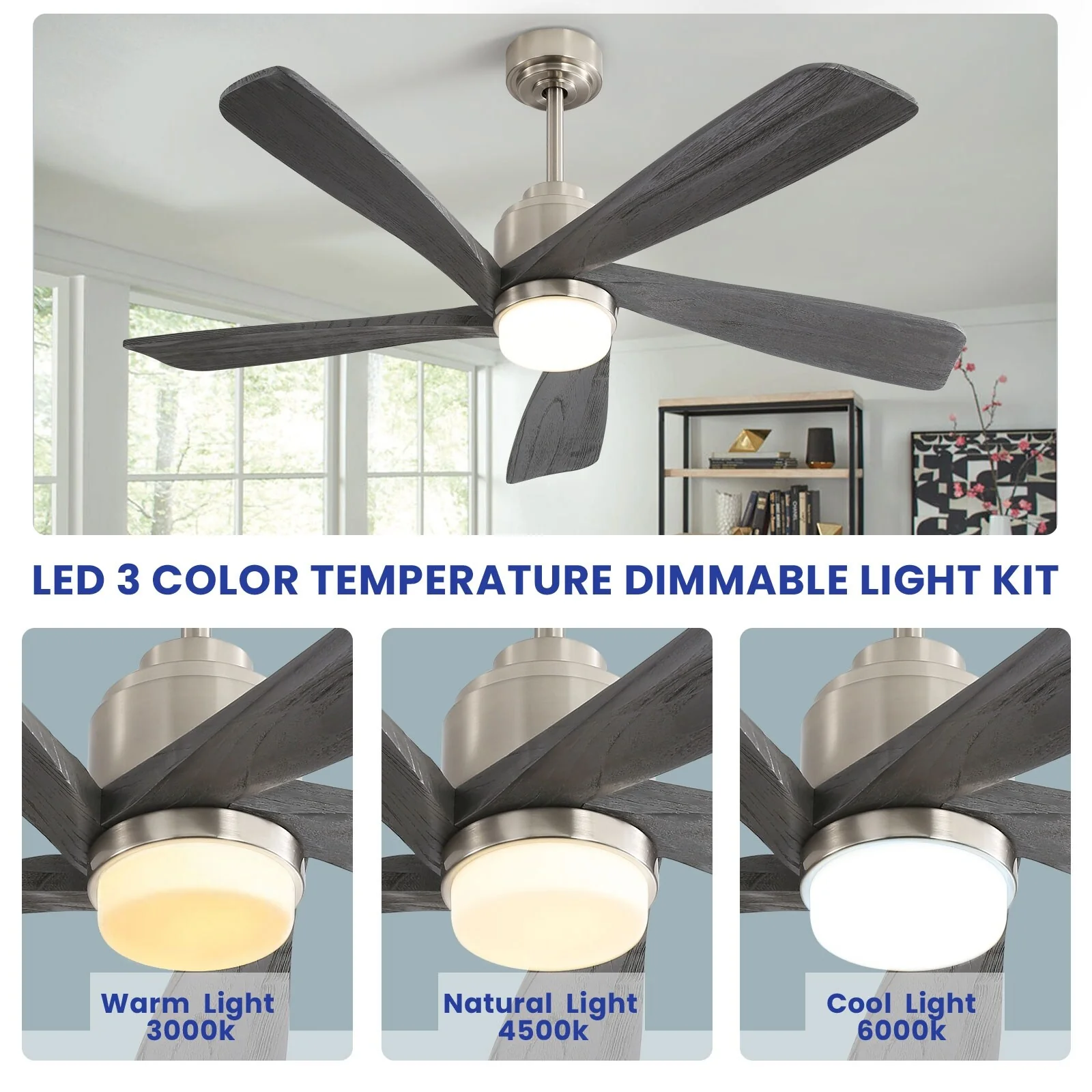 52 Inch Wood Blades Ceiling Fan with Light,3 CCT LED,Remote and APP Control-Farmhouse, Modern, Contemporary - 52 inches