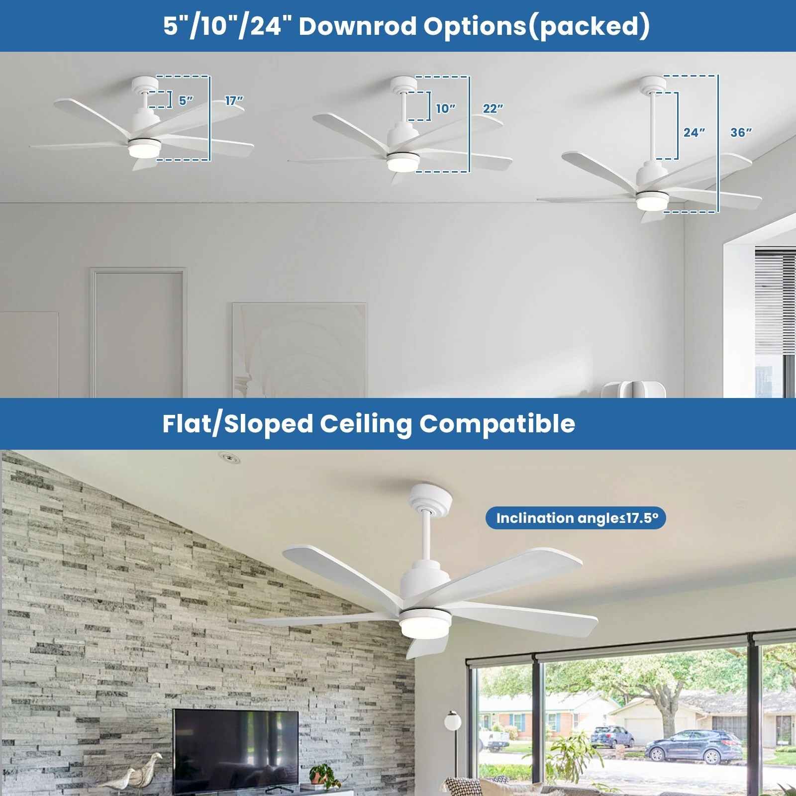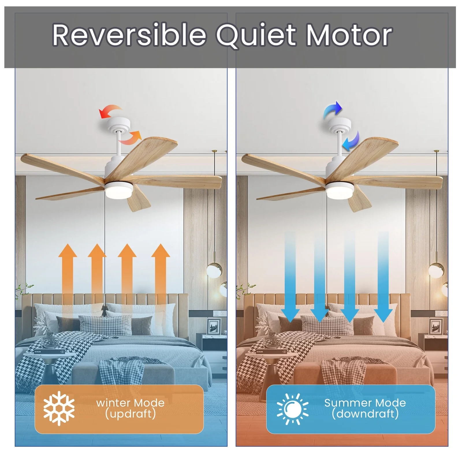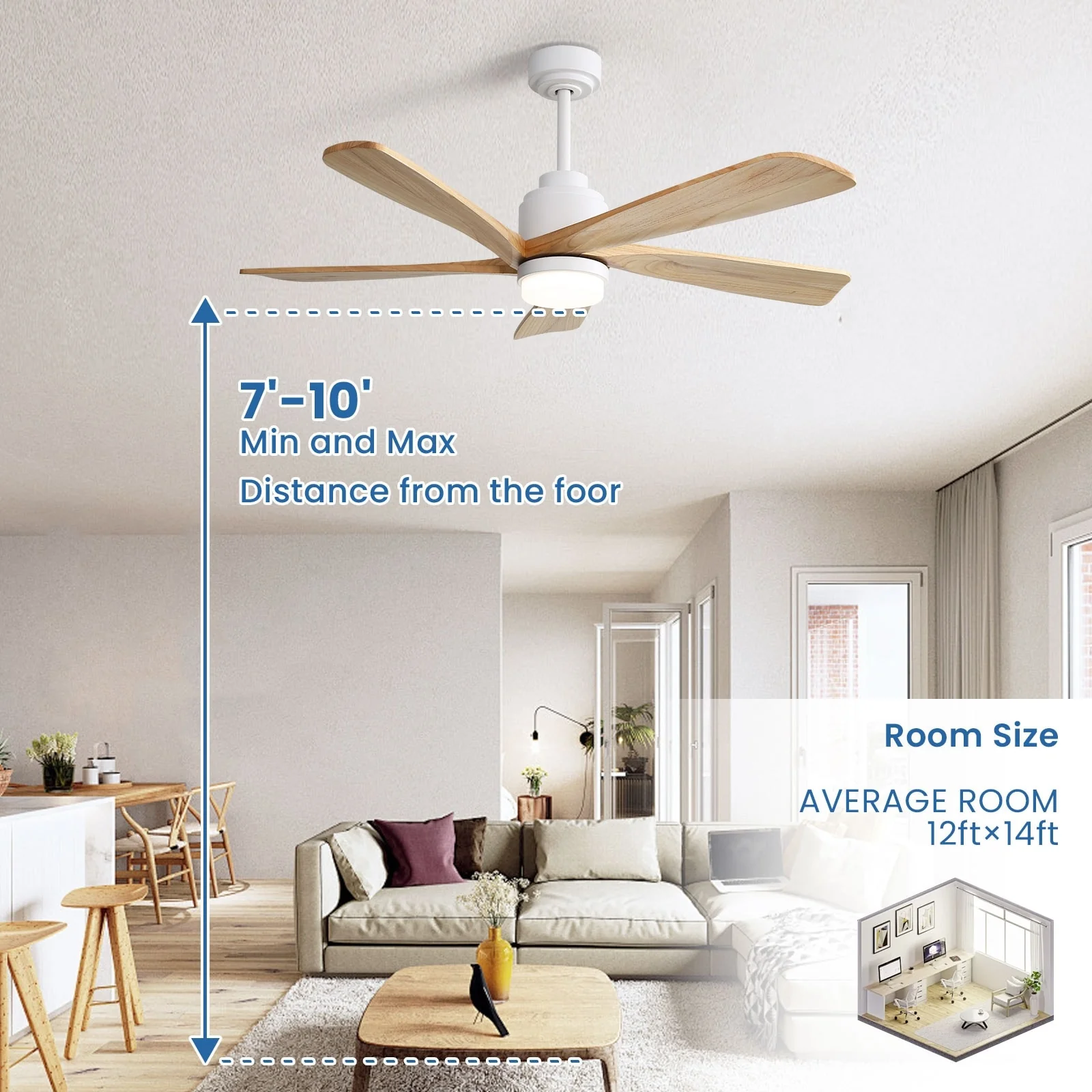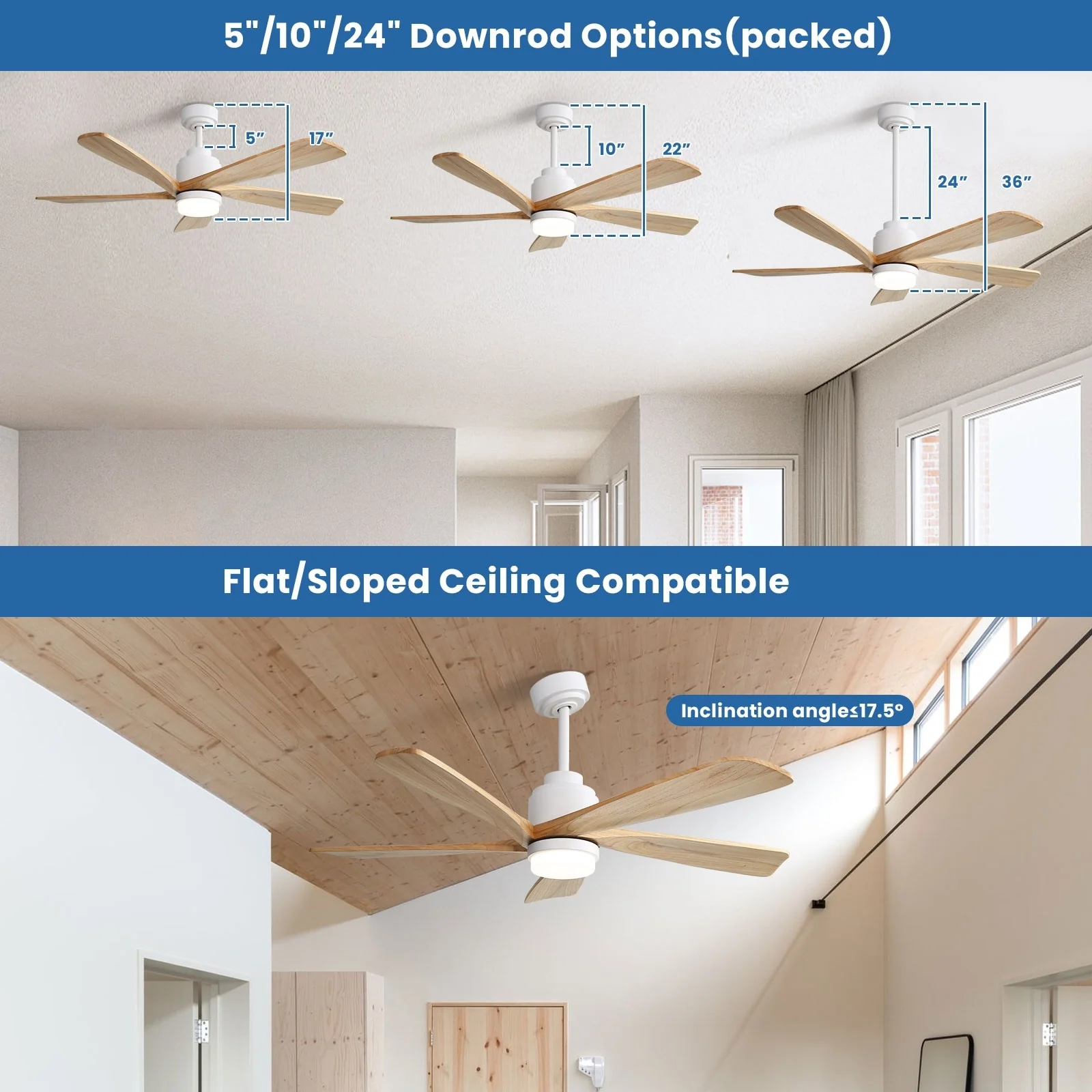 52 Inch Wood Blades Ceiling Fan with Light,3 CCT LED,Remote and APP Control-Farmhouse, Modern, Contemporary - 52 inches
