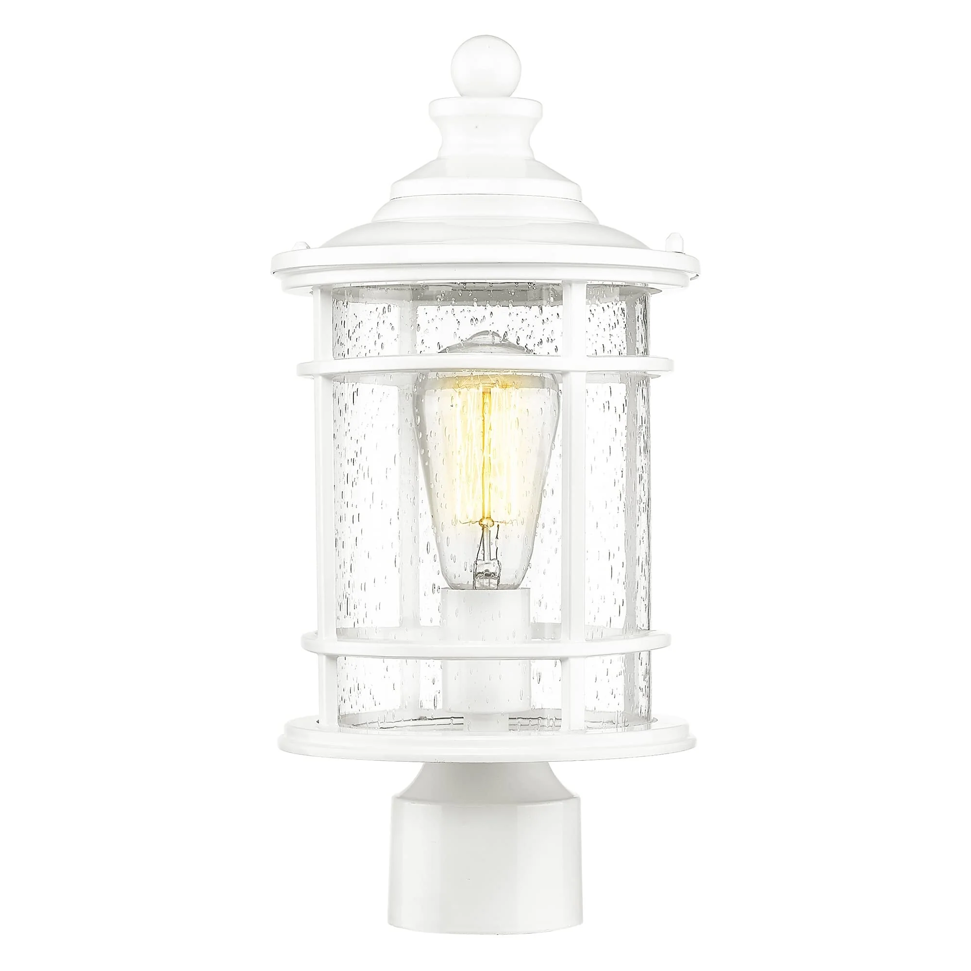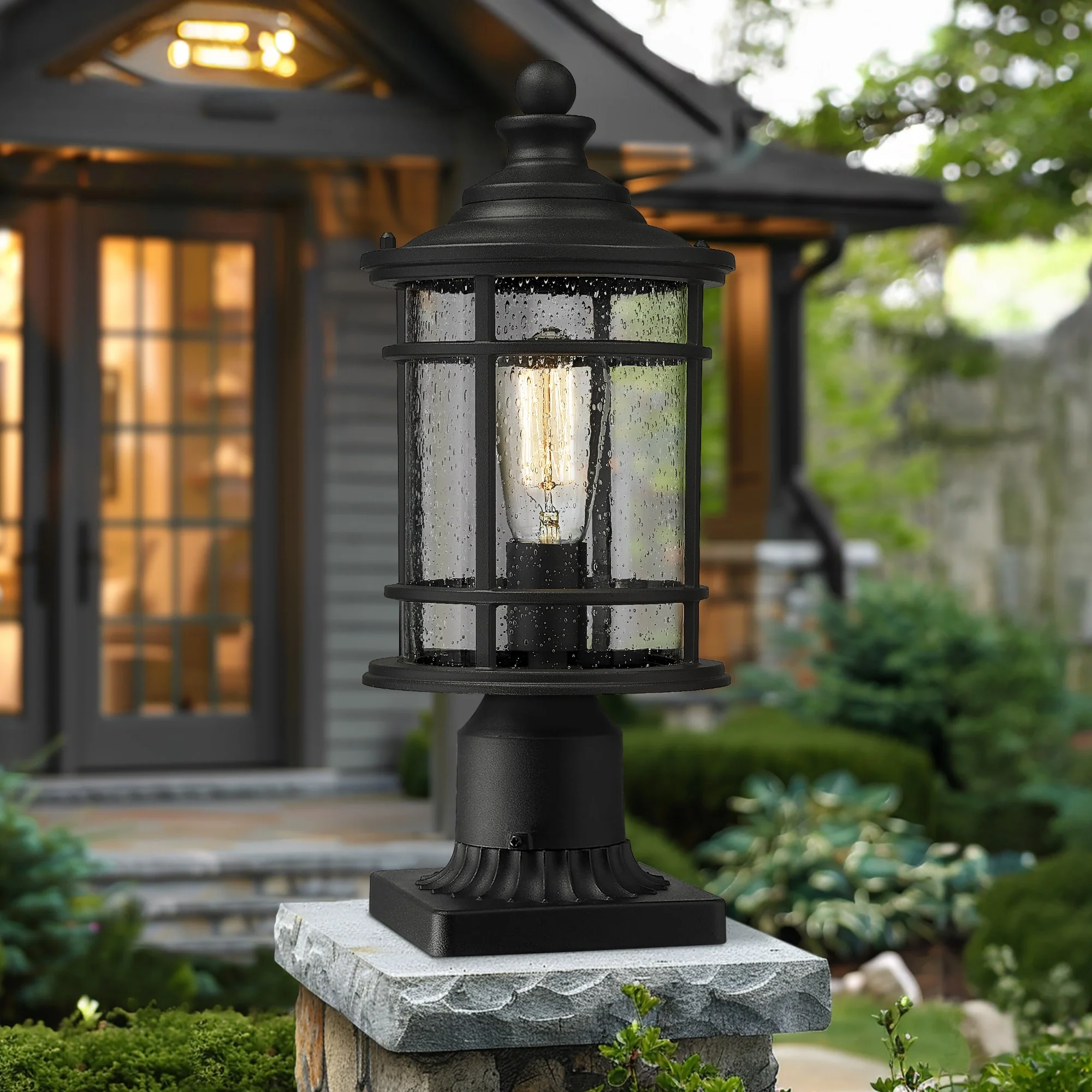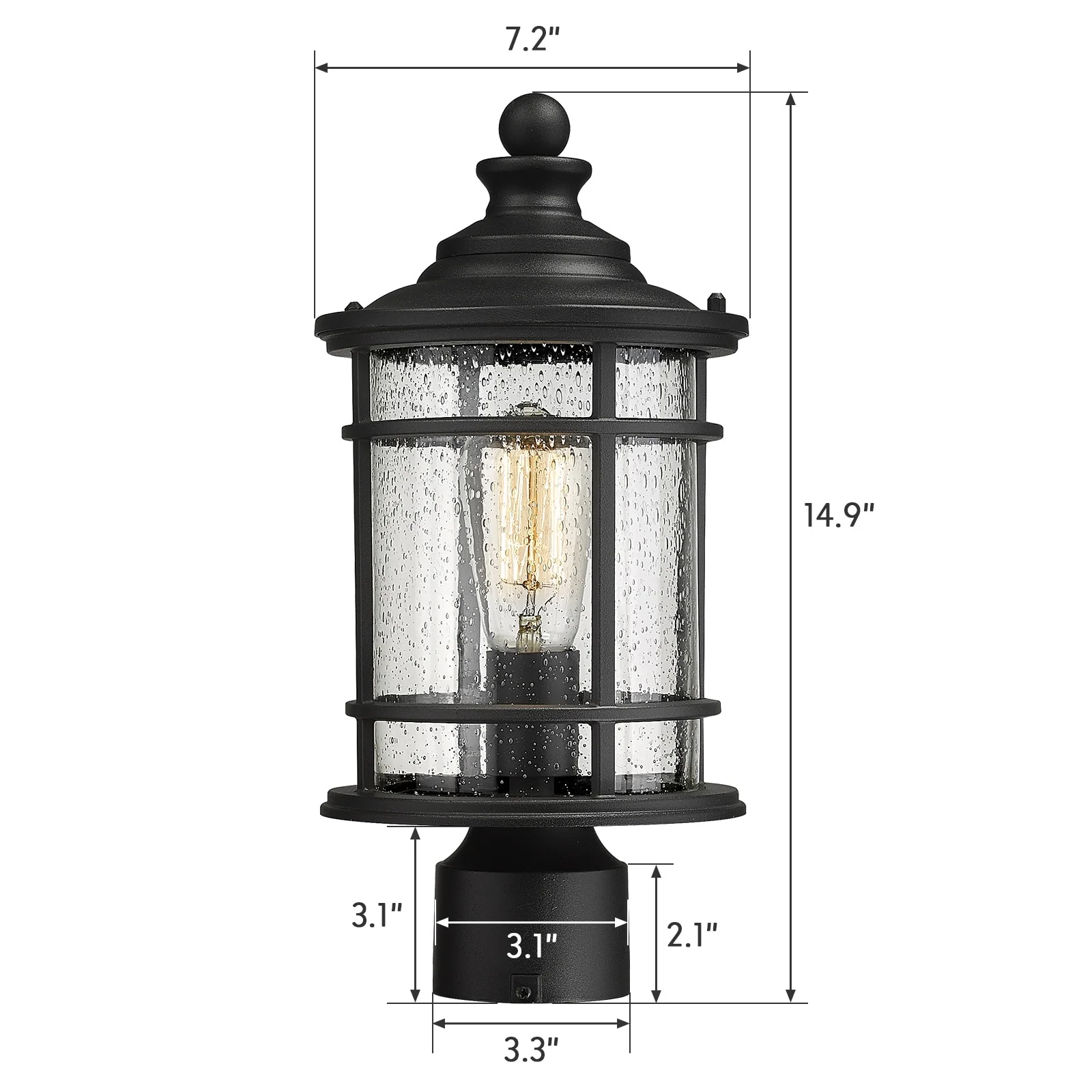 Outdoor Post Light Fixtures, 15 Inch Farmhouse Modern Lamp Post Lighting, Black Finish with Seeded Glass