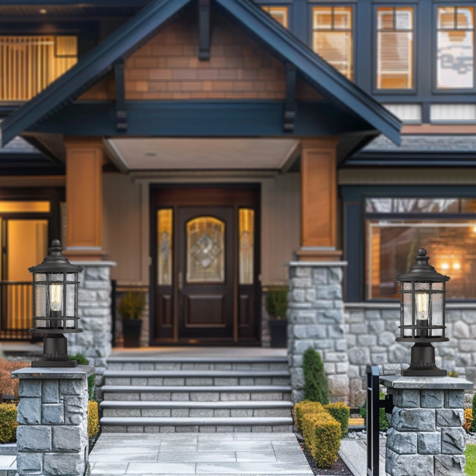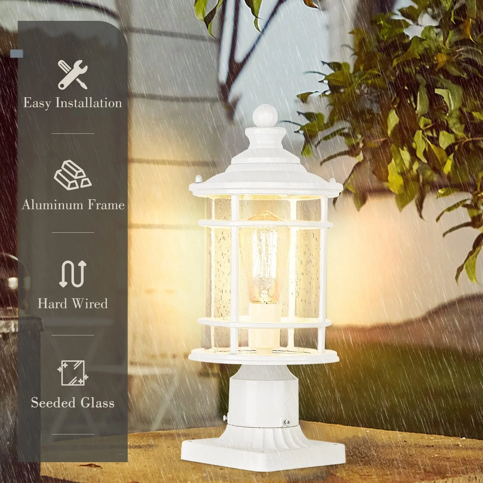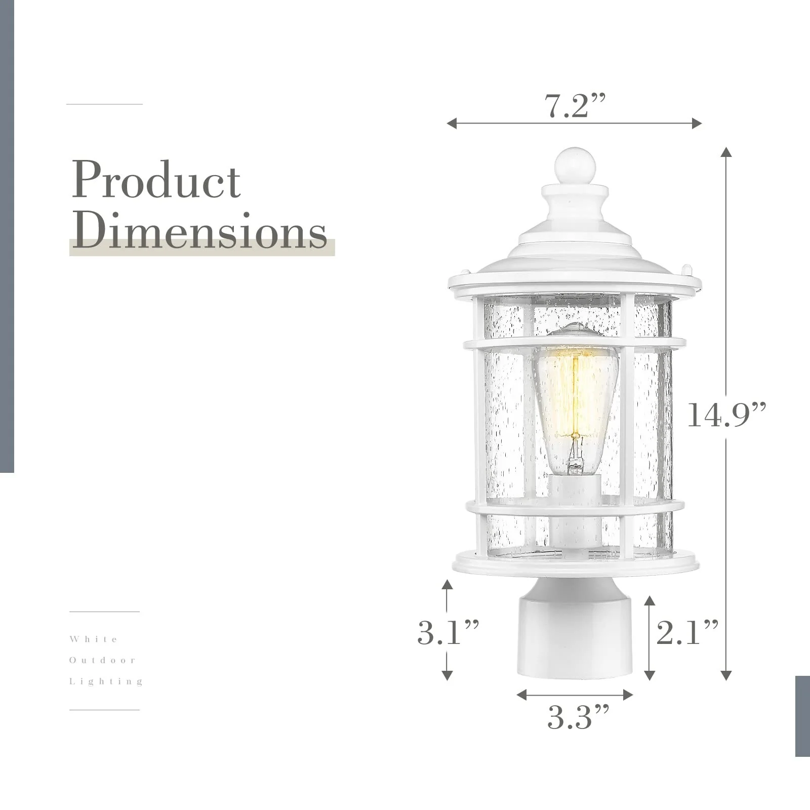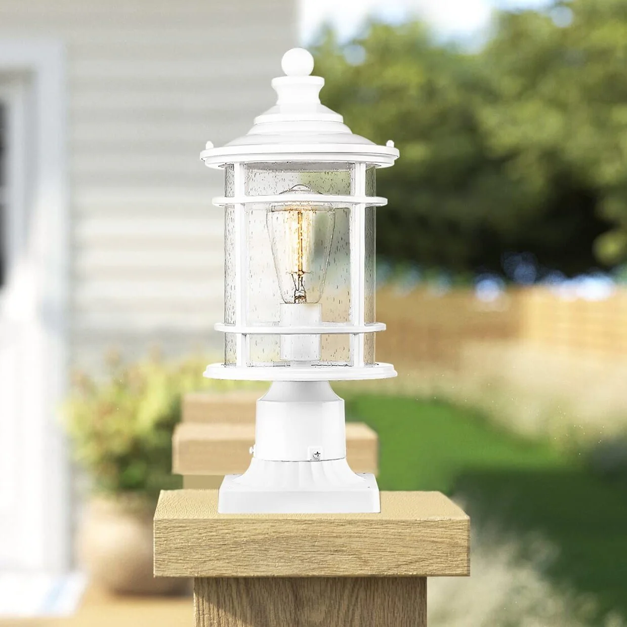 Outdoor Post Light Fixtures, 15 Inch Farmhouse Modern Lamp Post Lighting, Black Finish with Seeded Glass