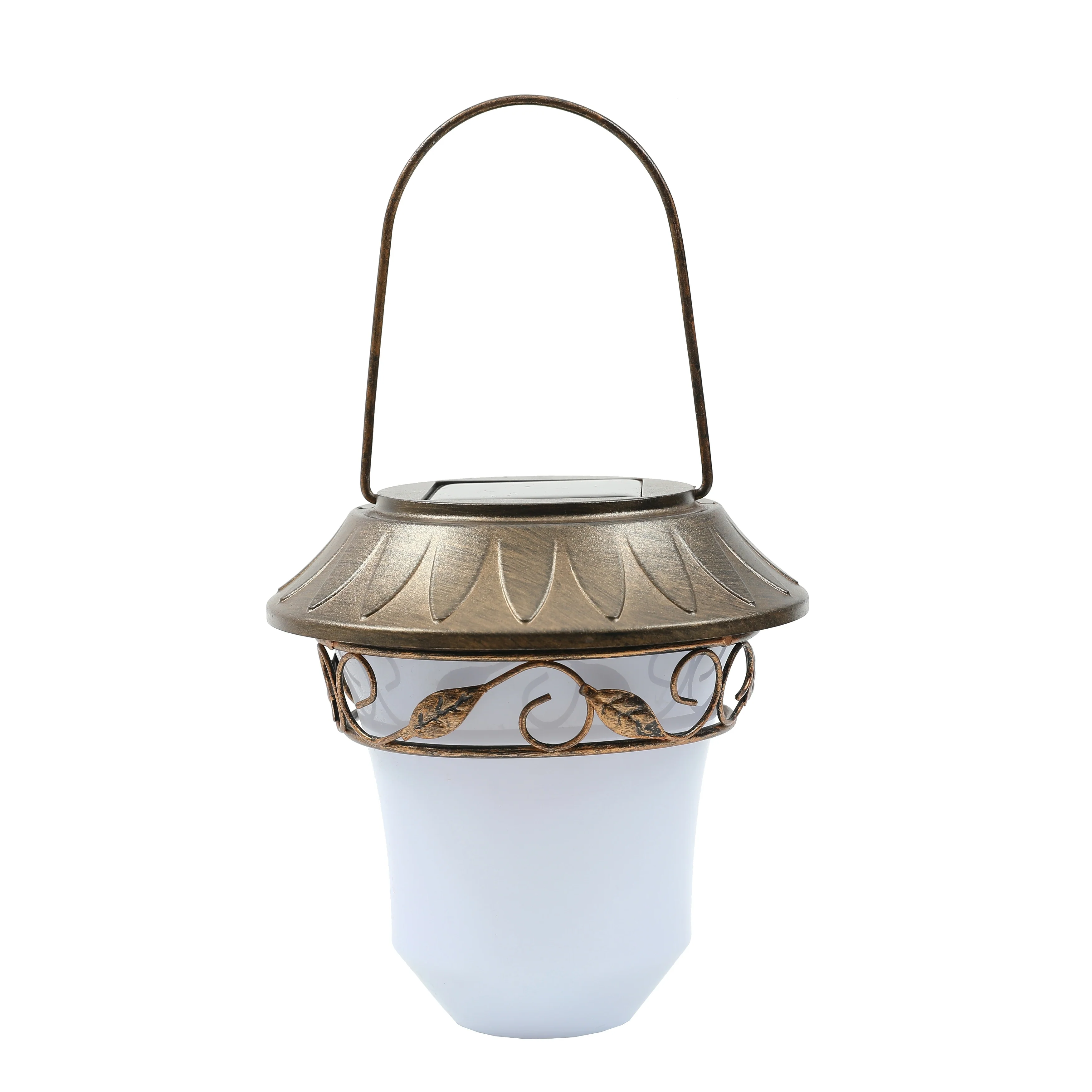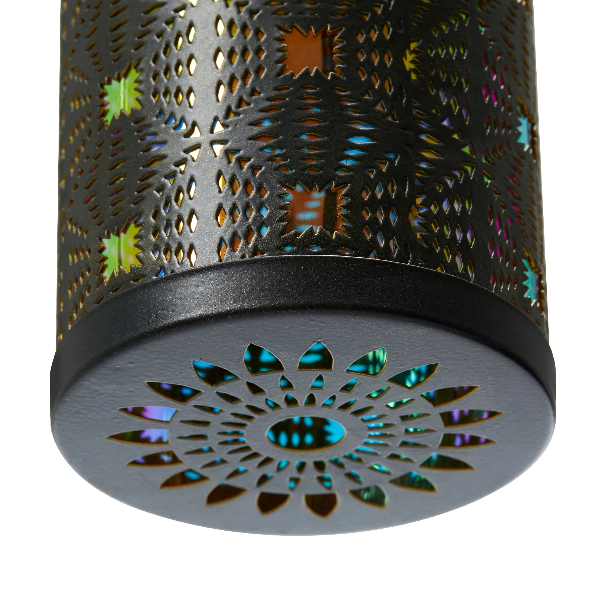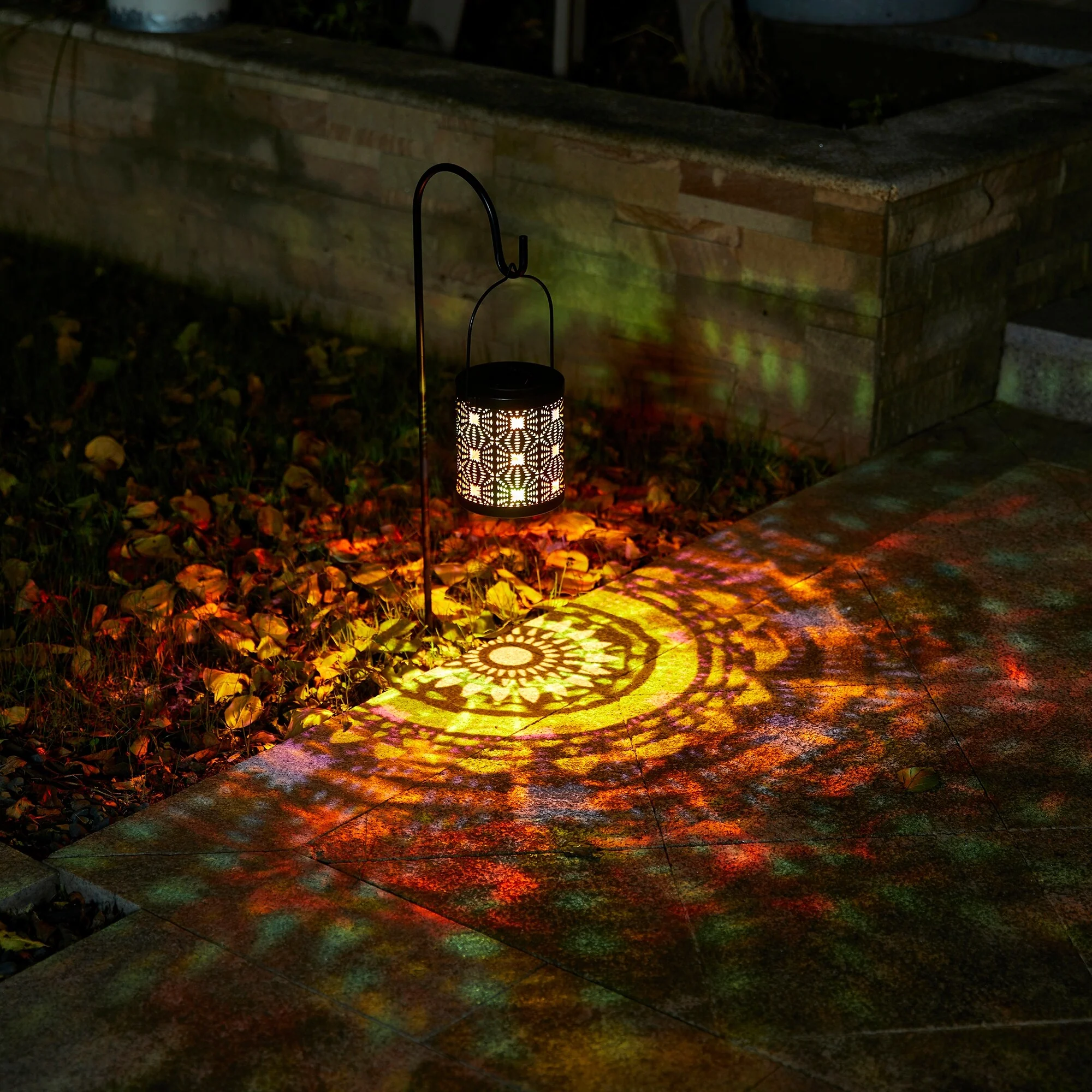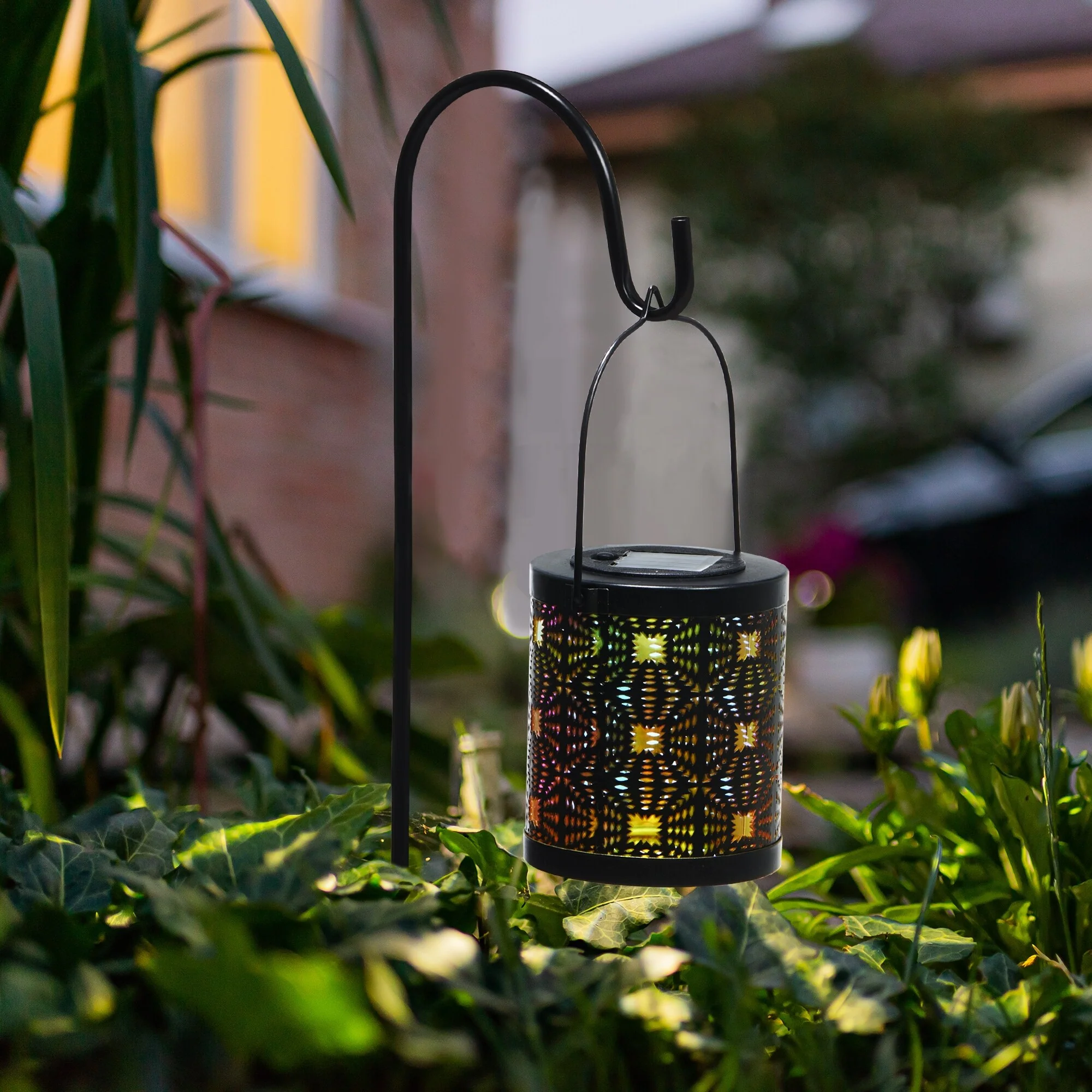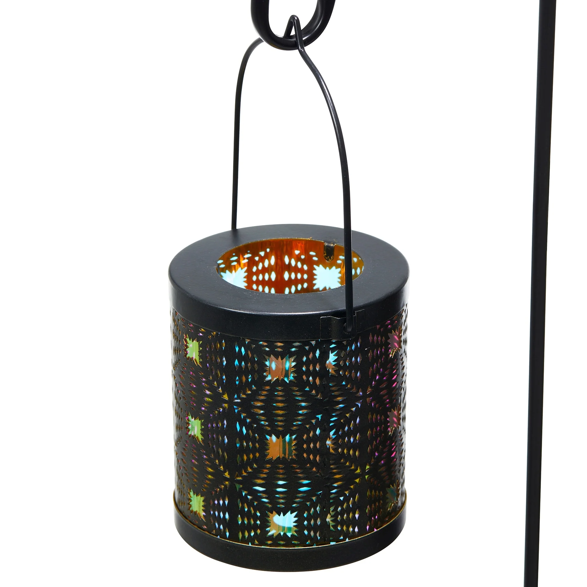 Glitzhome Set of 2 Metal Cutout Laser Outdoor Solar Lantern with Hanging LED Light Garden Stakes