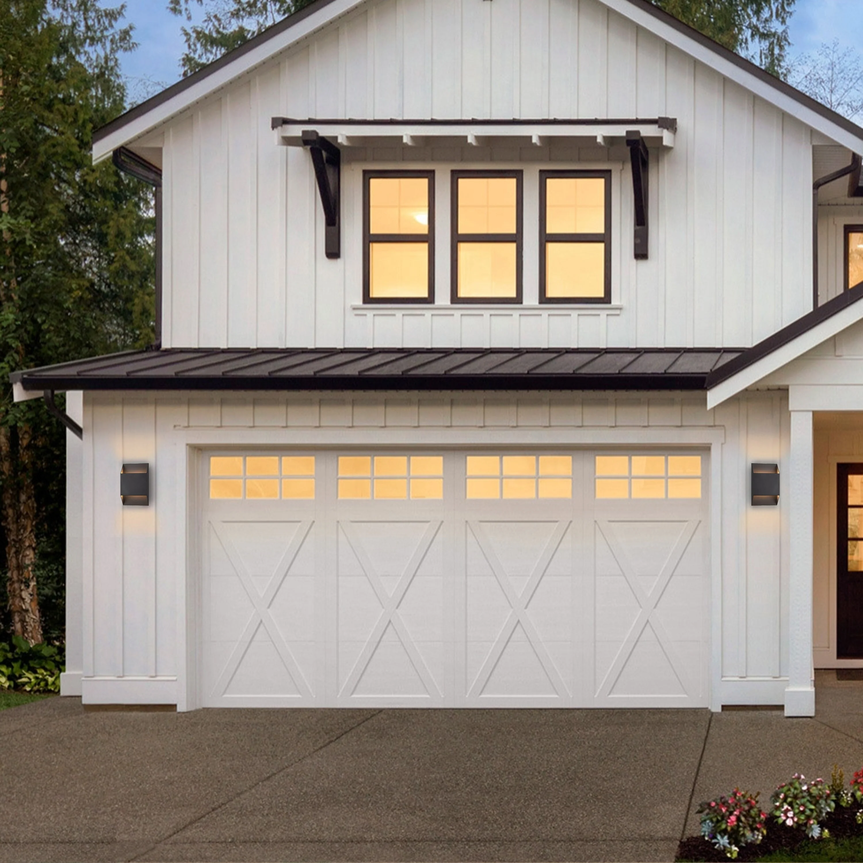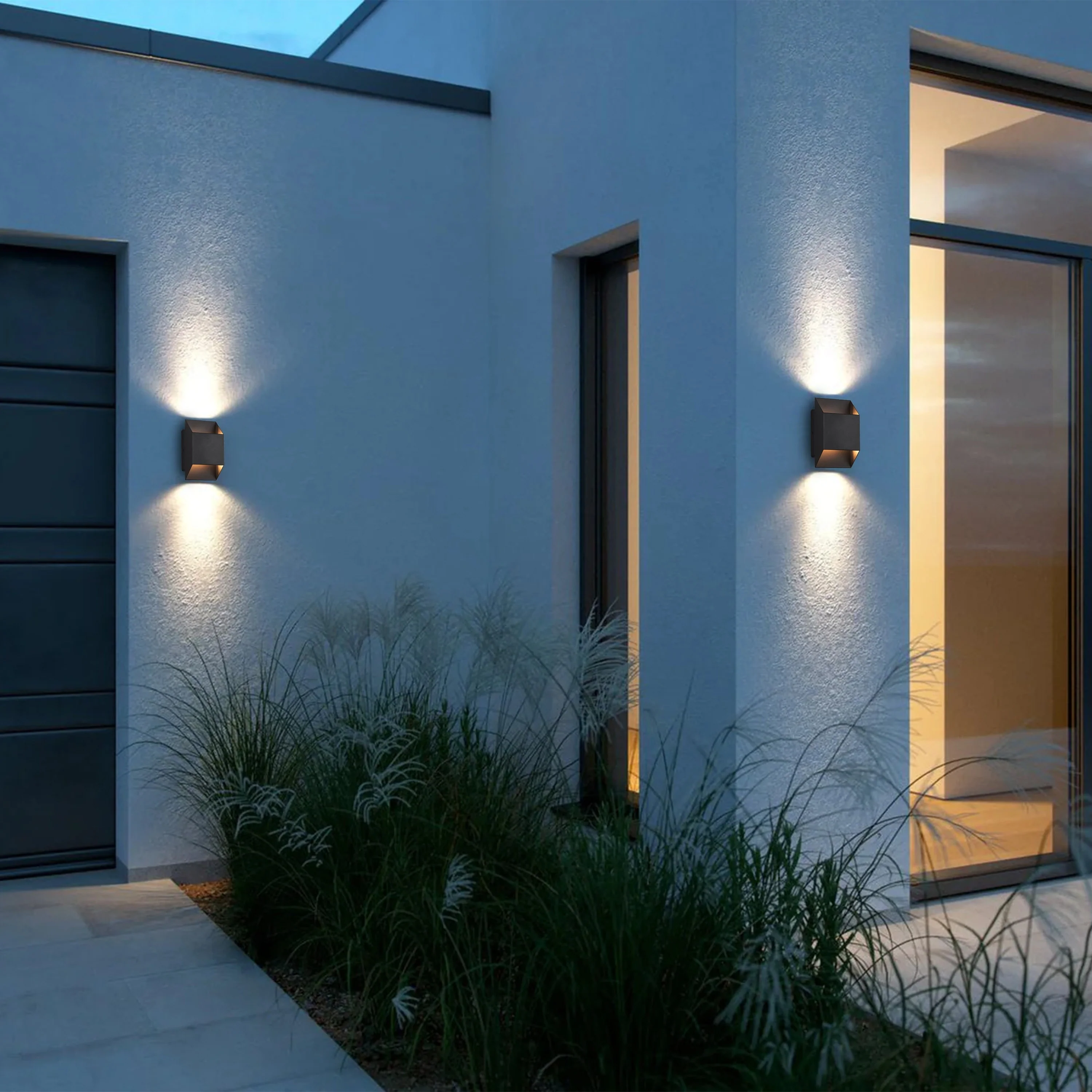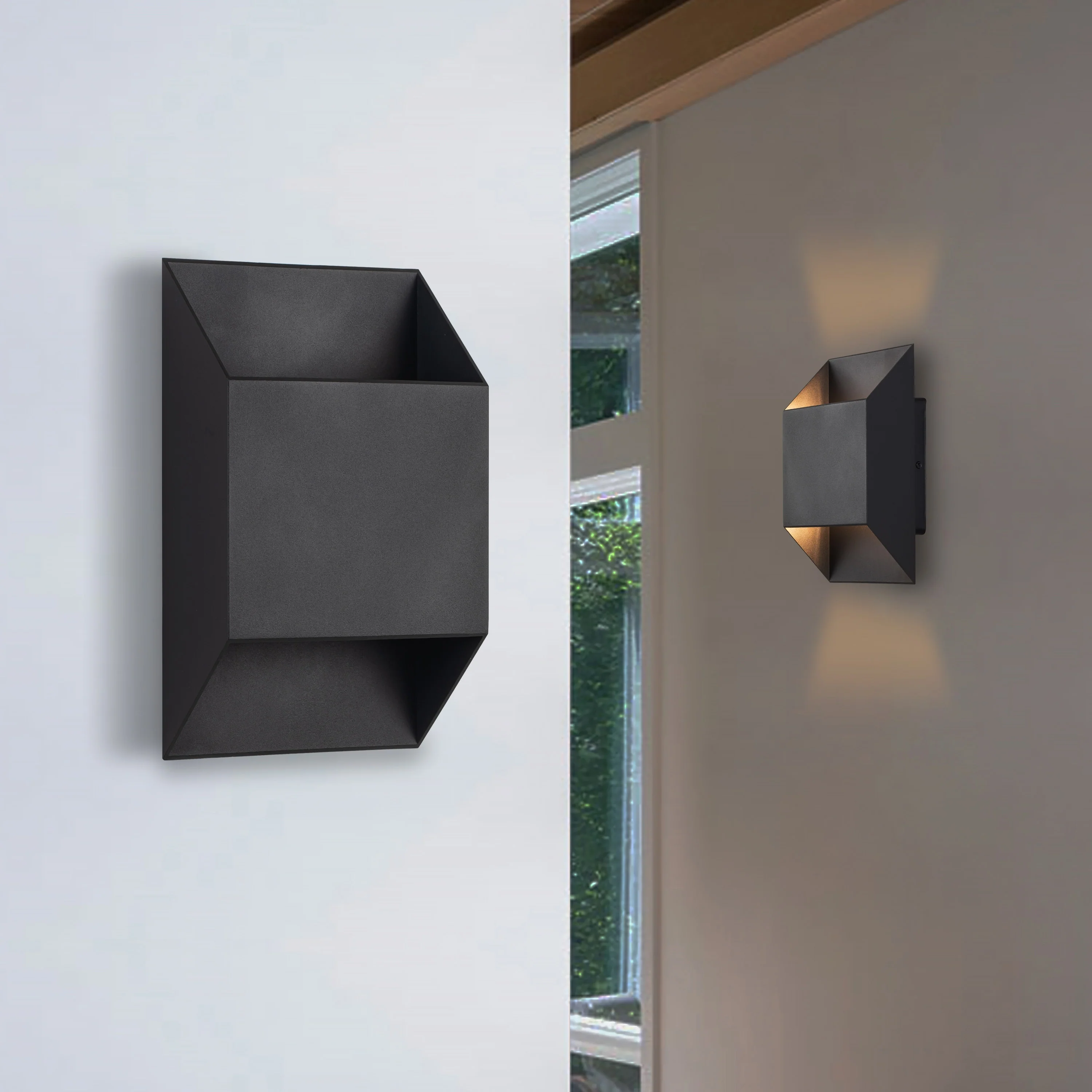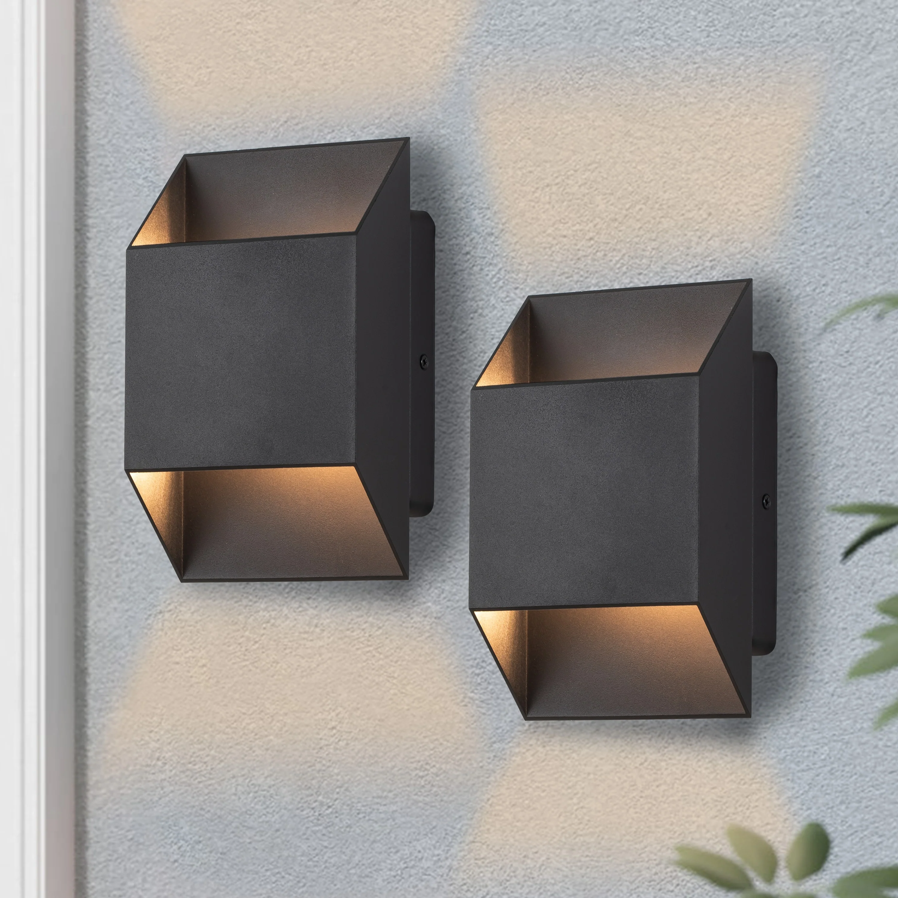 2-Pack Aluminum Matte Black Integrated LED Outdoor Wall Lights Sconce