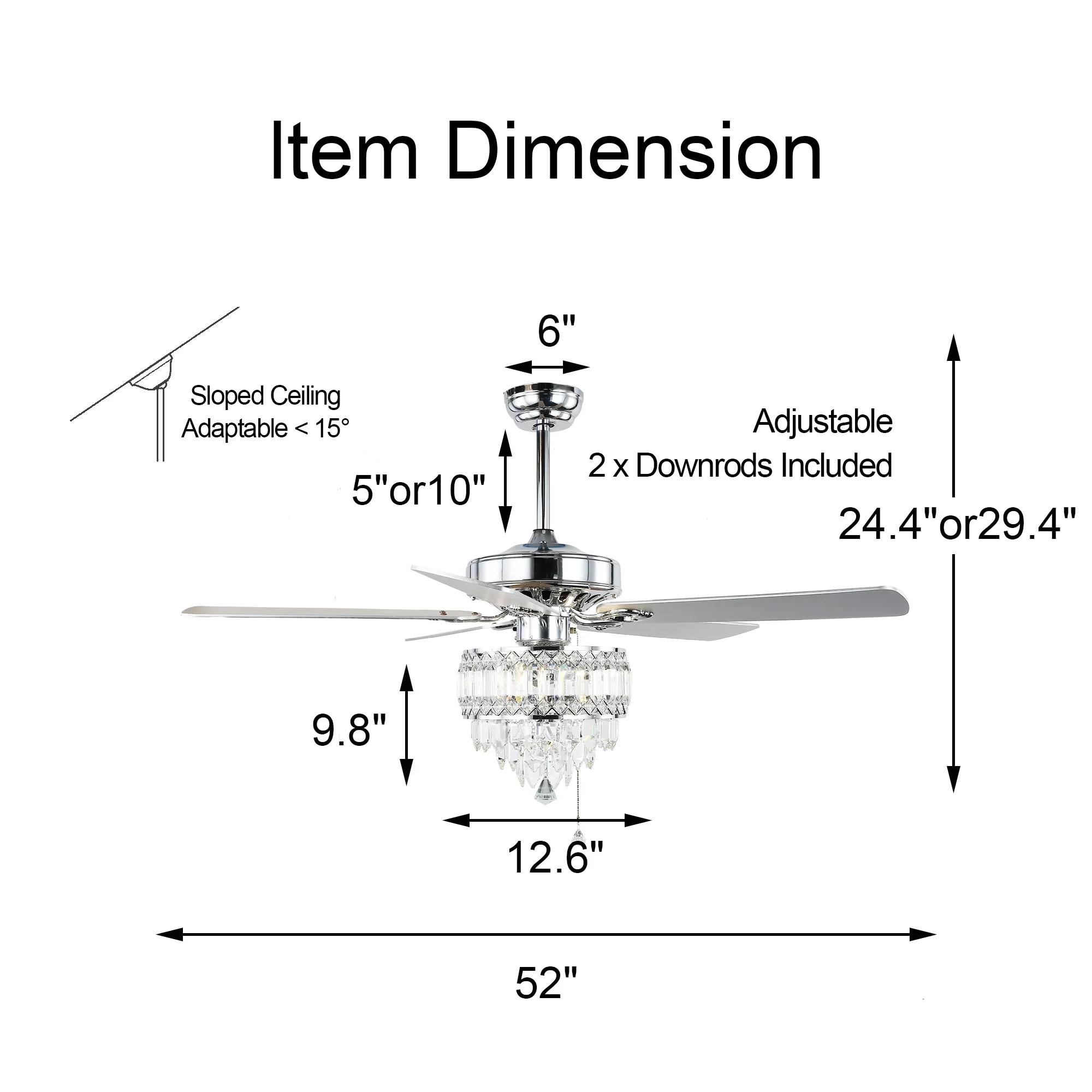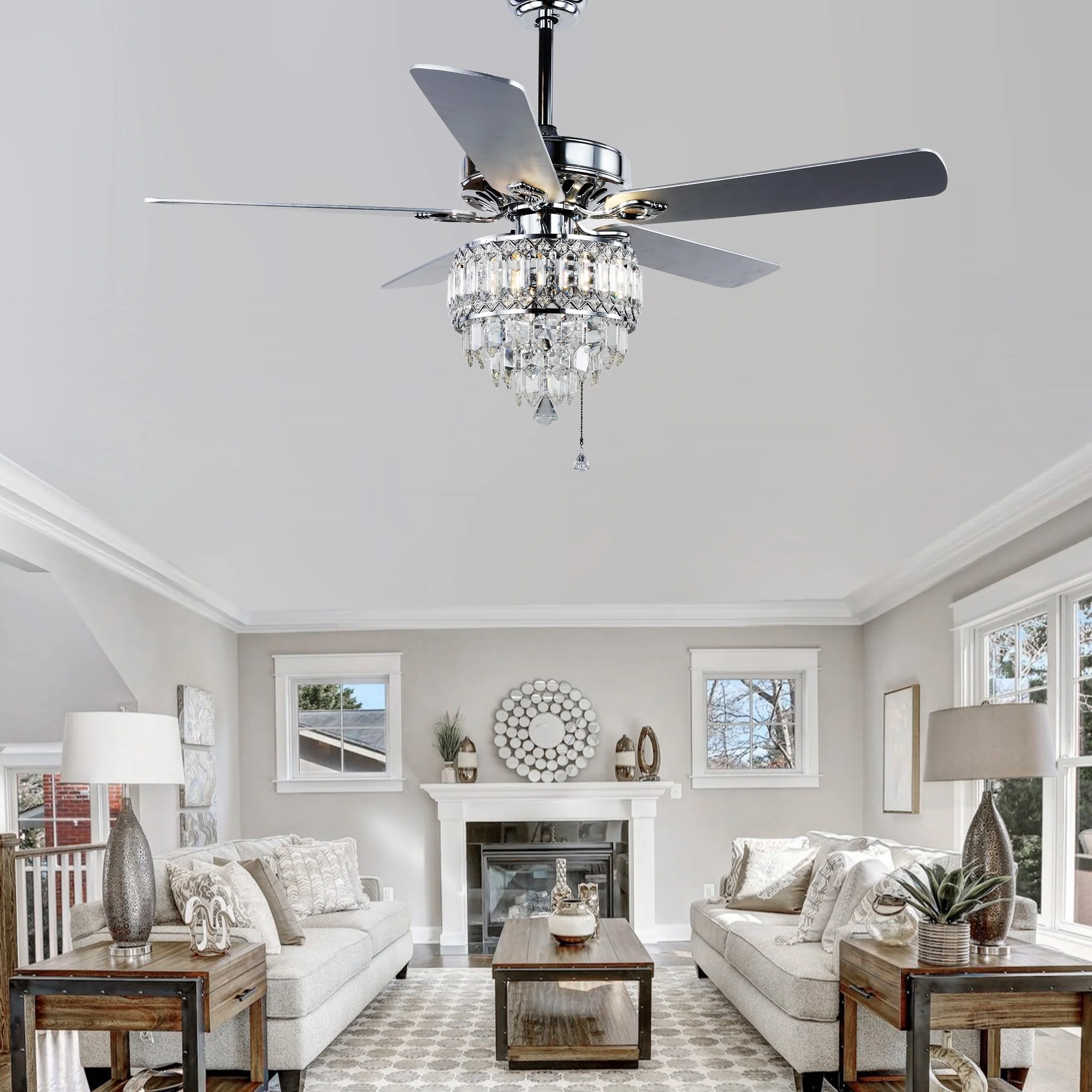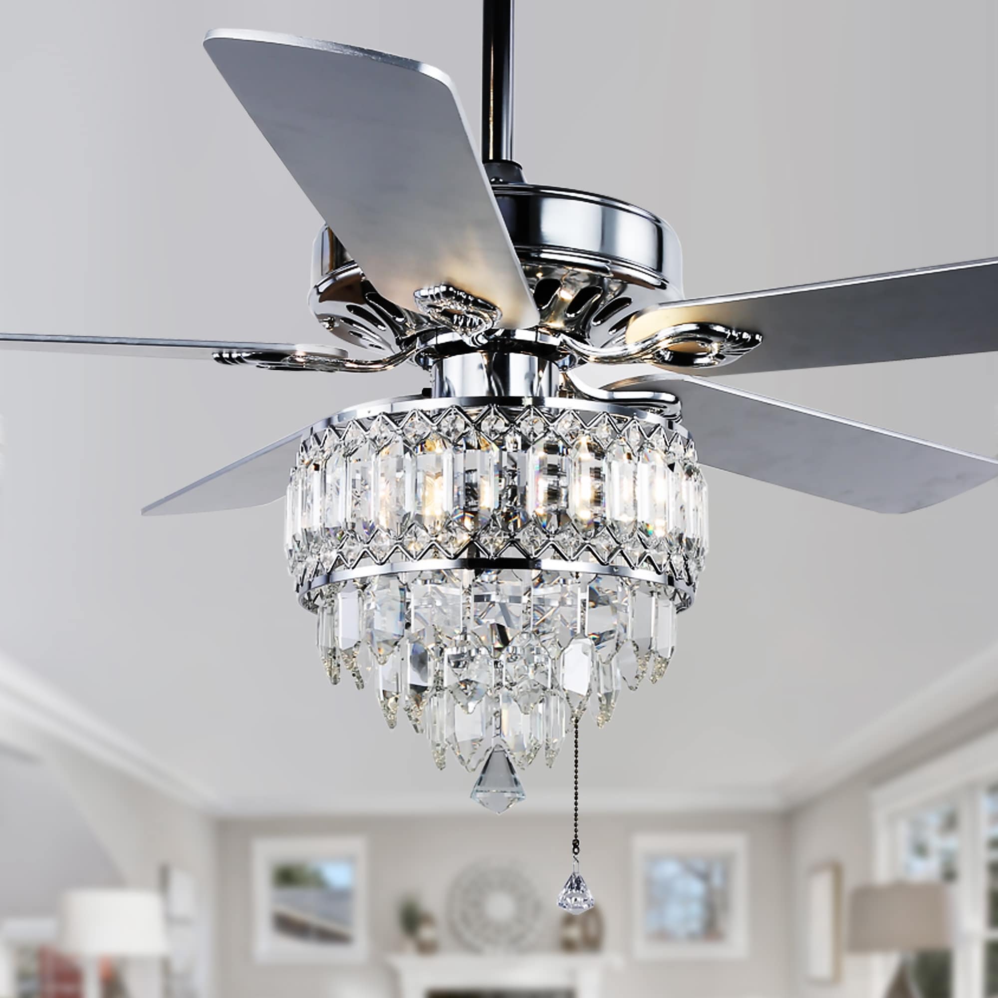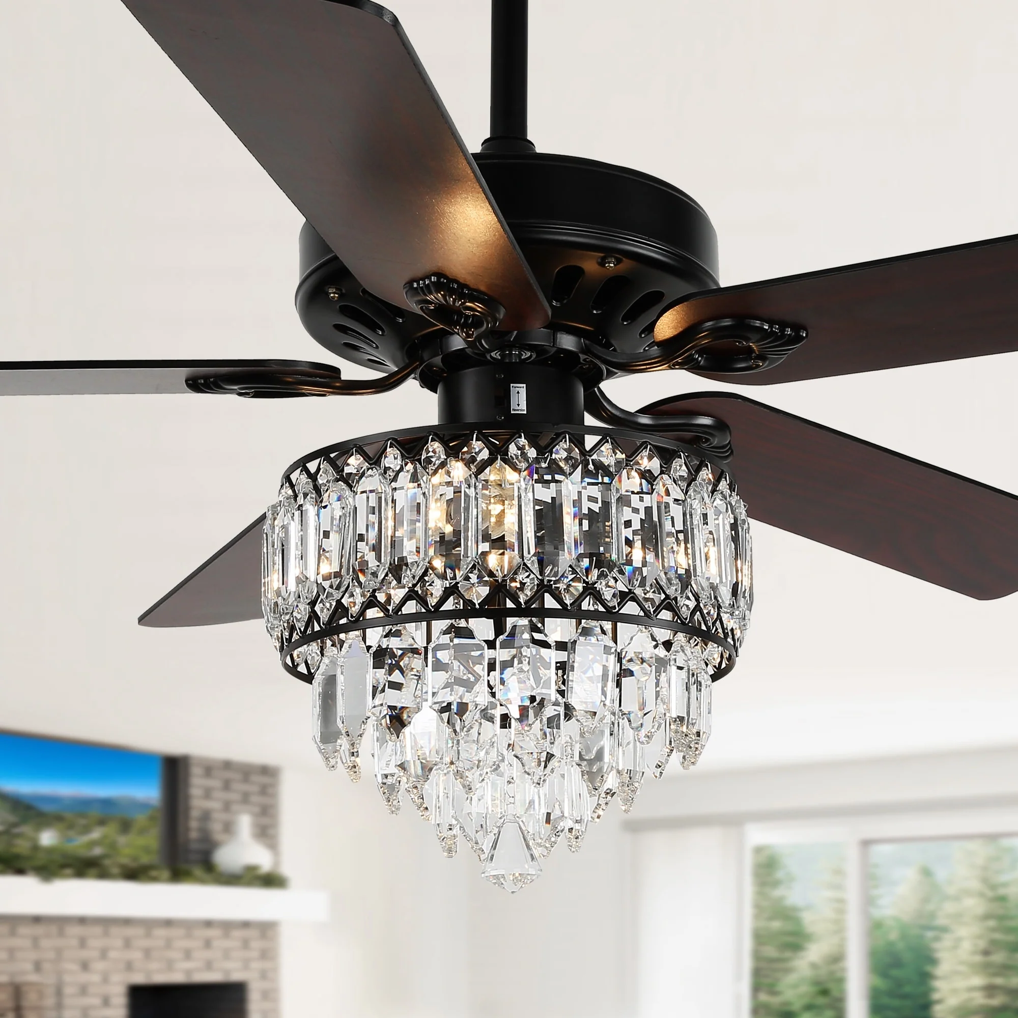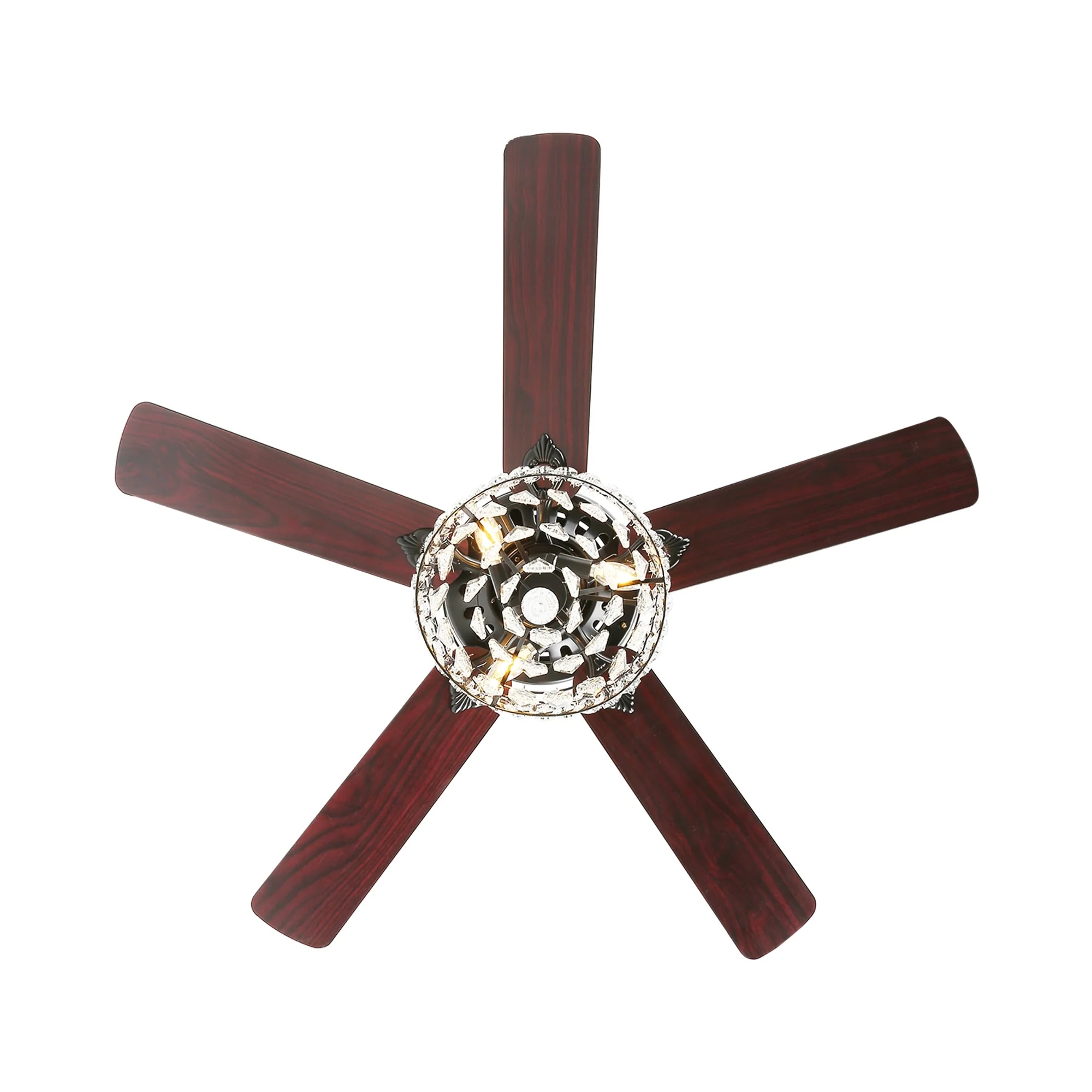 Oaks Aura 52in. Glam Crystal Classic Traditional Reversible Ceiling Fan With Light, 5 Blades Remote Control Fandelier