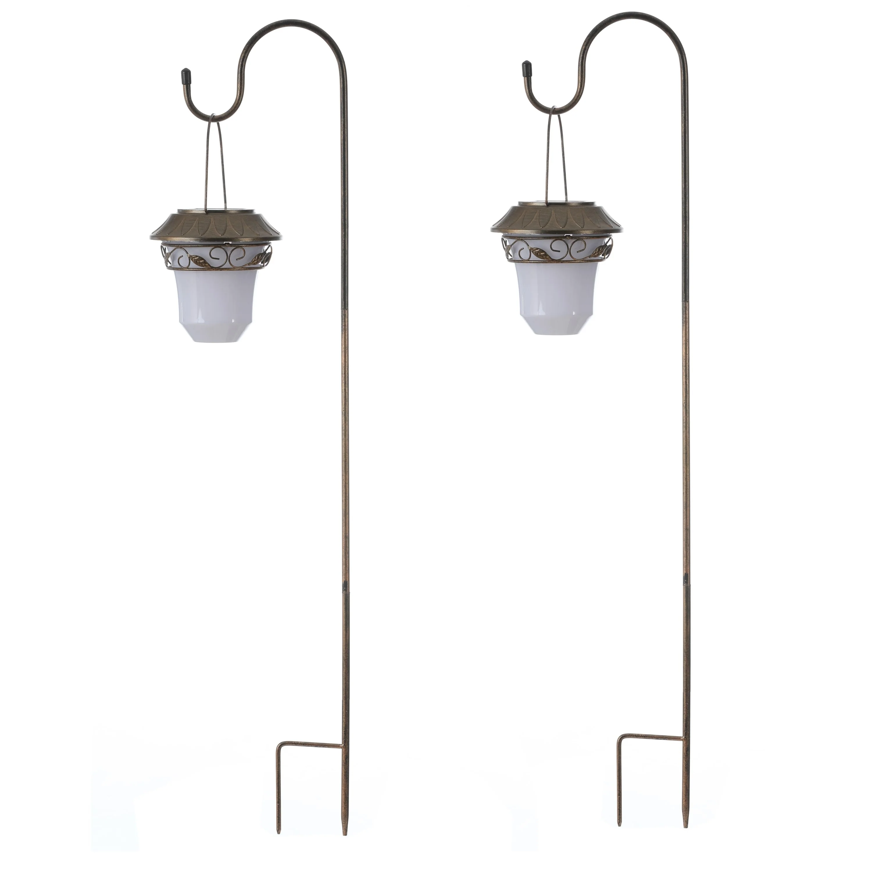 Leaf Solar Plastic Lanterns with Metal Shepherd Hooks (Set of 2)