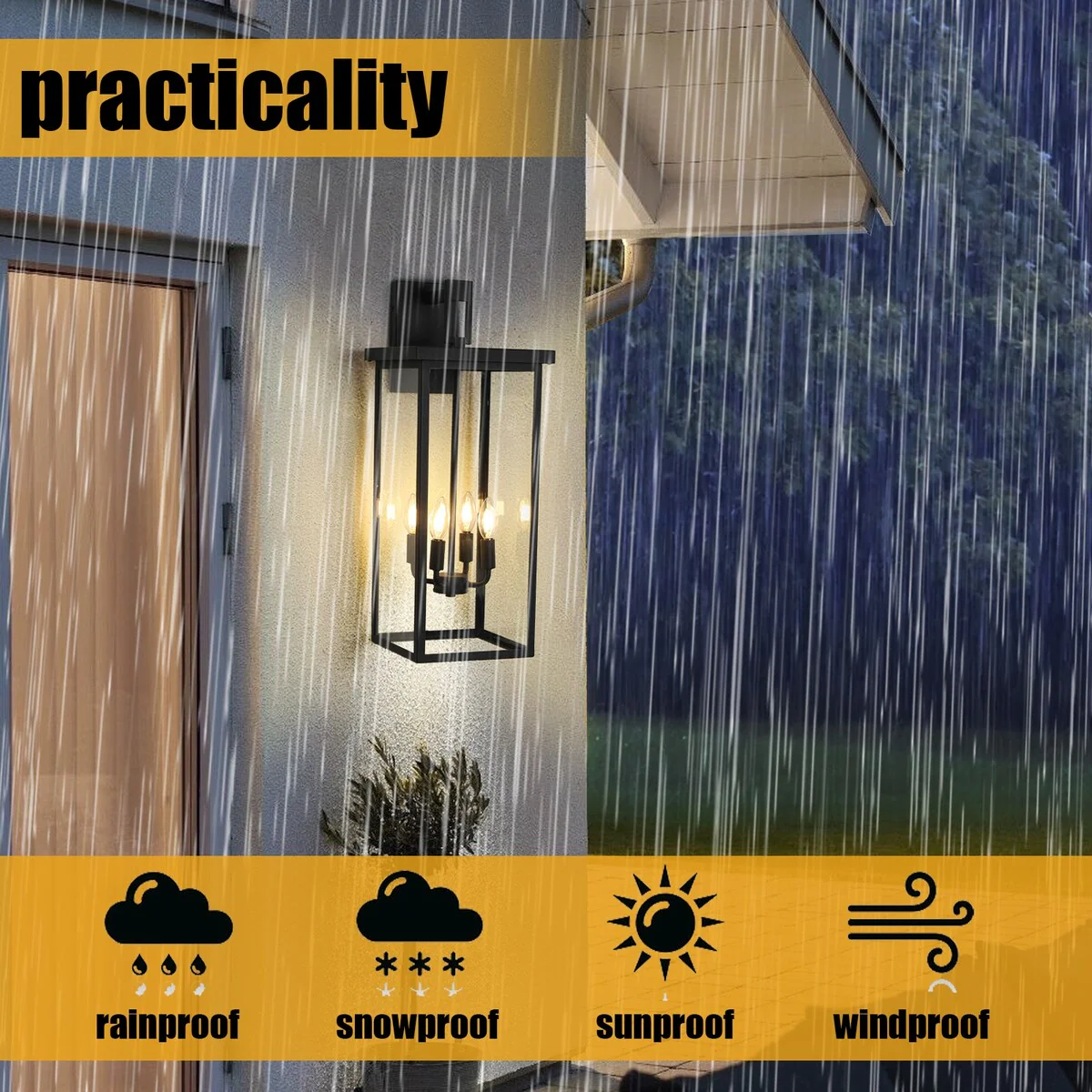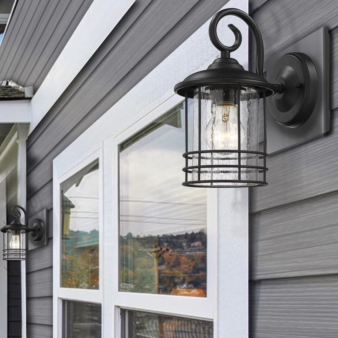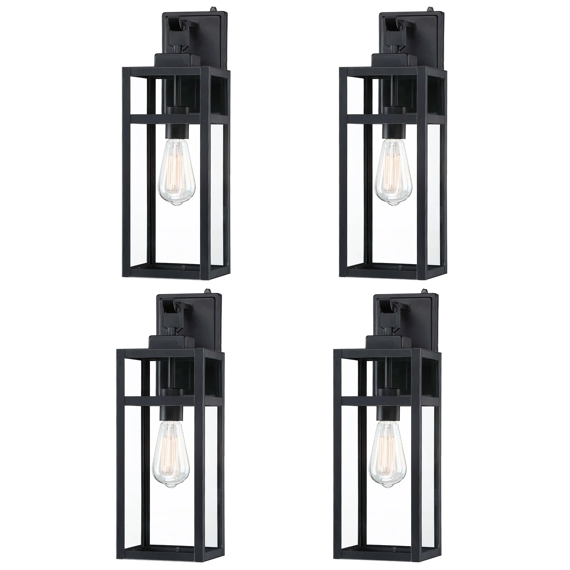 1ps Outdoor Wall Lanterns with Black Metal Frame and Clear Glass, 4 E12 Bulb Socket, Weatherproof Wall Sconces(No Bulbs)