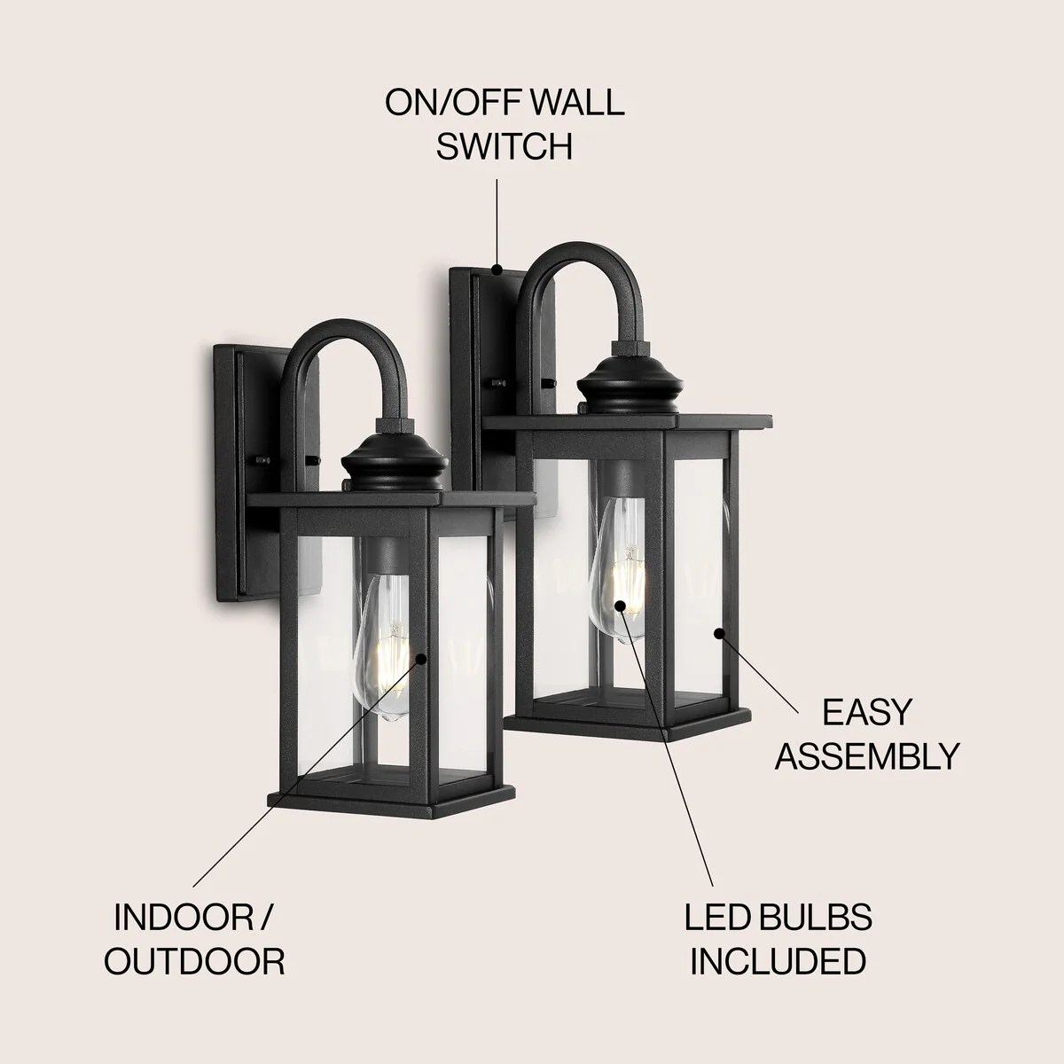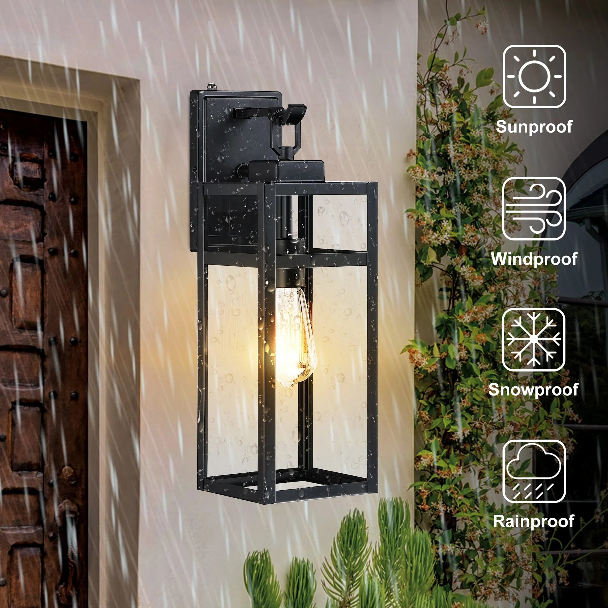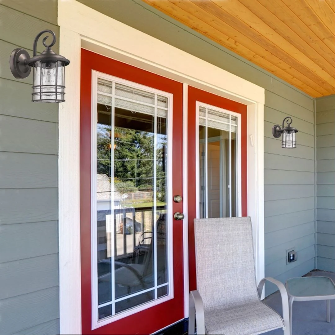 1ps Outdoor Wall Lanterns with Black Metal Frame and Clear Glass, 4 E12 Bulb Socket, Weatherproof Wall Sconces(No Bulbs)