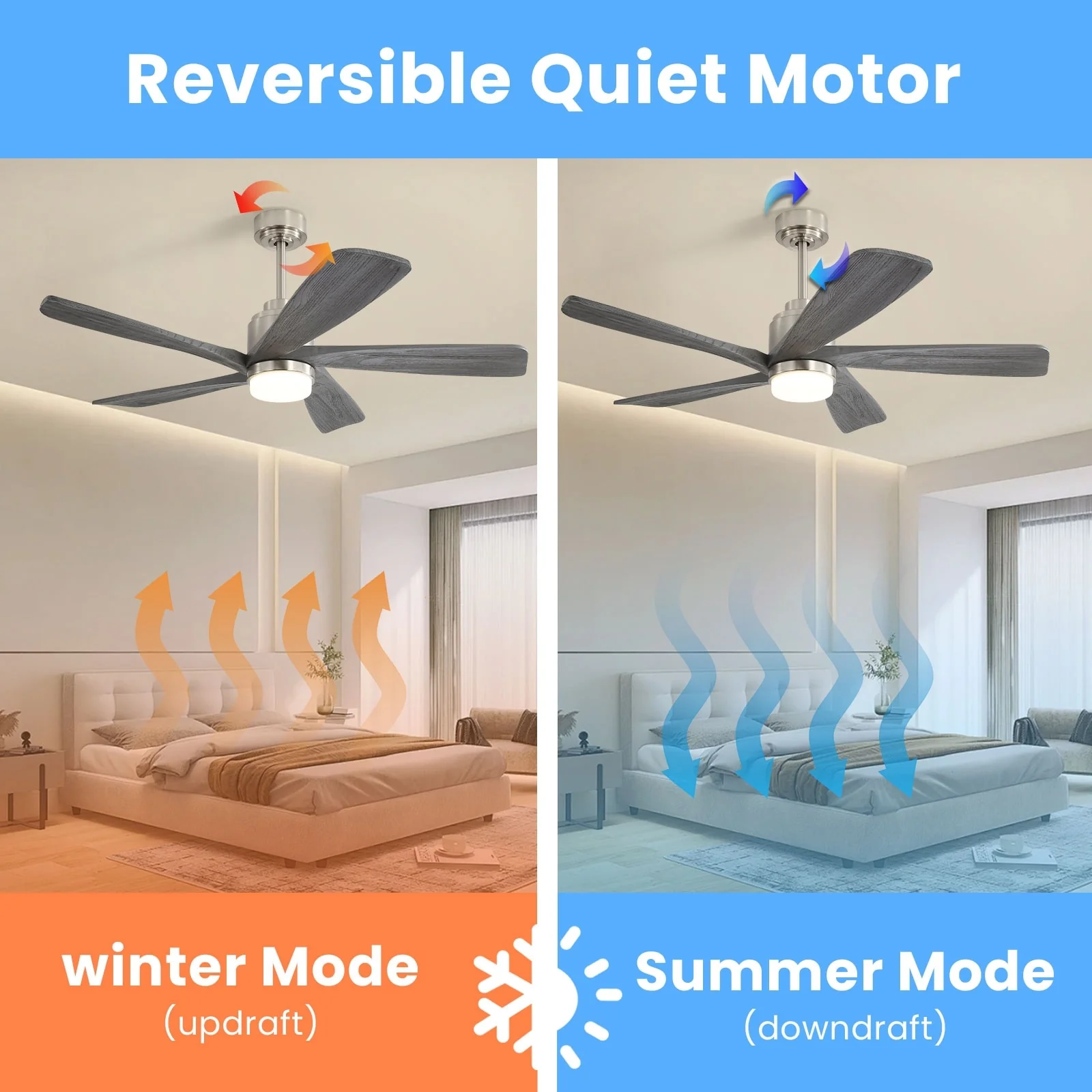 52 Inch Reversible Ceiling Fan Light, 6 Speed Wood Ceiling Fan, Black+Brown