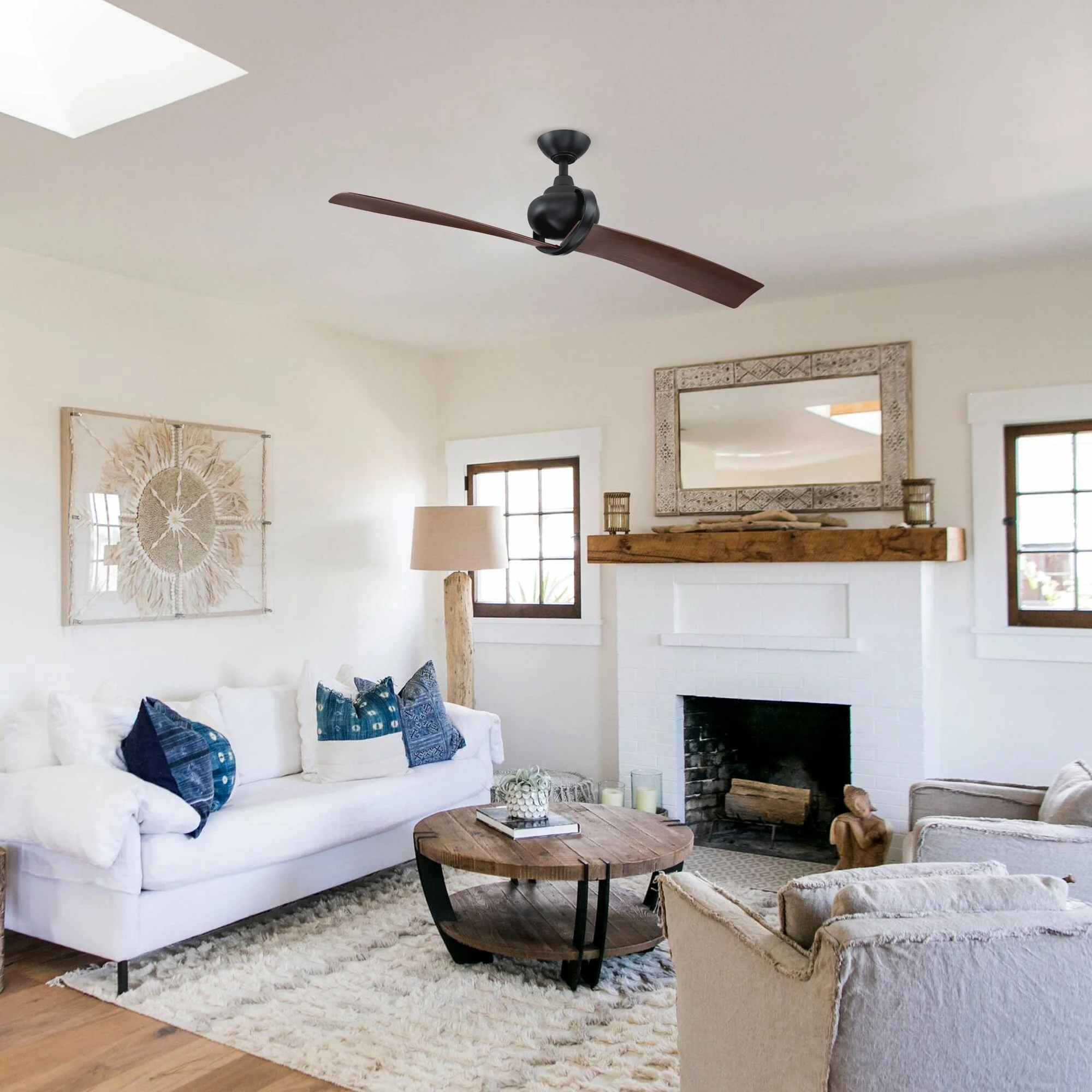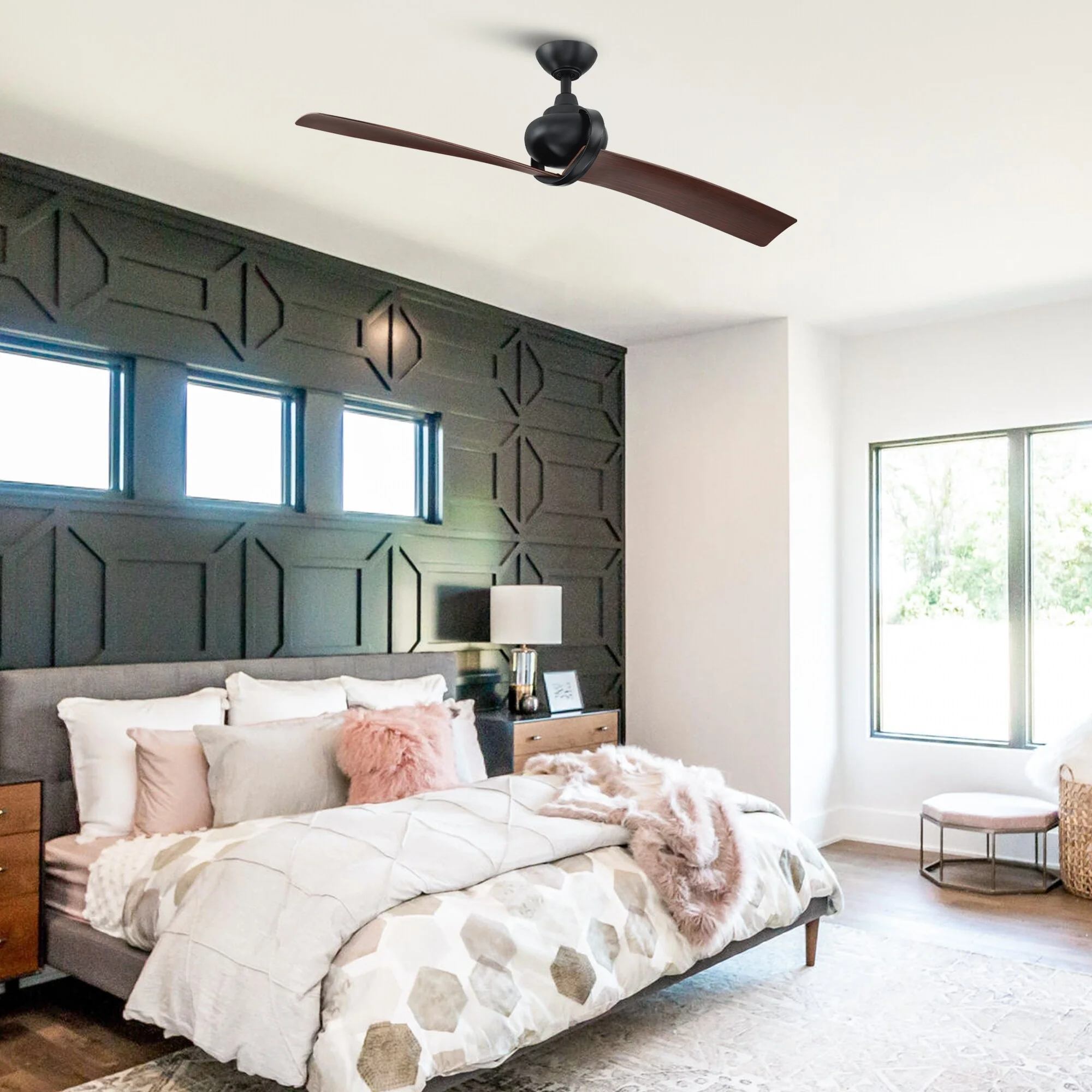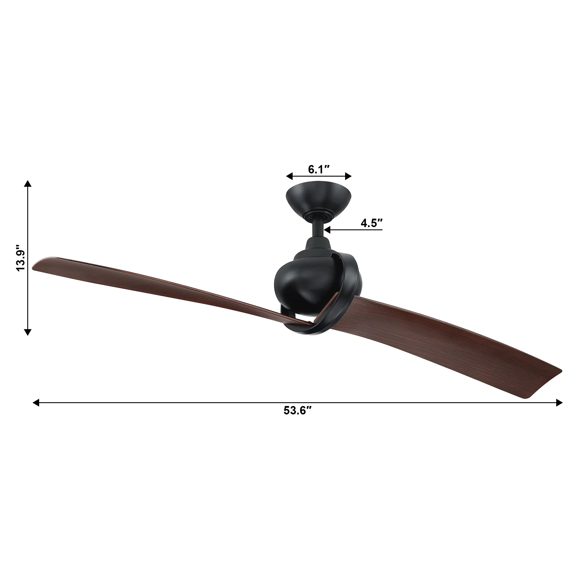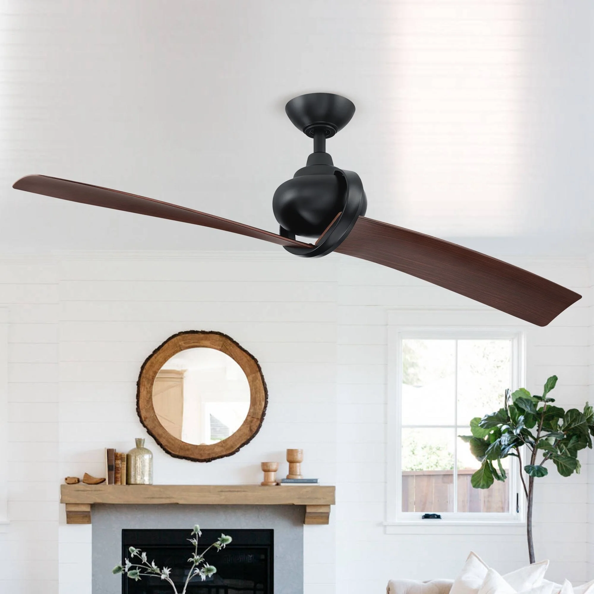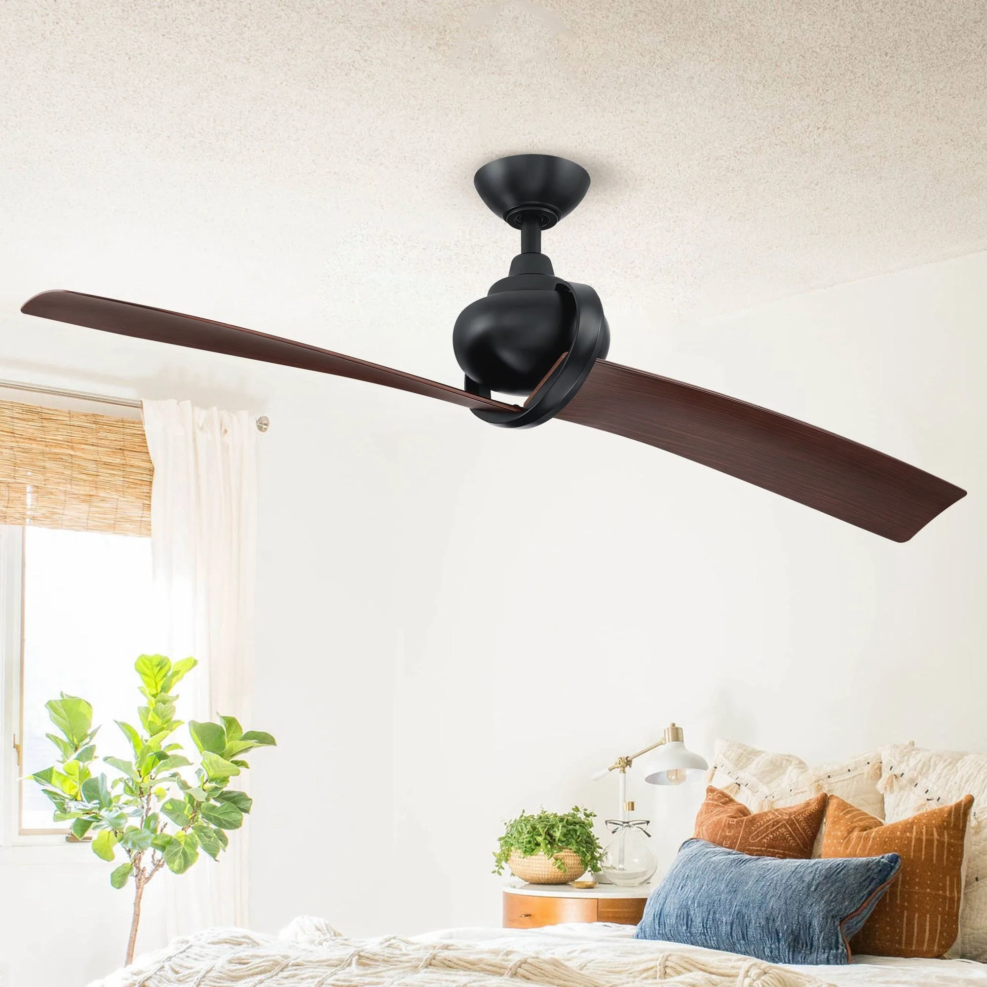 54" Matte Black 2-Blade Outdoor Ceiling Fan with Remote and DC Motor