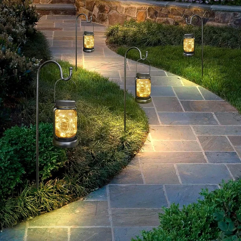 4 Pack Solar Hanging Lantern with Stakes