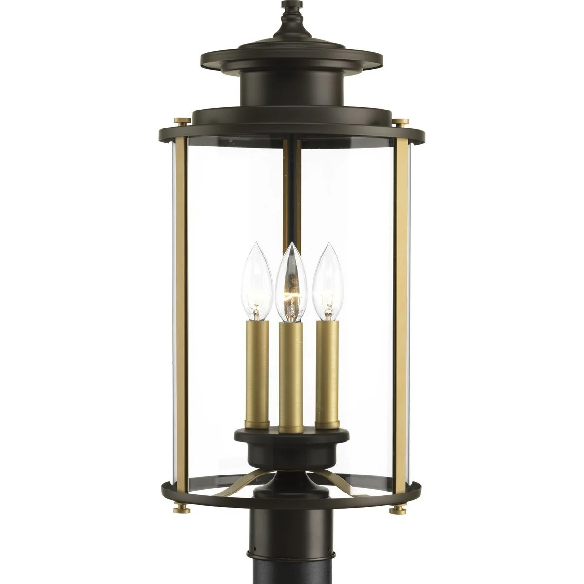 Squire 3-Light Antique Bronze Traditional Outdoor Post Lantern Light - 20.120" x 12.620" x 12.620"