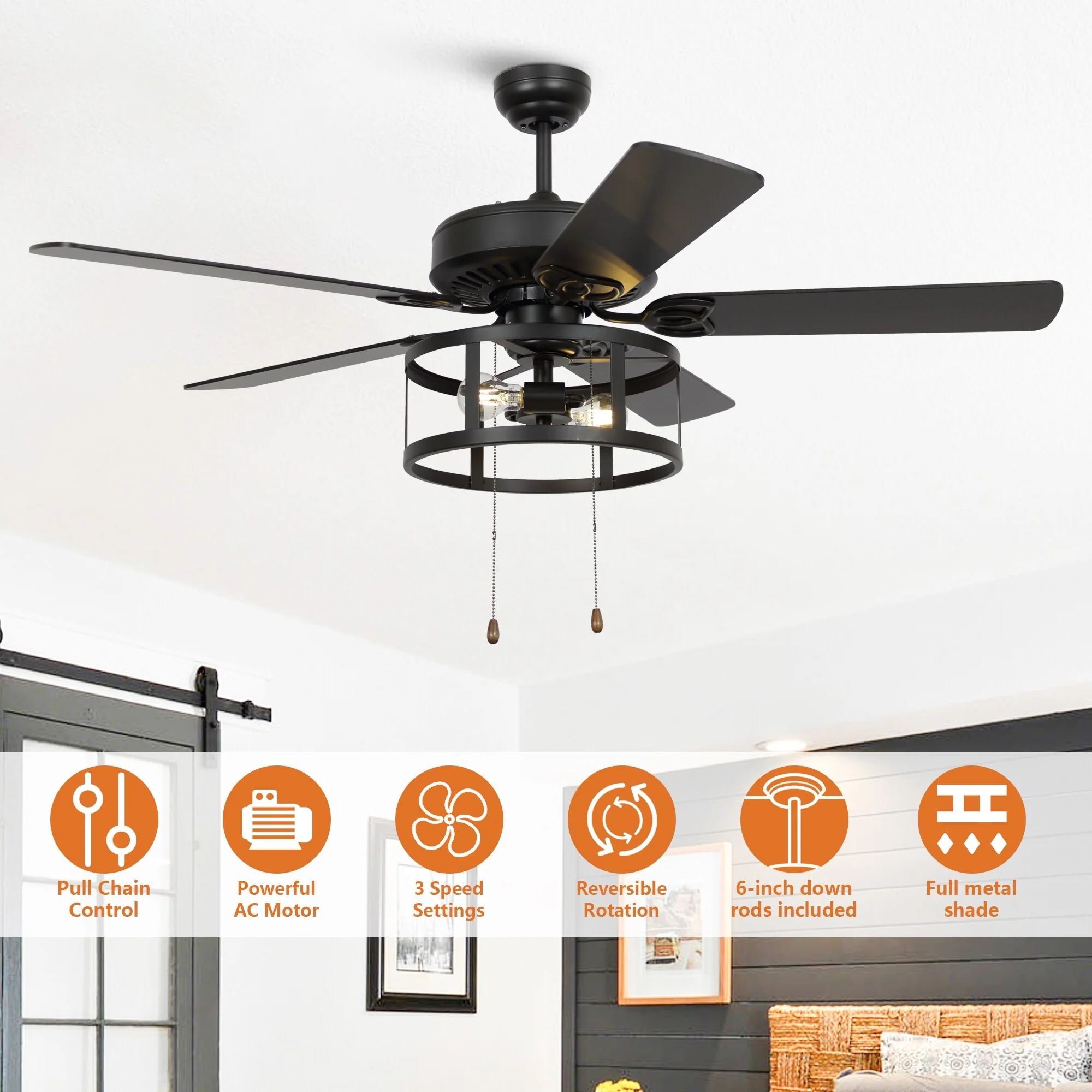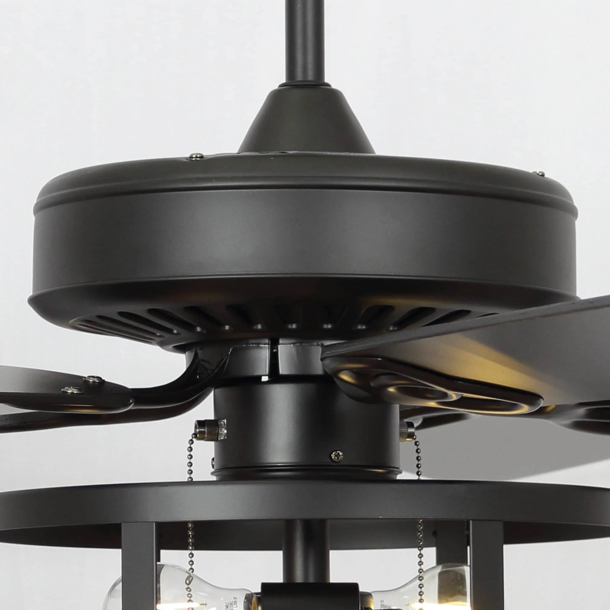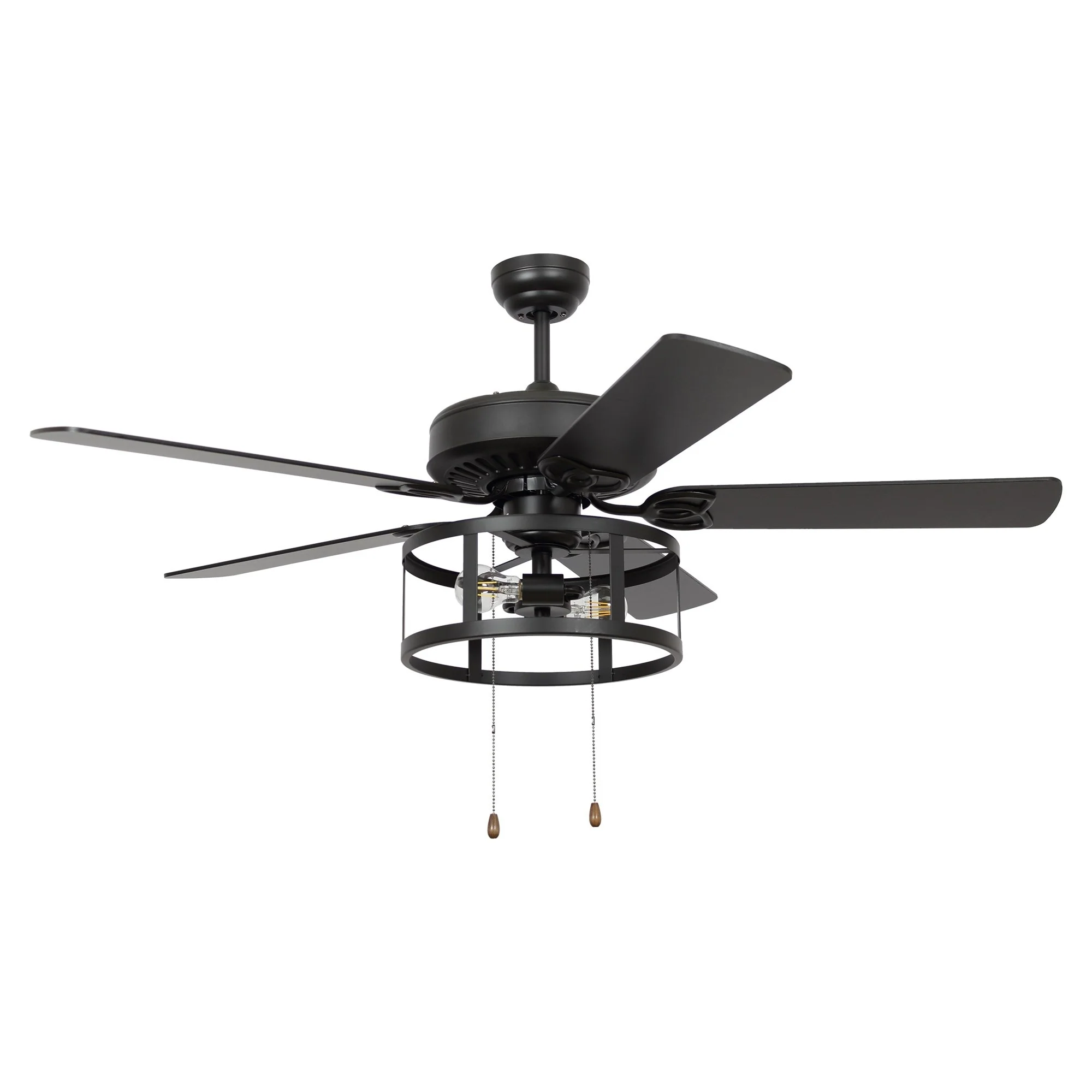 52" Industrial Black Wood 5 Blades Indoor Ceiling Fan with Pull Chain
