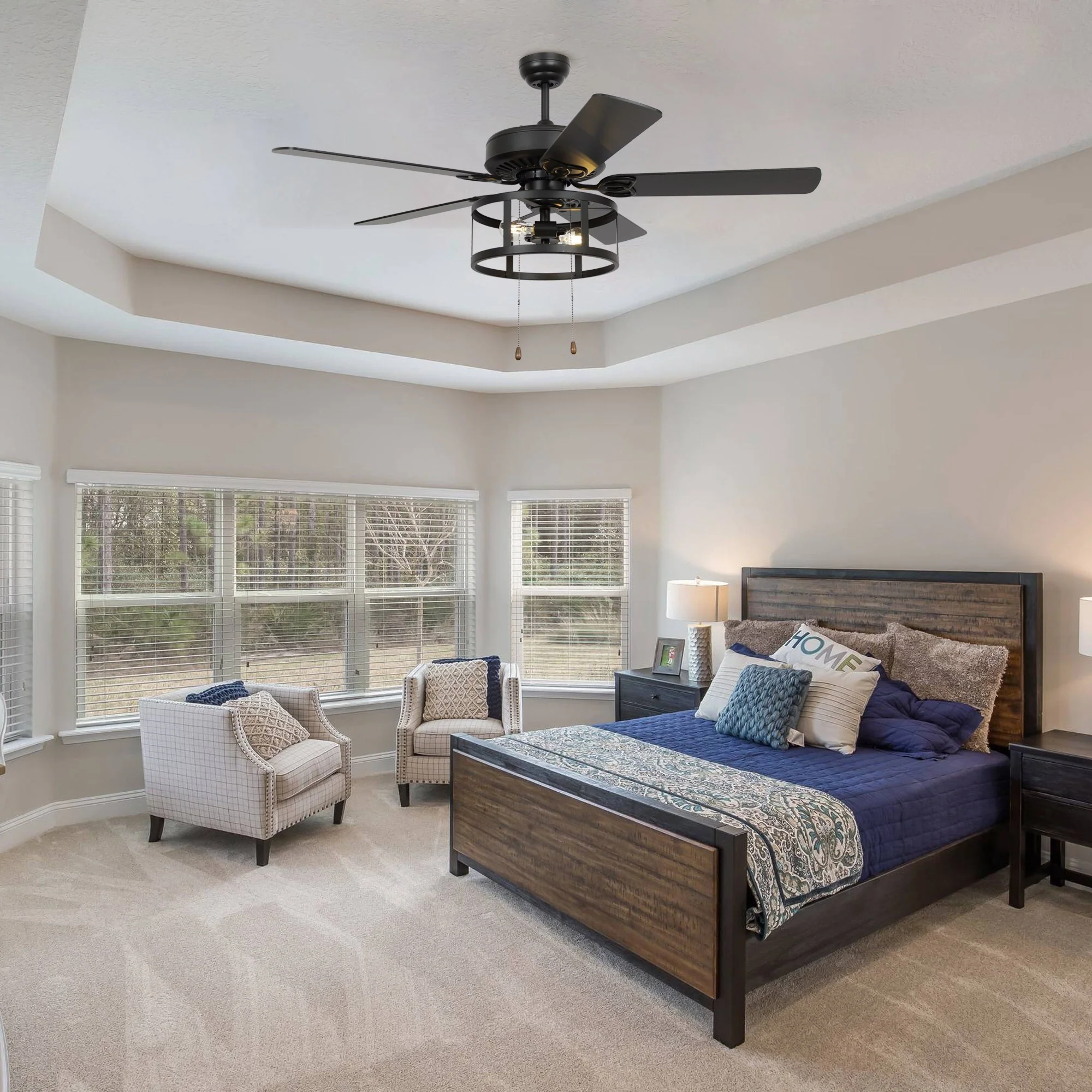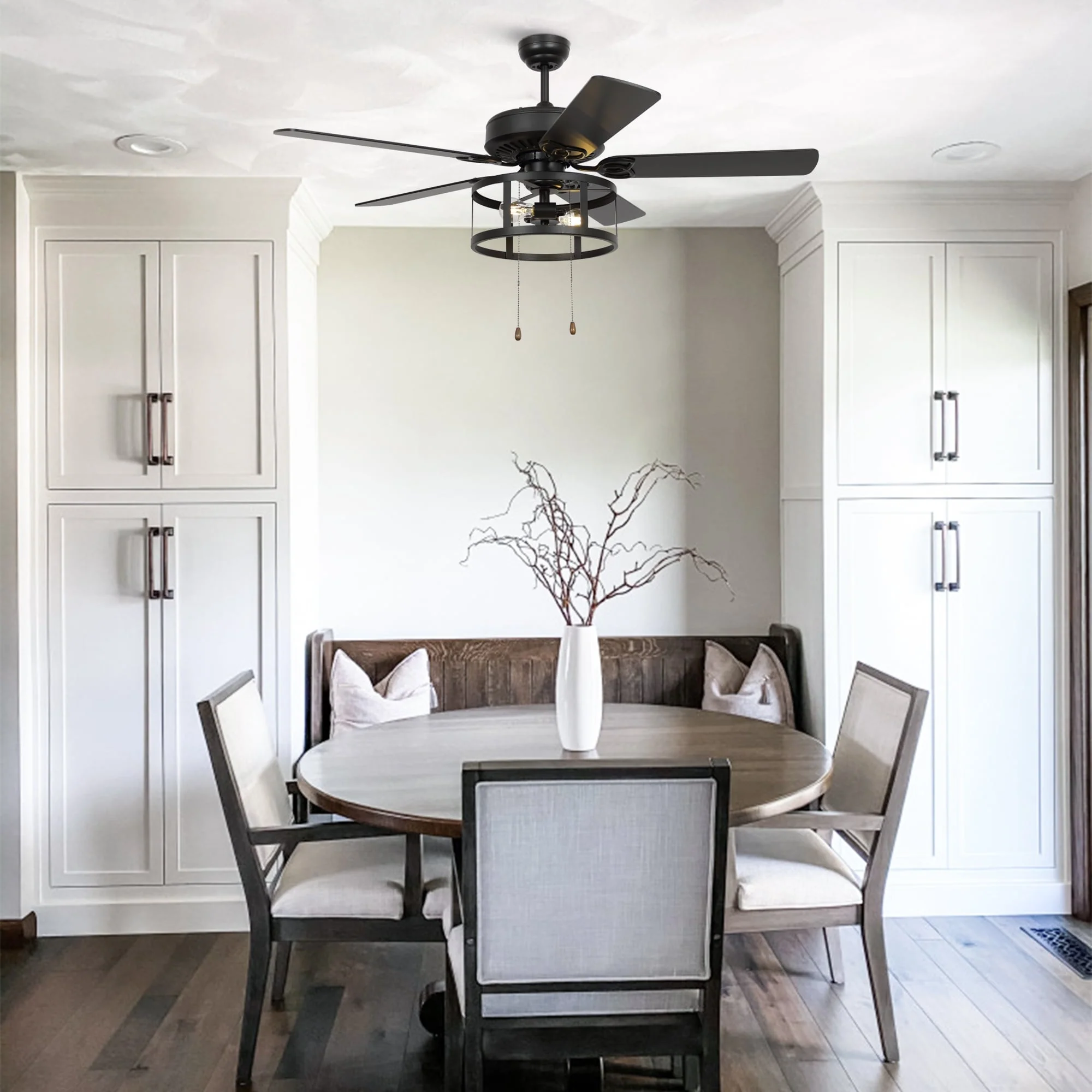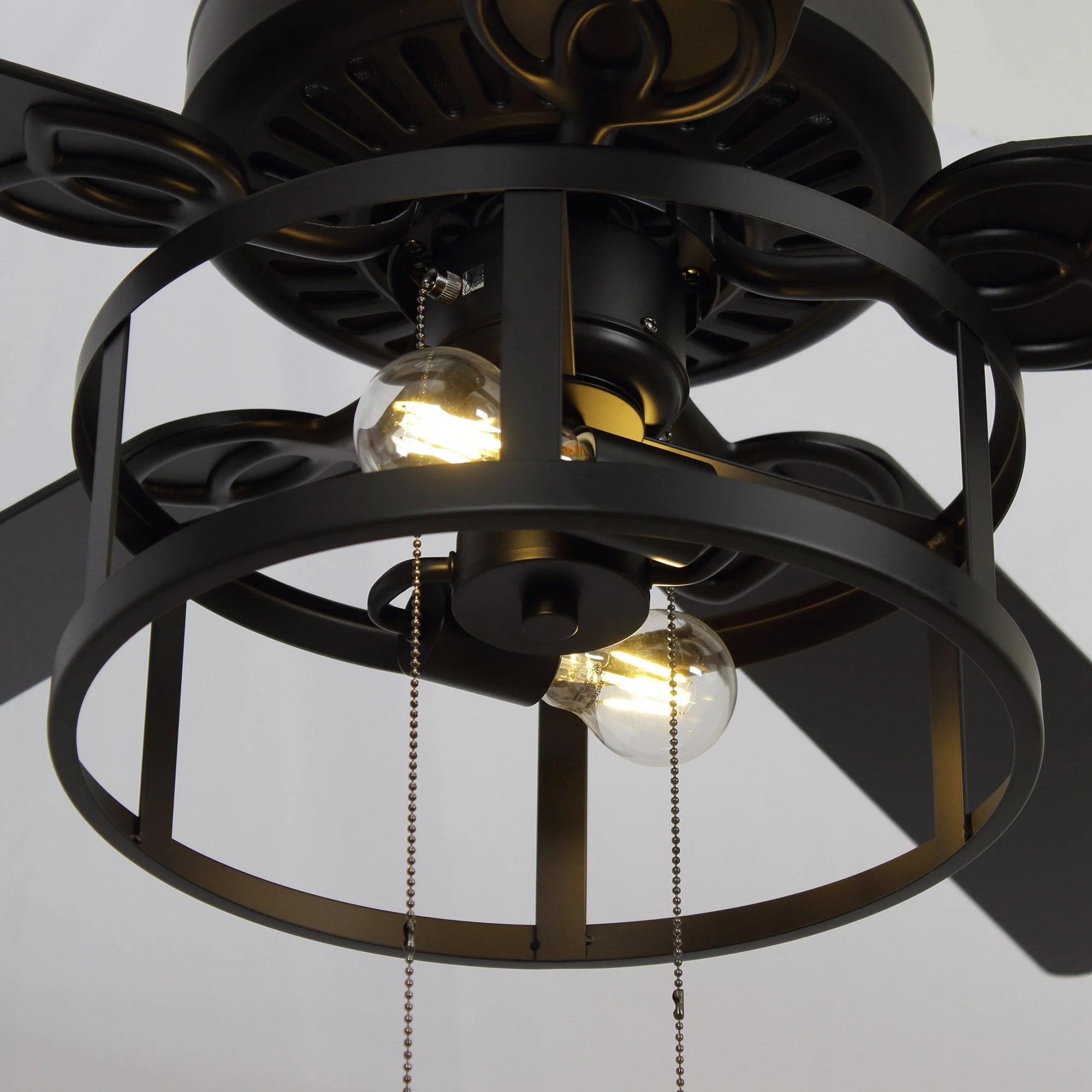 52" Industrial Black Wood 5 Blades Indoor Ceiling Fan with Pull Chain