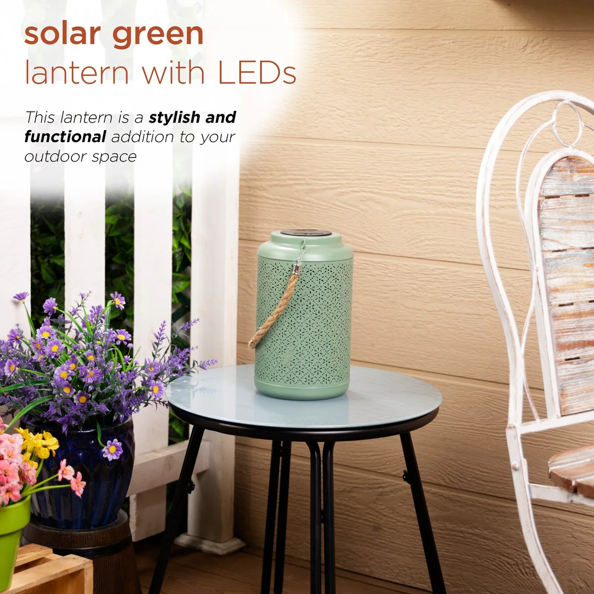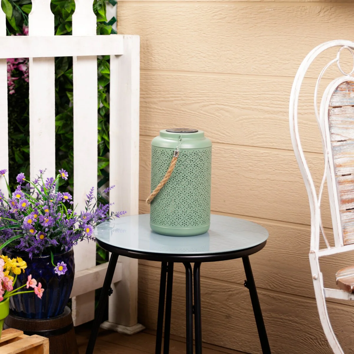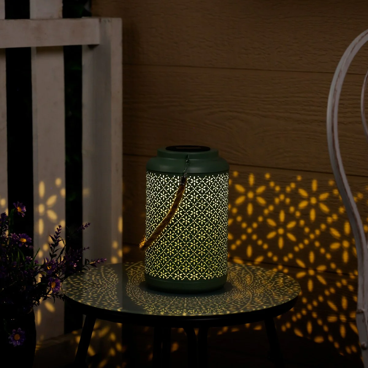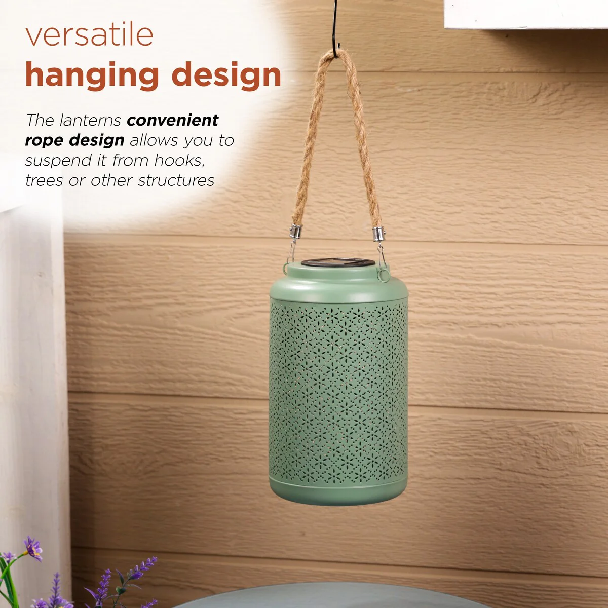 Solar Hanging Decorative Green Lantern with LED Lights