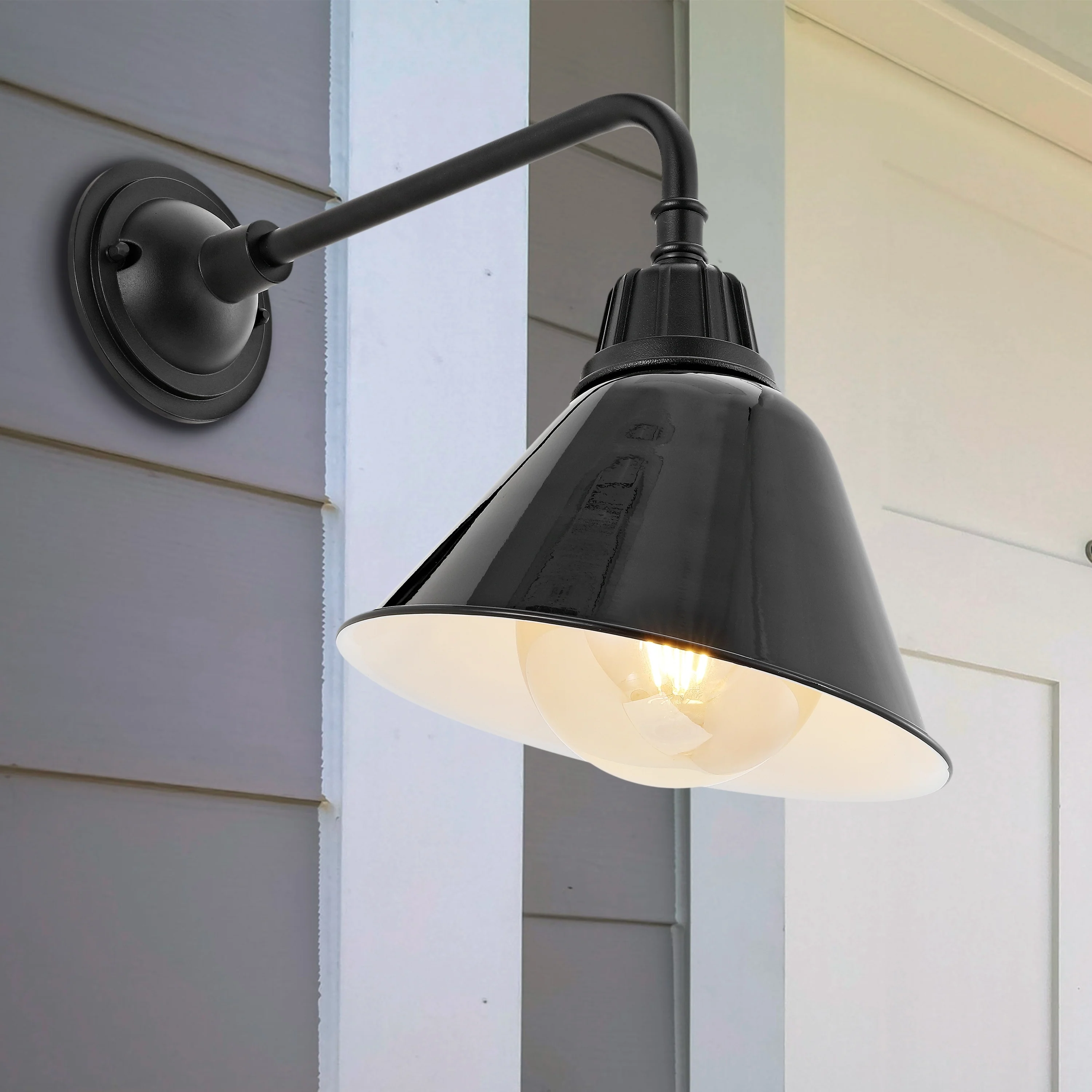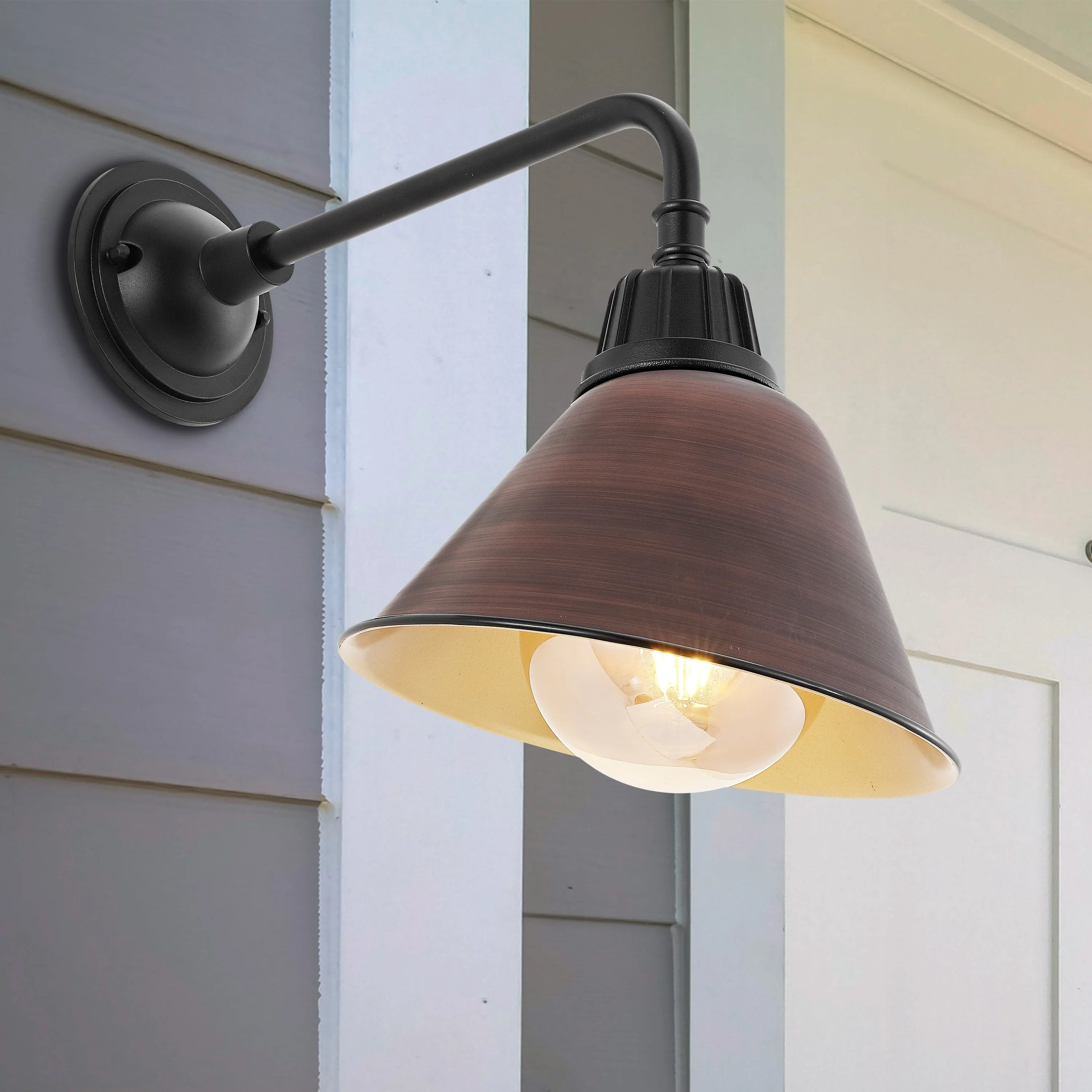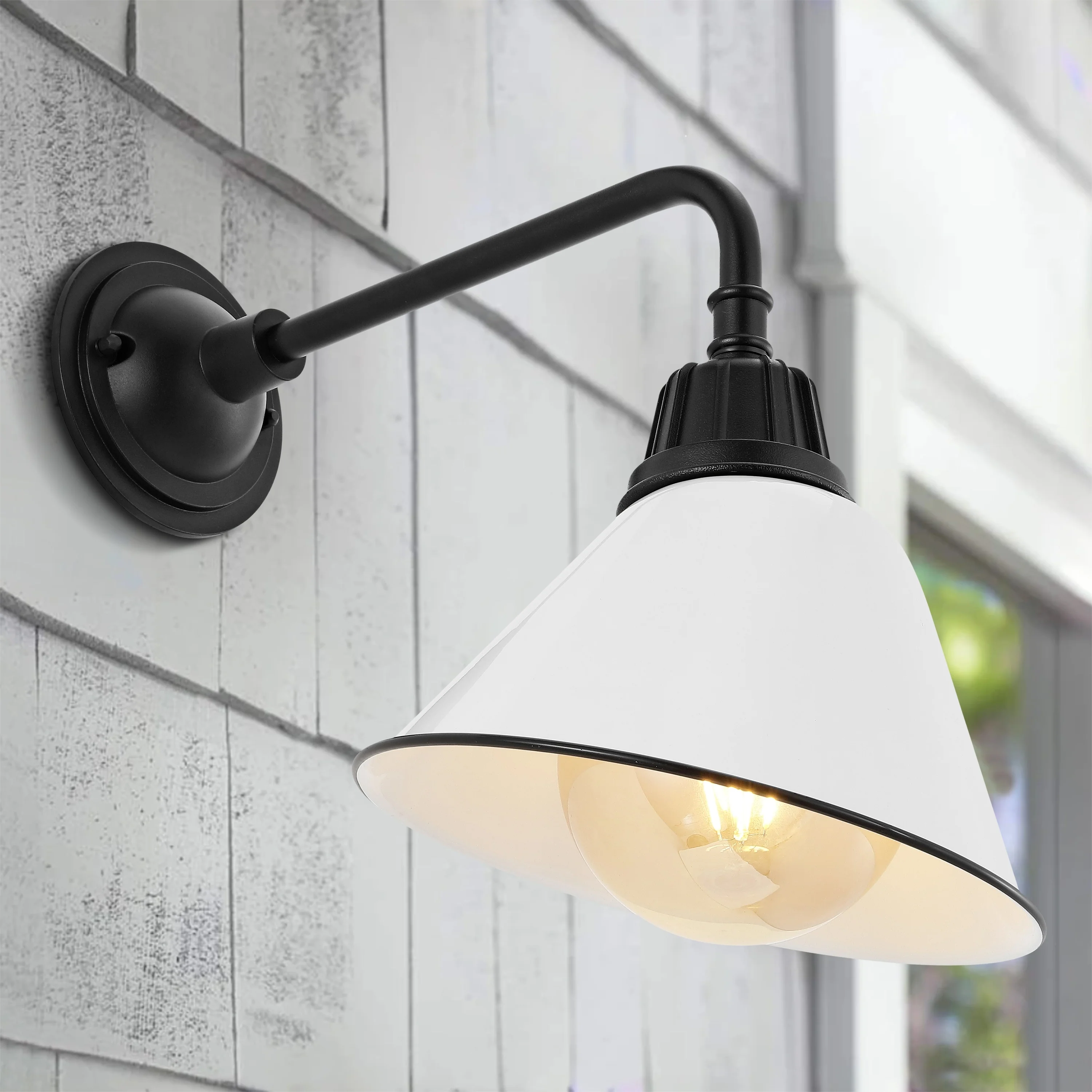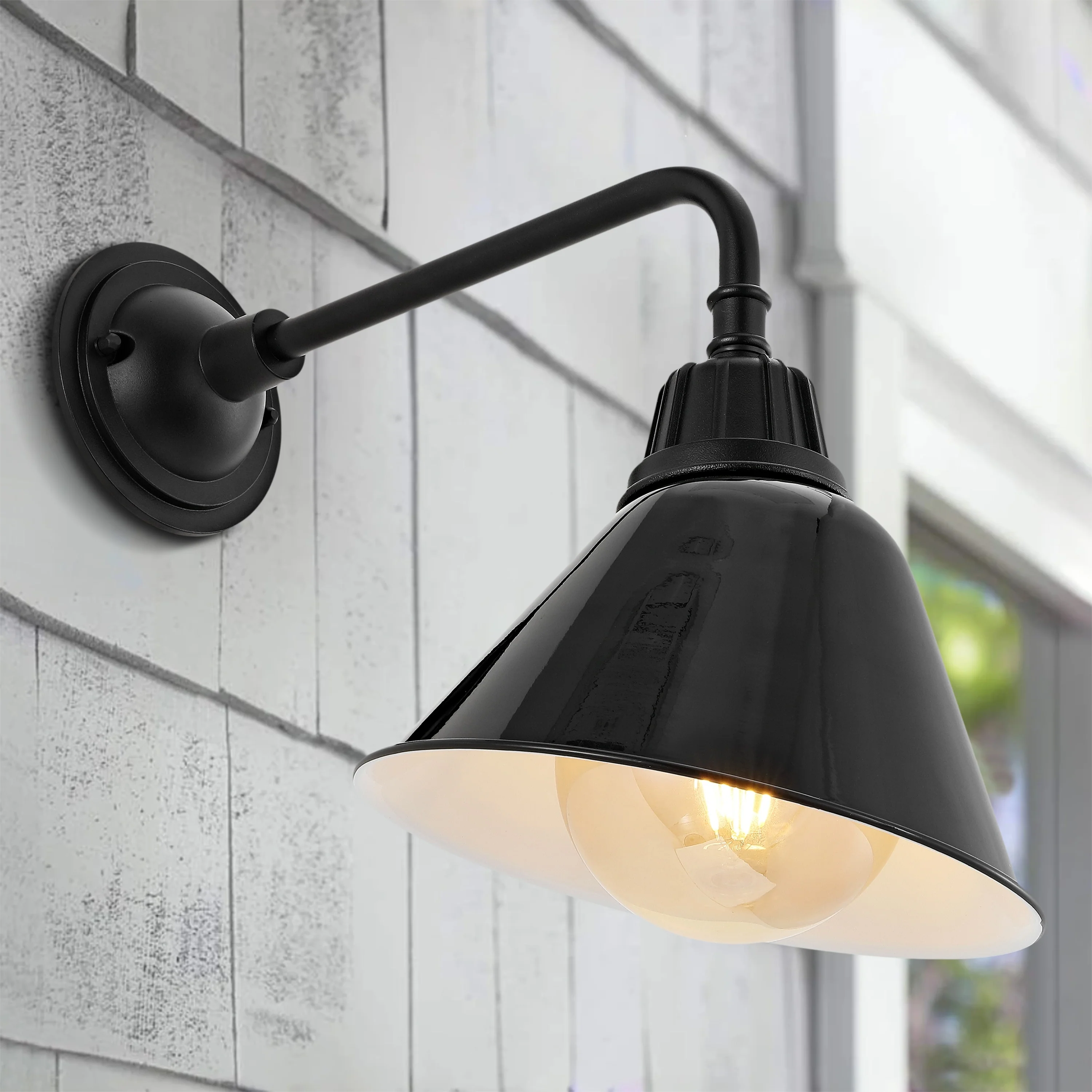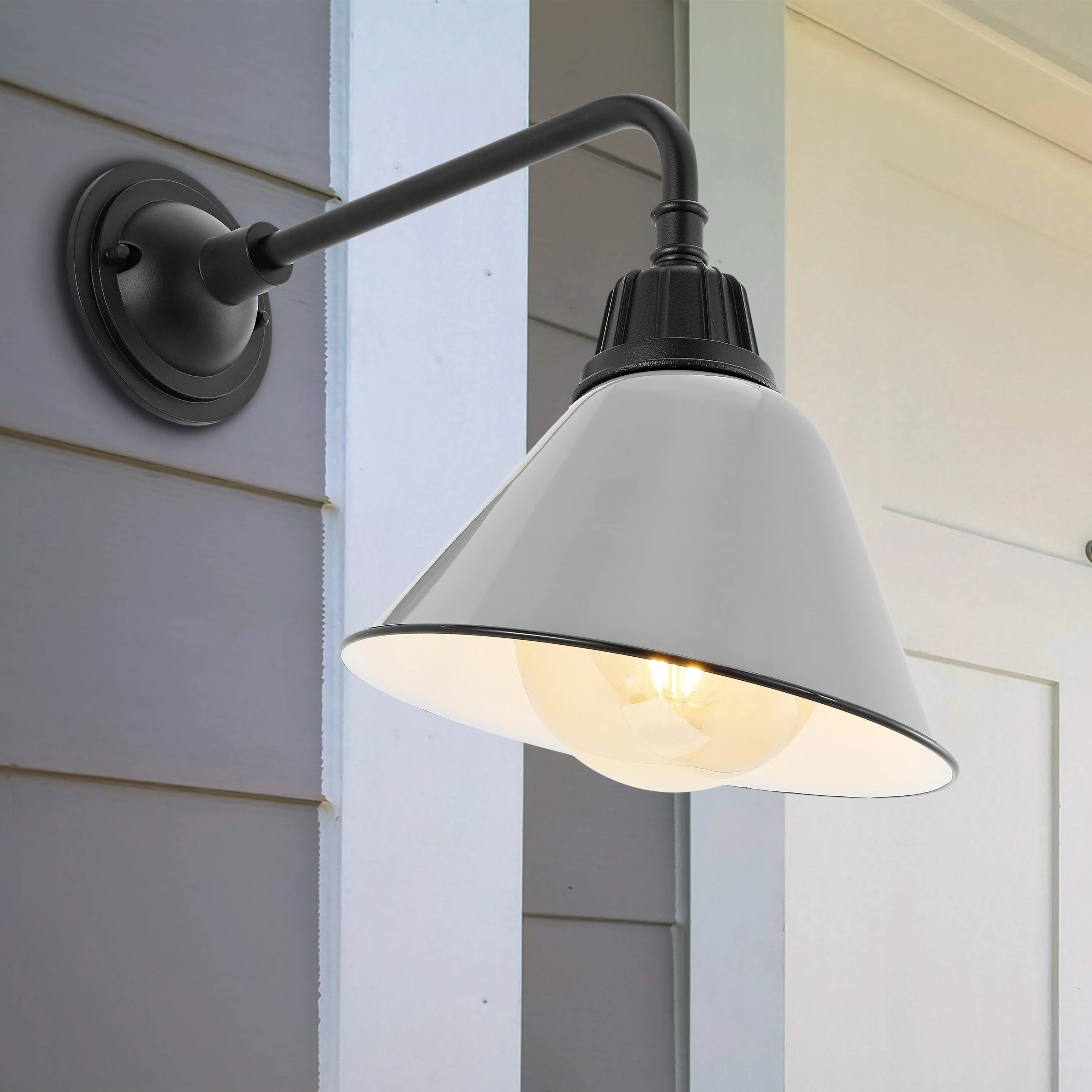 Aurora 9.63" 1-Light Farmhouse Industrial Indoor/Outdoor Iron LED Gooseneck Arm Outdoor Sconce, by JONATHAN Y - 9.63