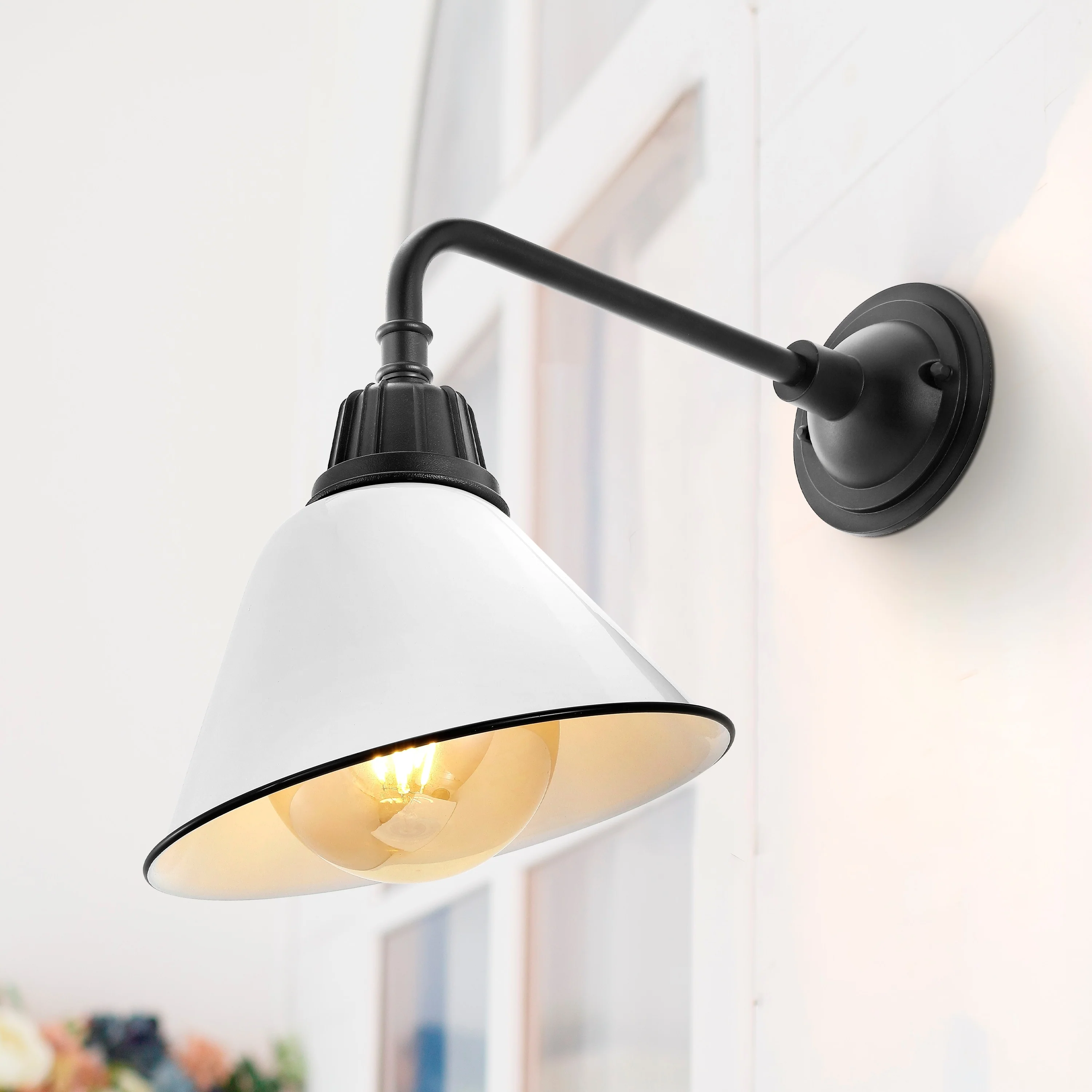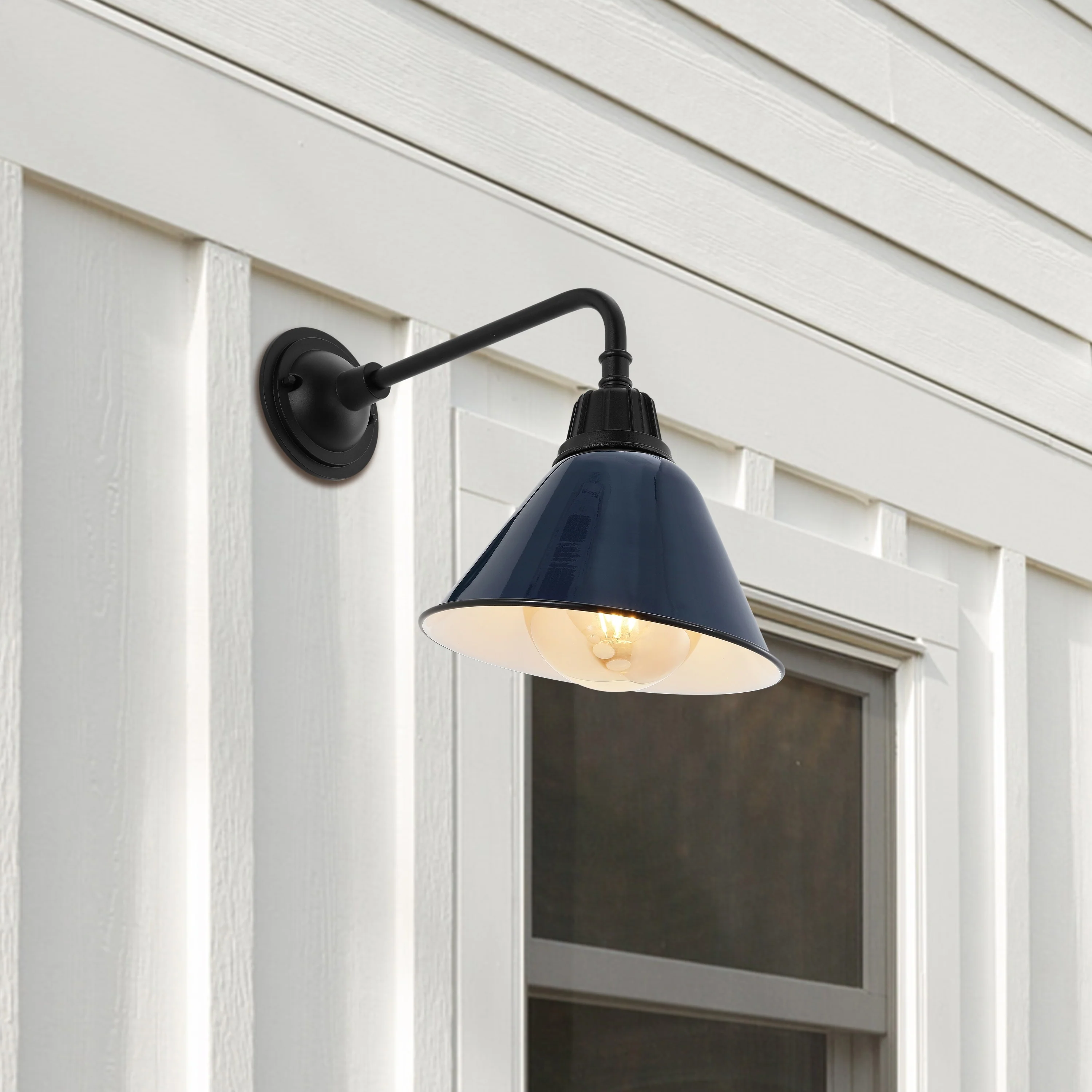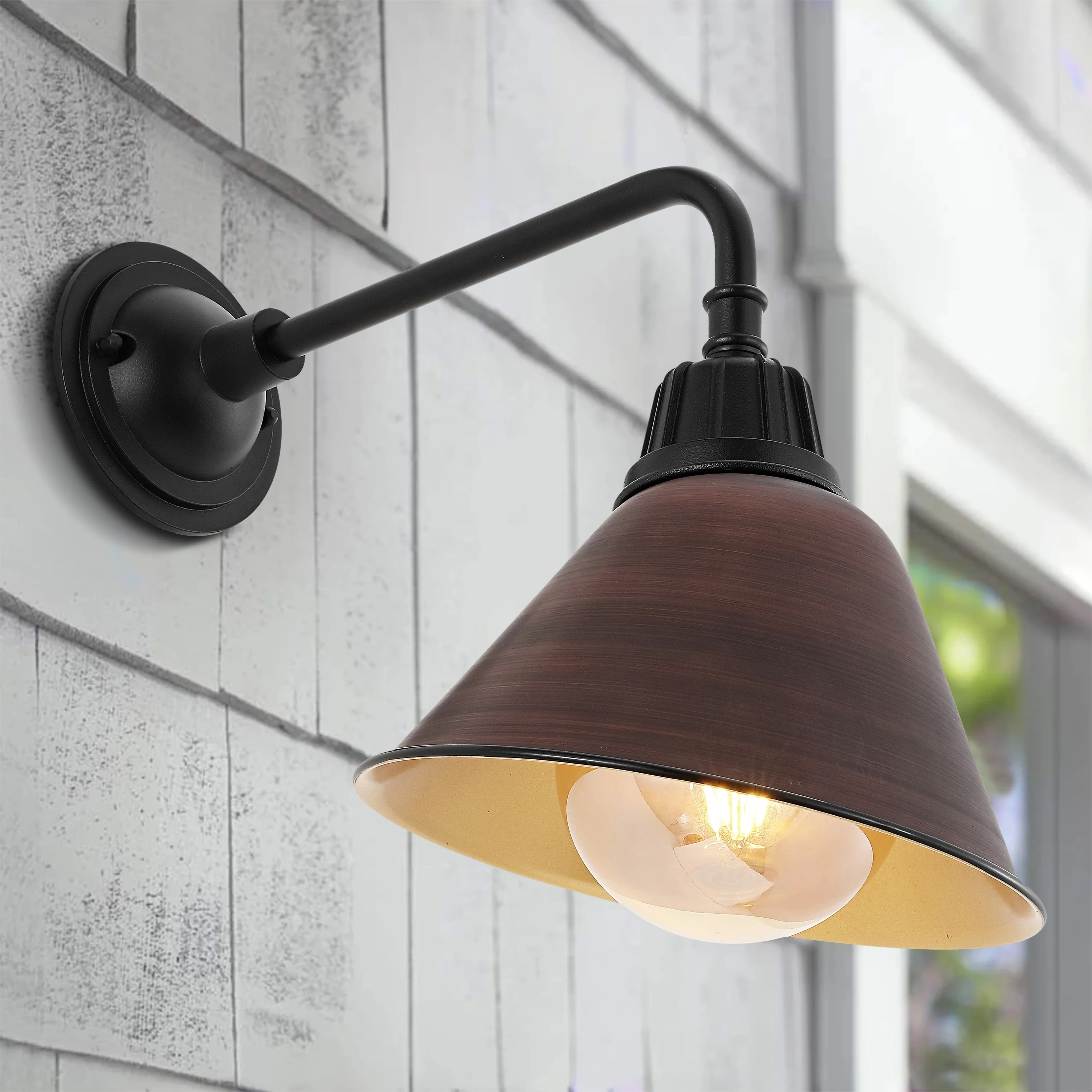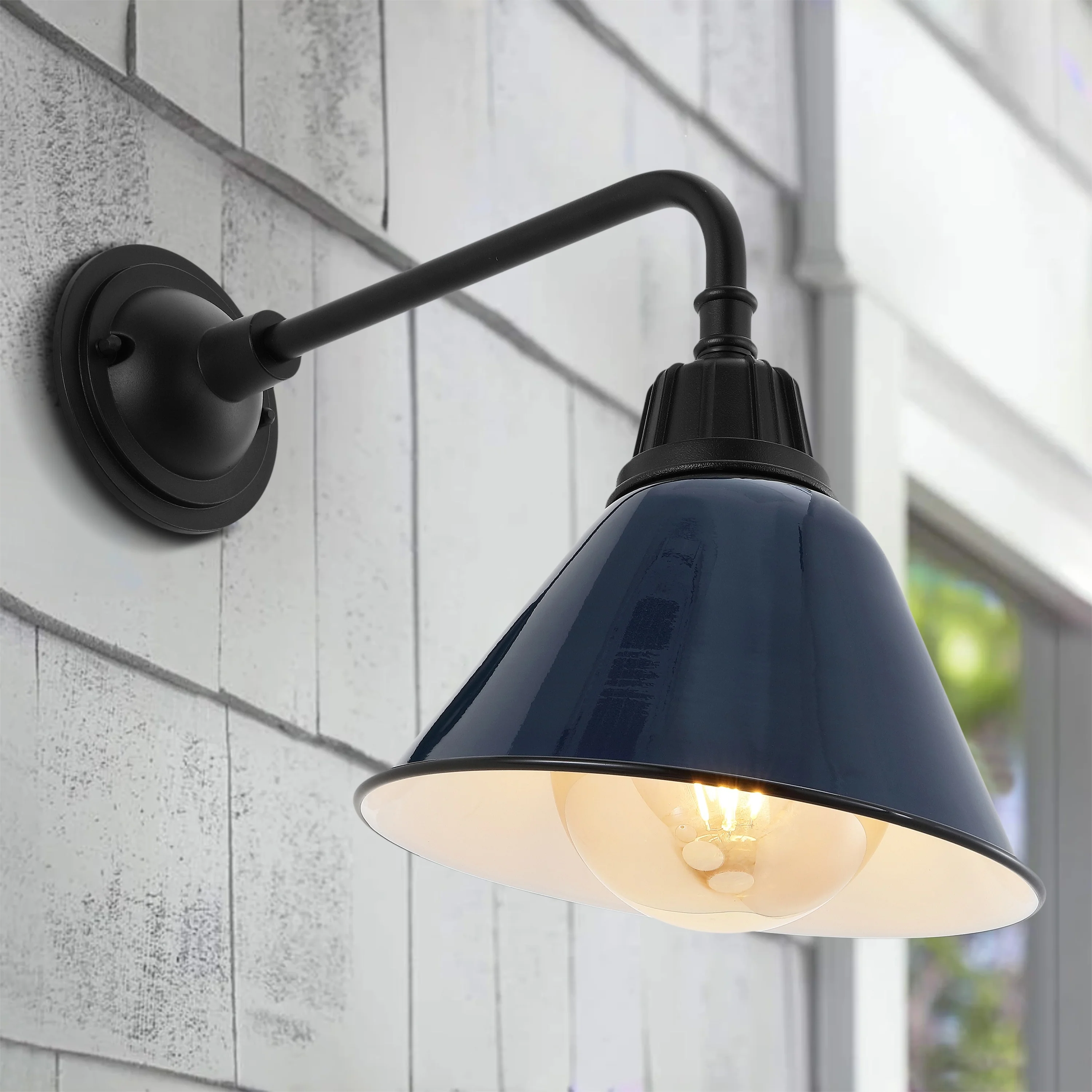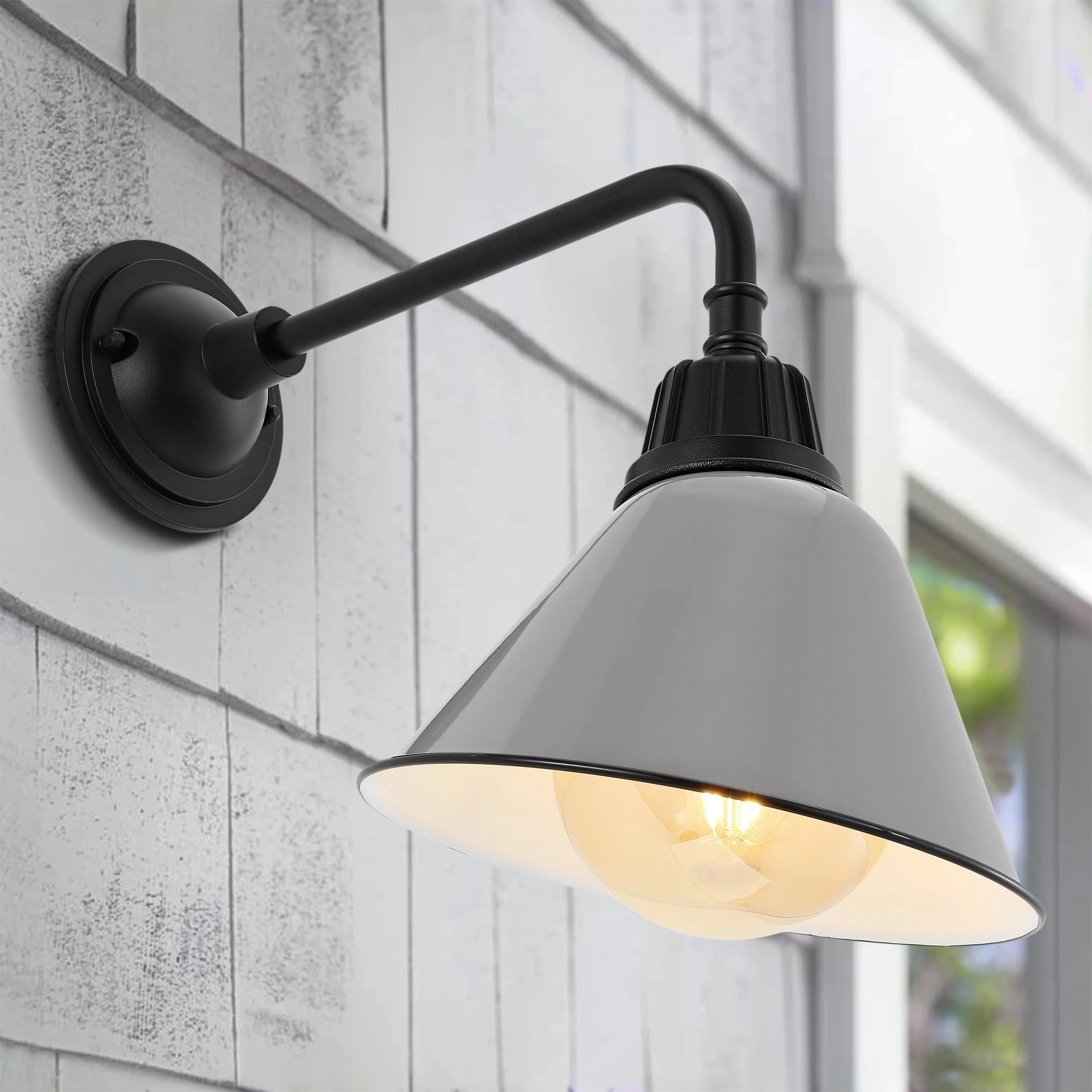 Aurora 9.63" 1-Light Farmhouse Industrial Indoor/Outdoor Iron LED Gooseneck Arm Outdoor Sconce, by JONATHAN Y - 9.63
