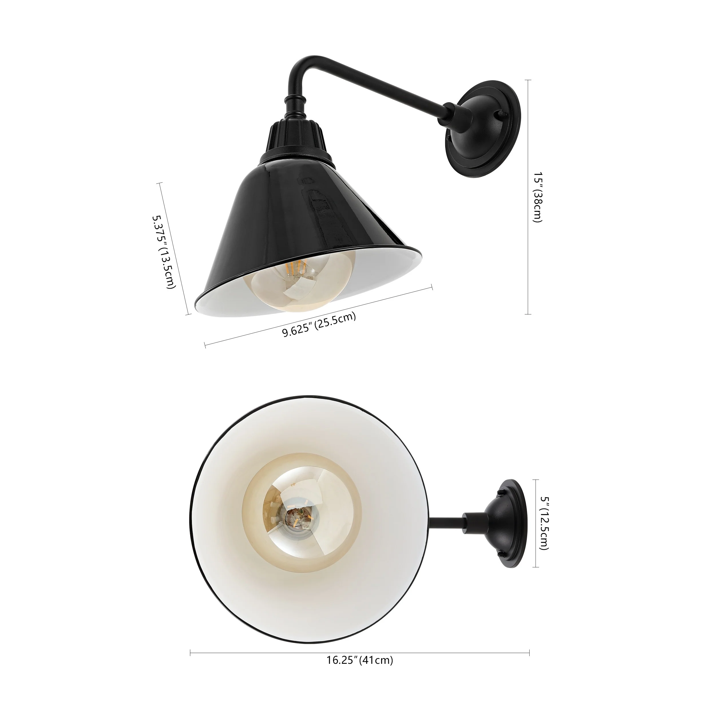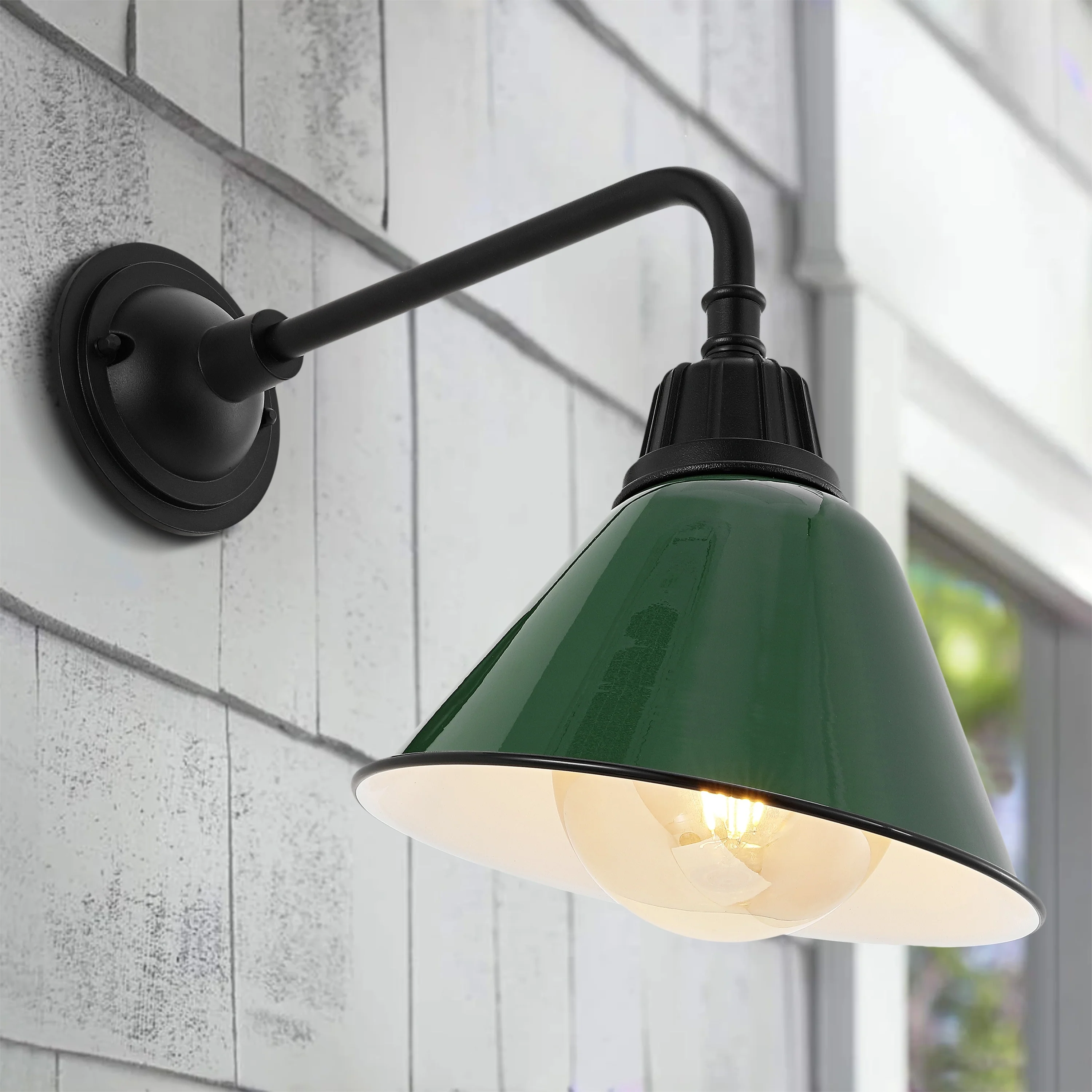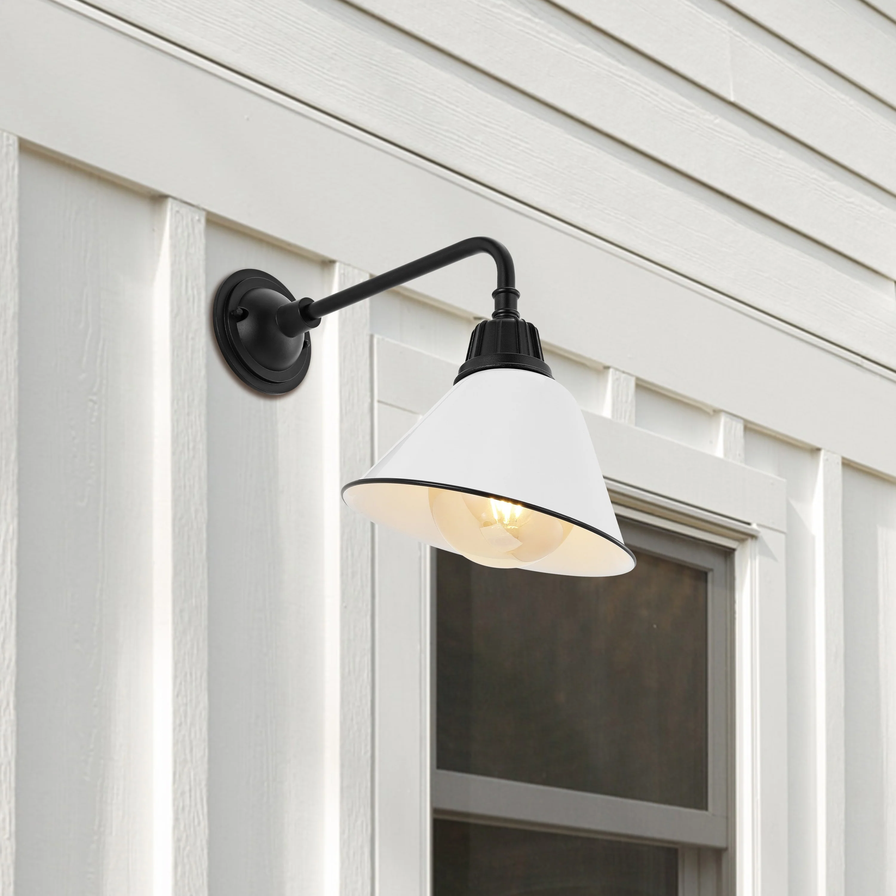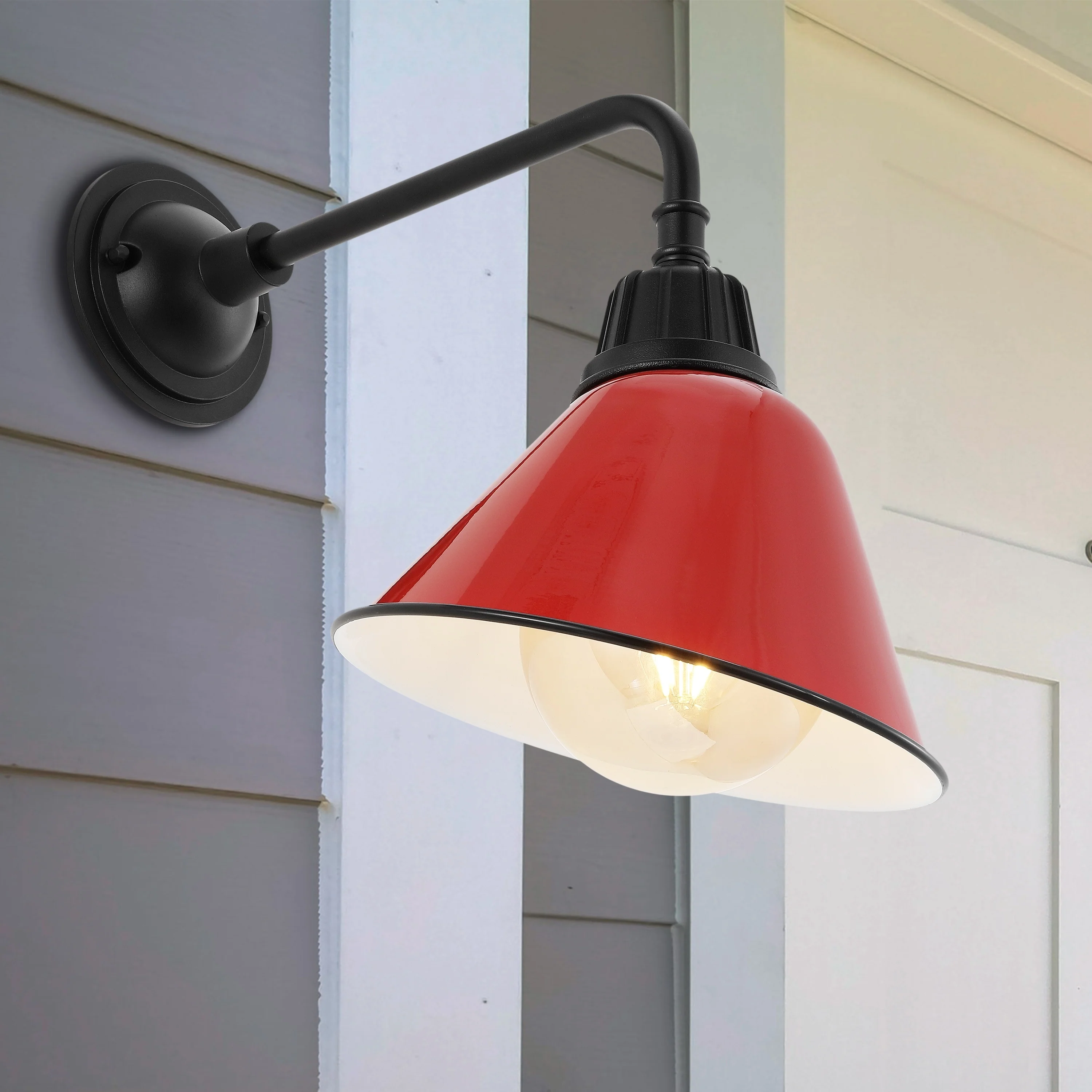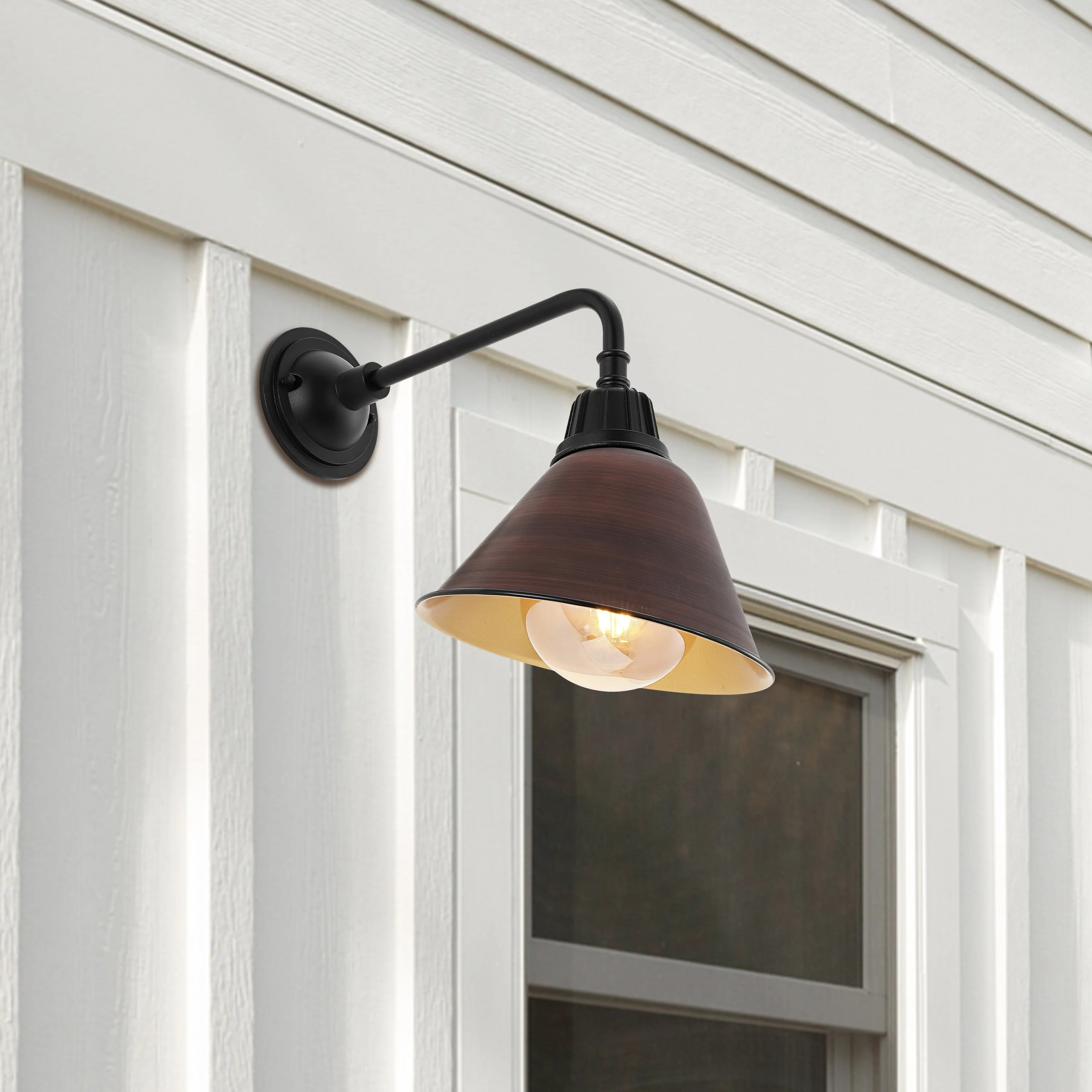 Aurora 9.63" 1-Light Farmhouse Industrial Indoor/Outdoor Iron LED Gooseneck Arm Outdoor Sconce, by JONATHAN Y - 9.63