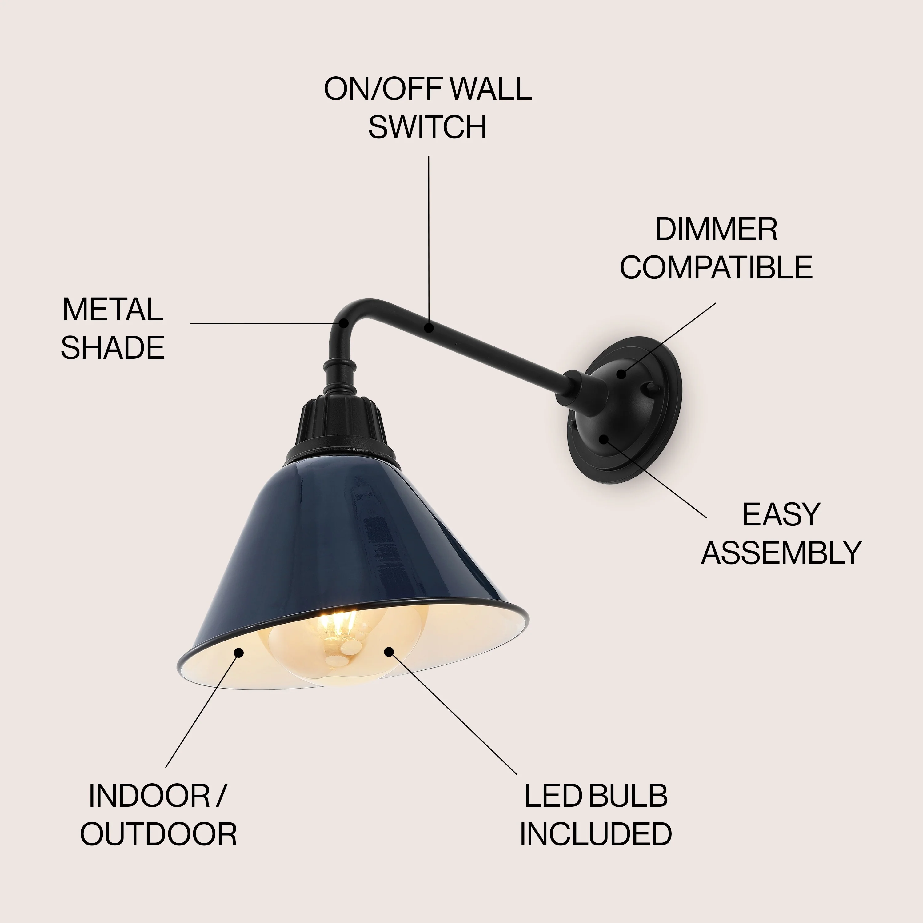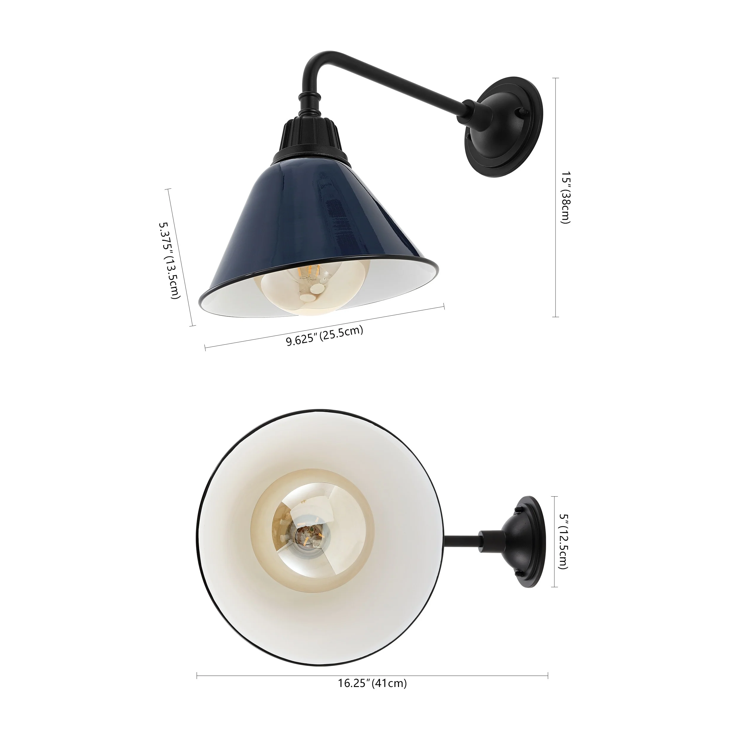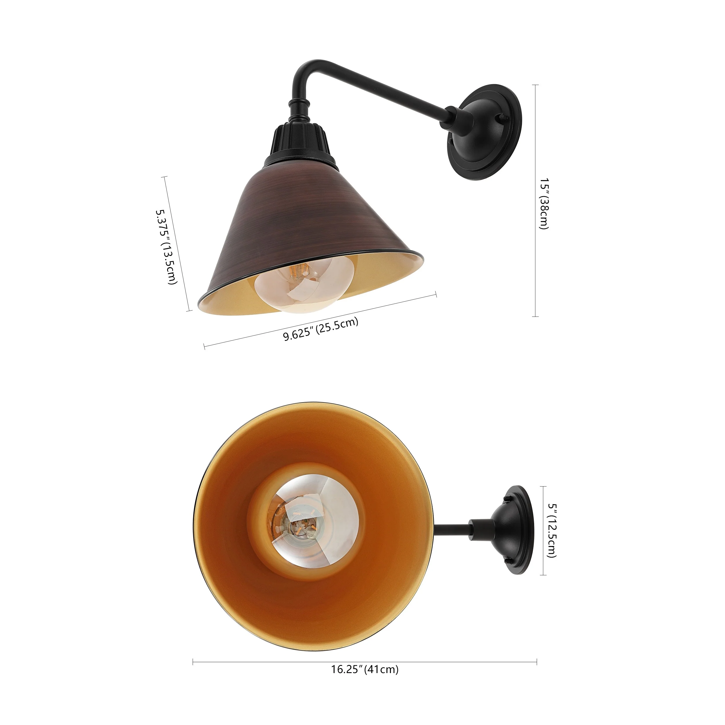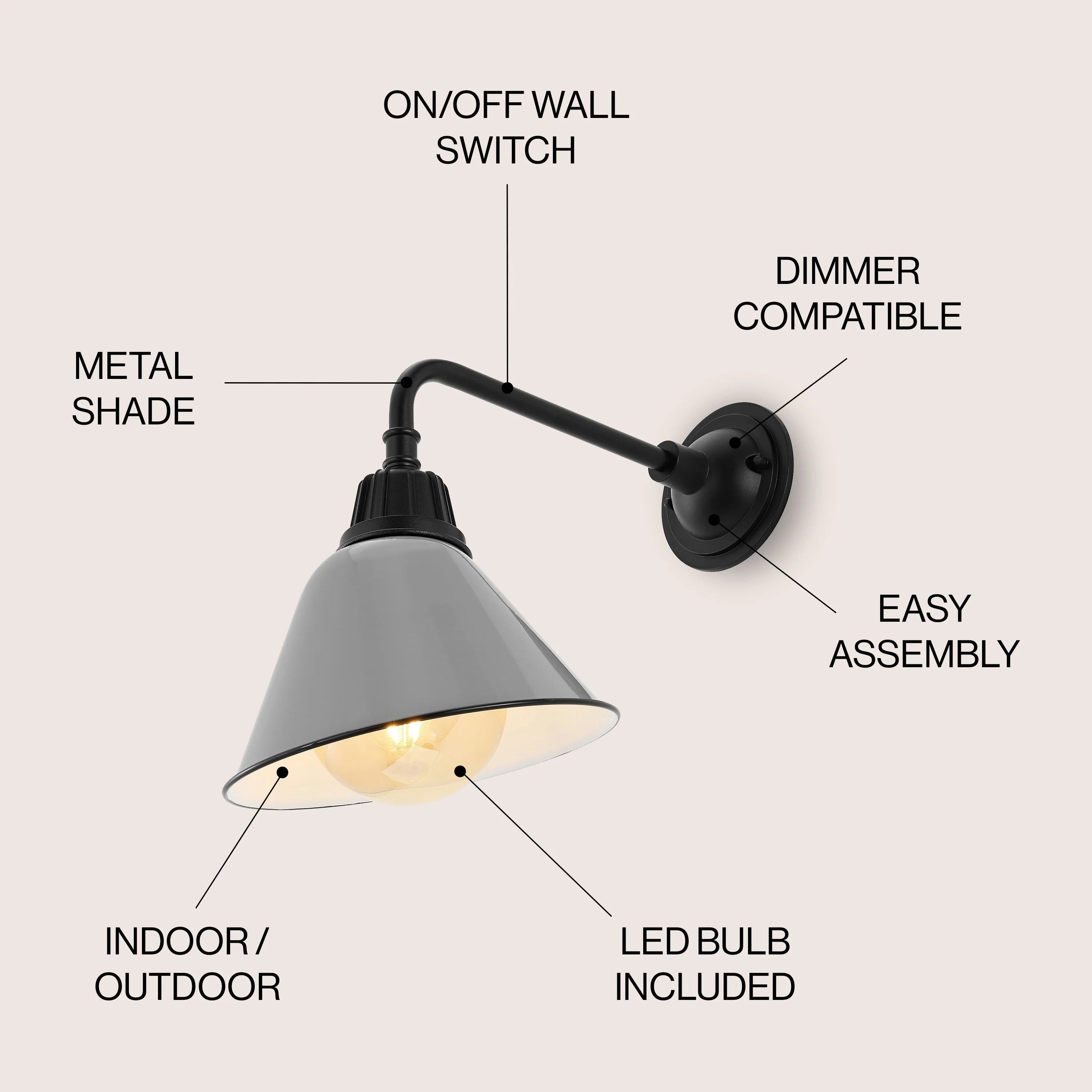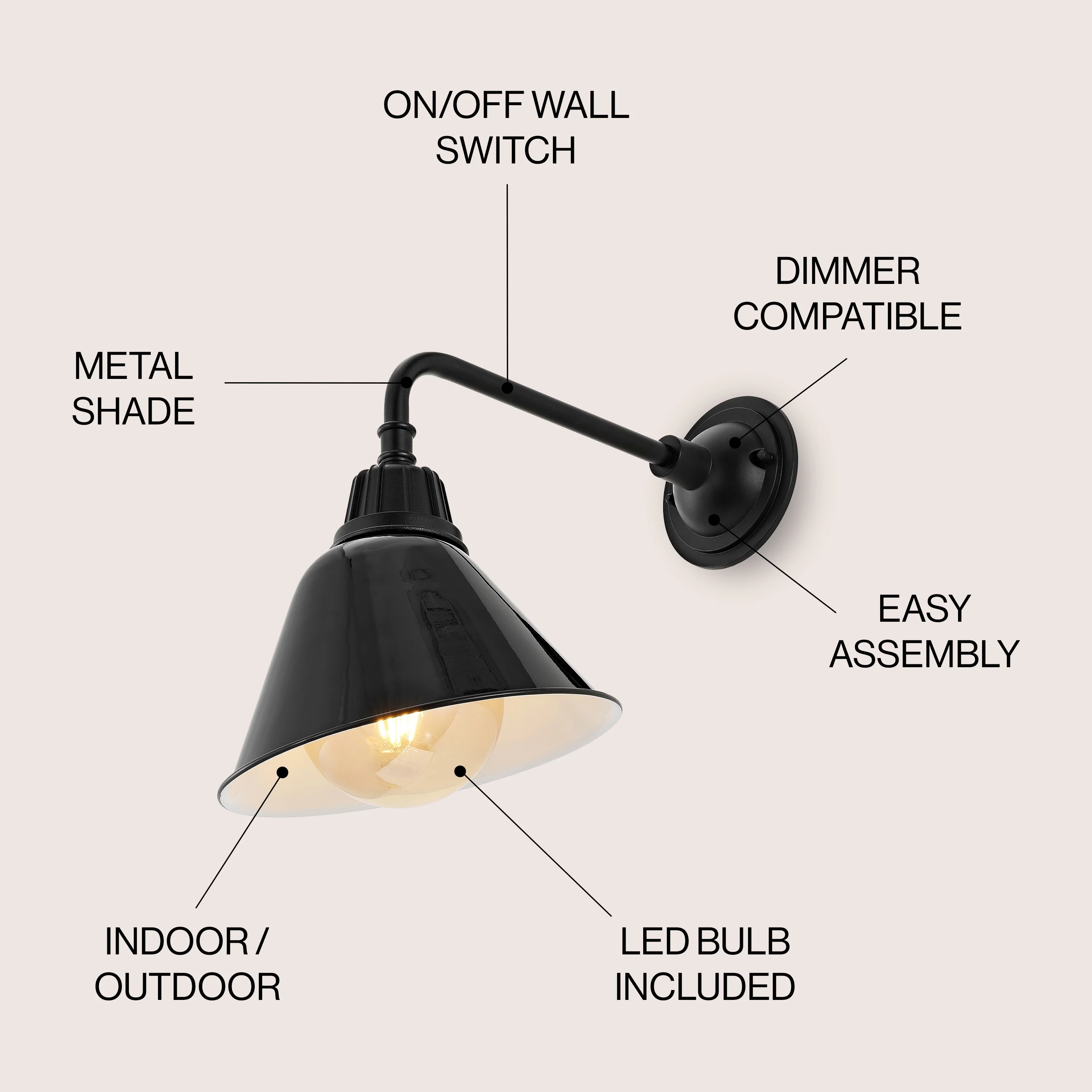 Aurora 9.63" 1-Light Farmhouse Industrial Indoor/Outdoor Iron LED Gooseneck Arm Outdoor Sconce, by JONATHAN Y - 9.63