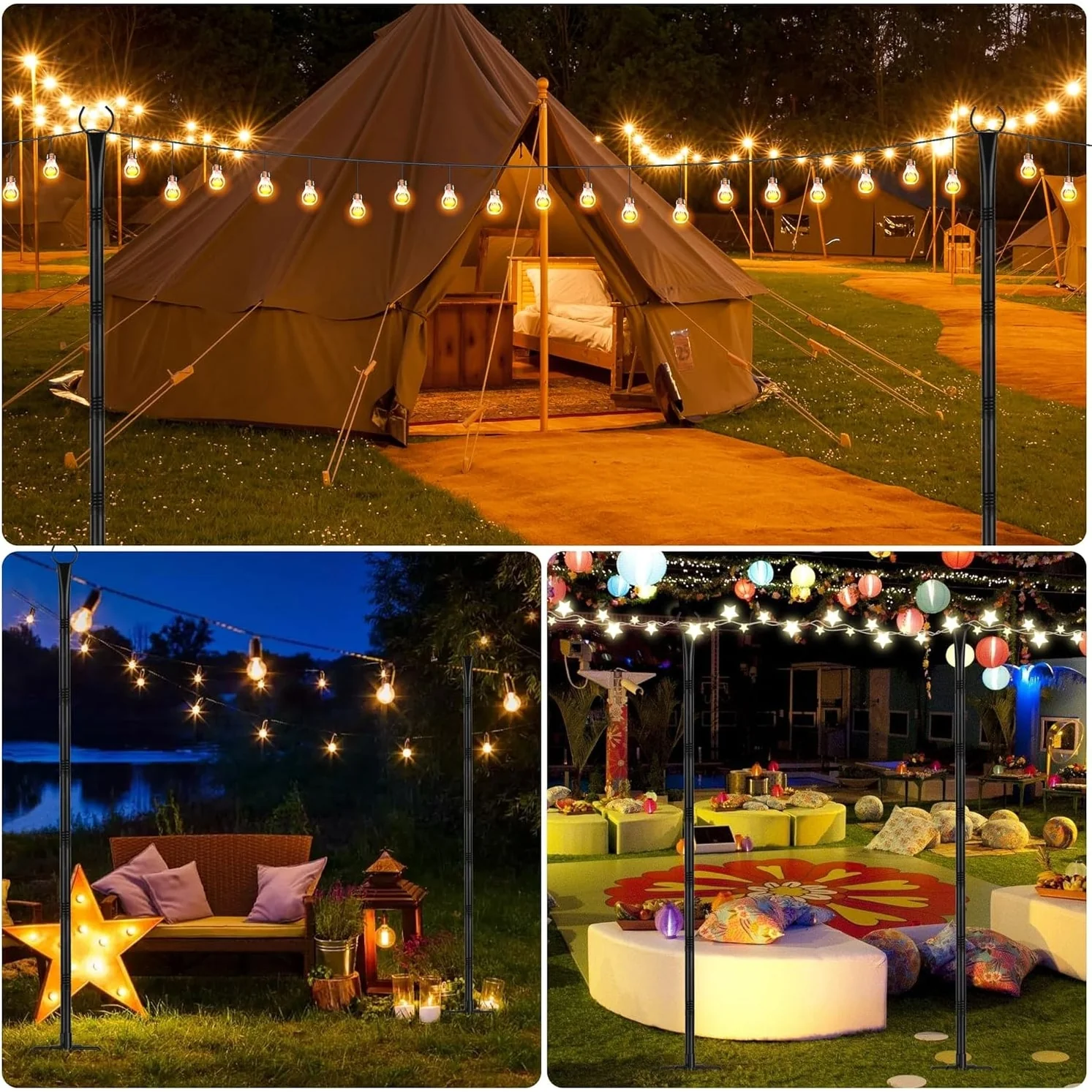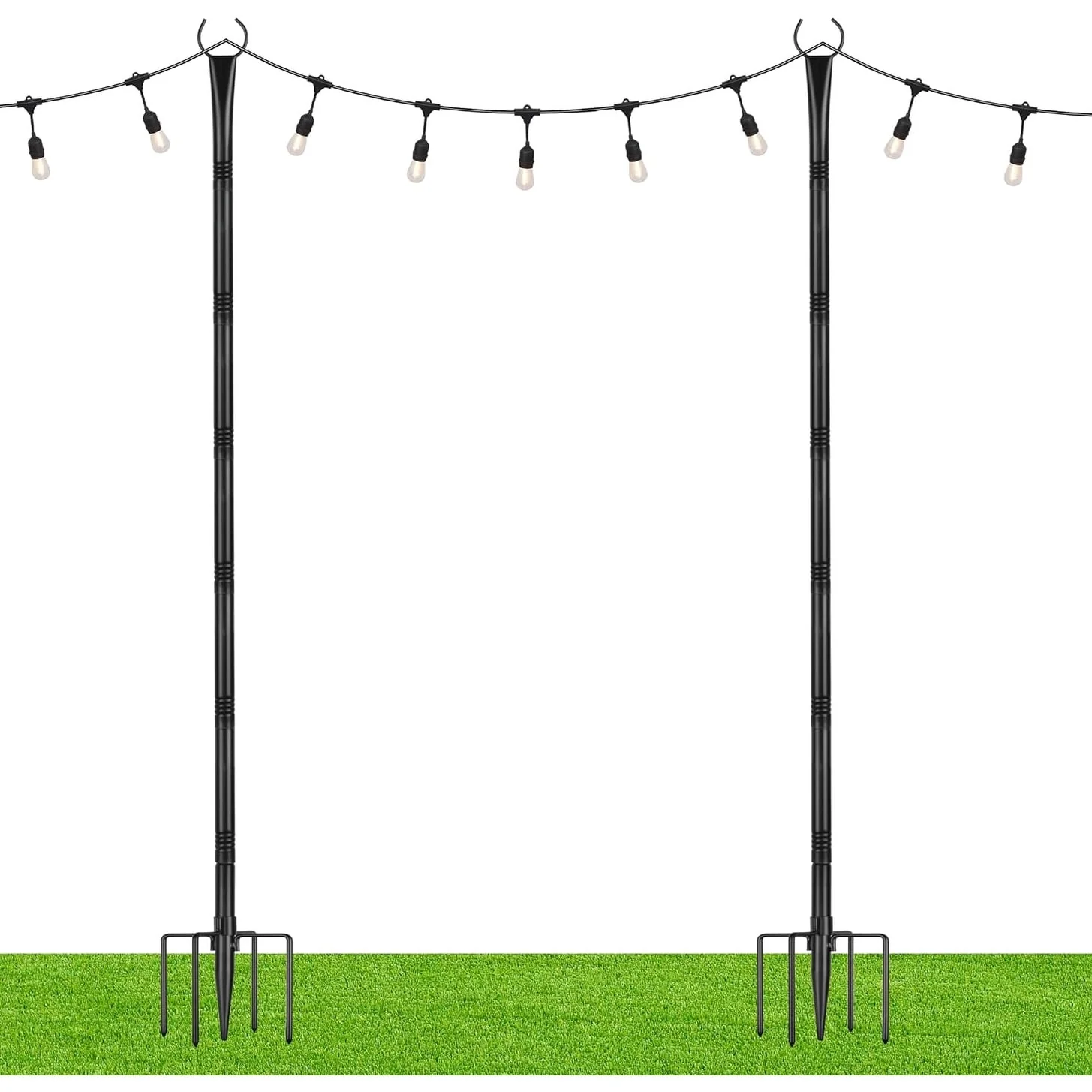 Suchtale String Light Poles with Hooks, Outdoor Metal String Lights with 5-Prong Fork