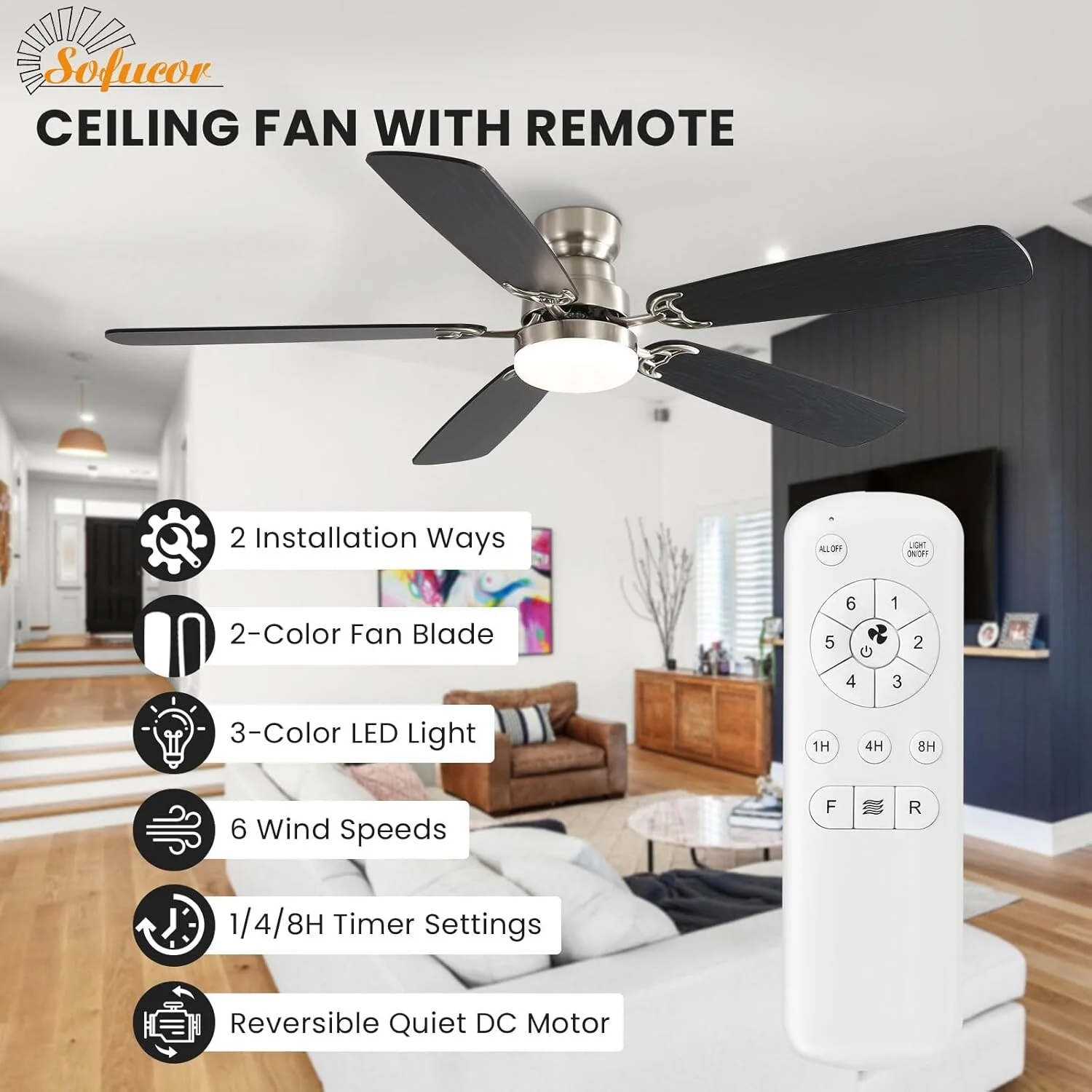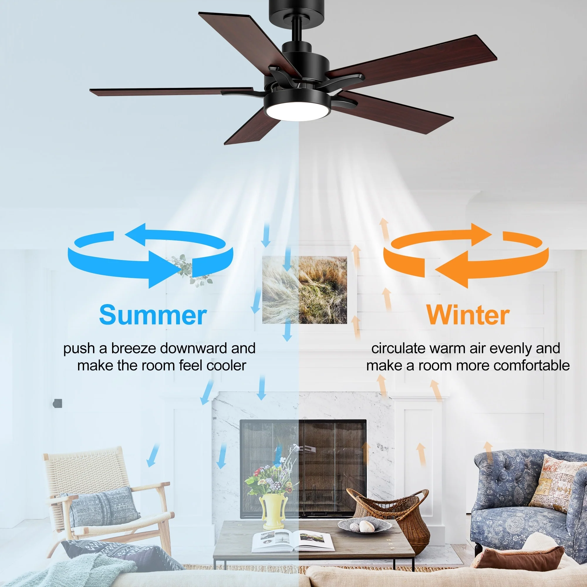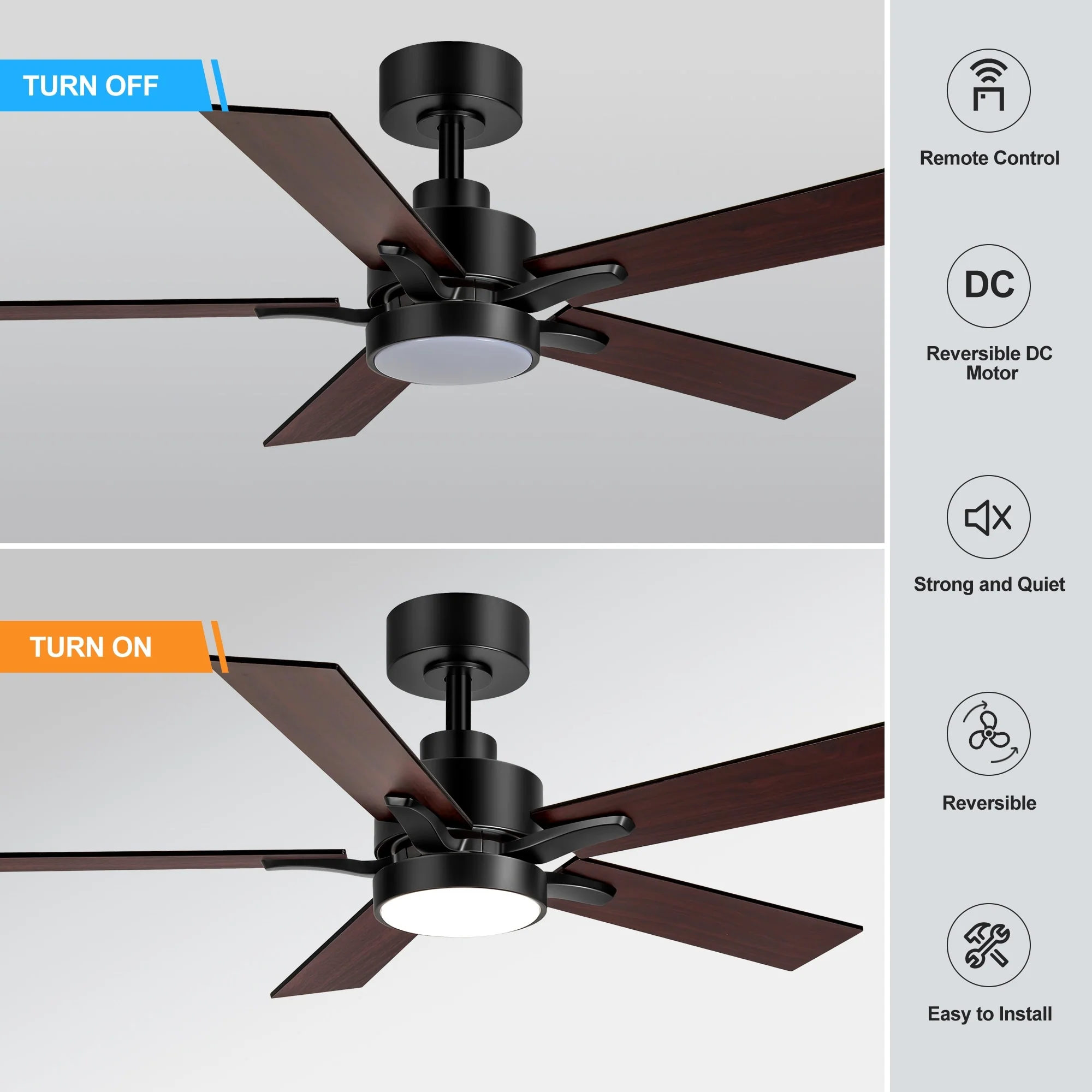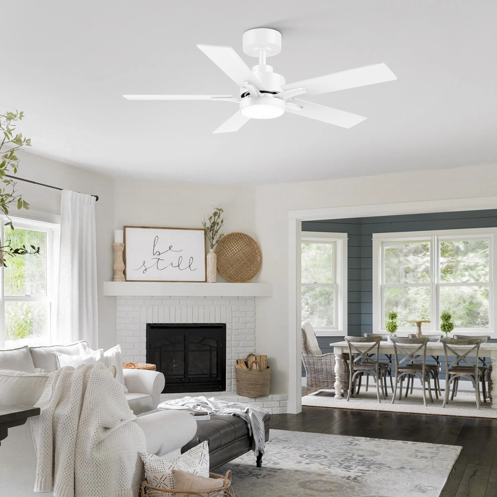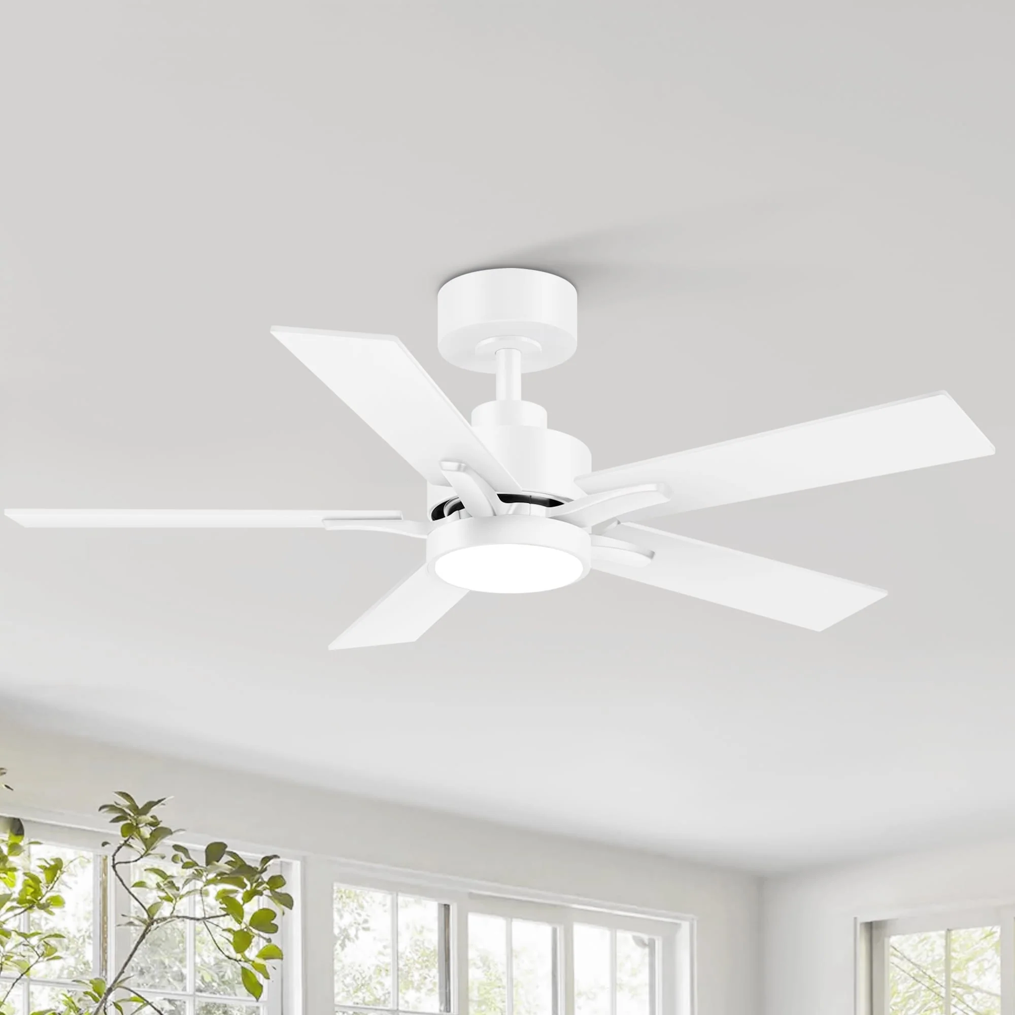 48" and 52" Integrated LED Ceiling Fan with Light and Remote, Reversible DC Motor