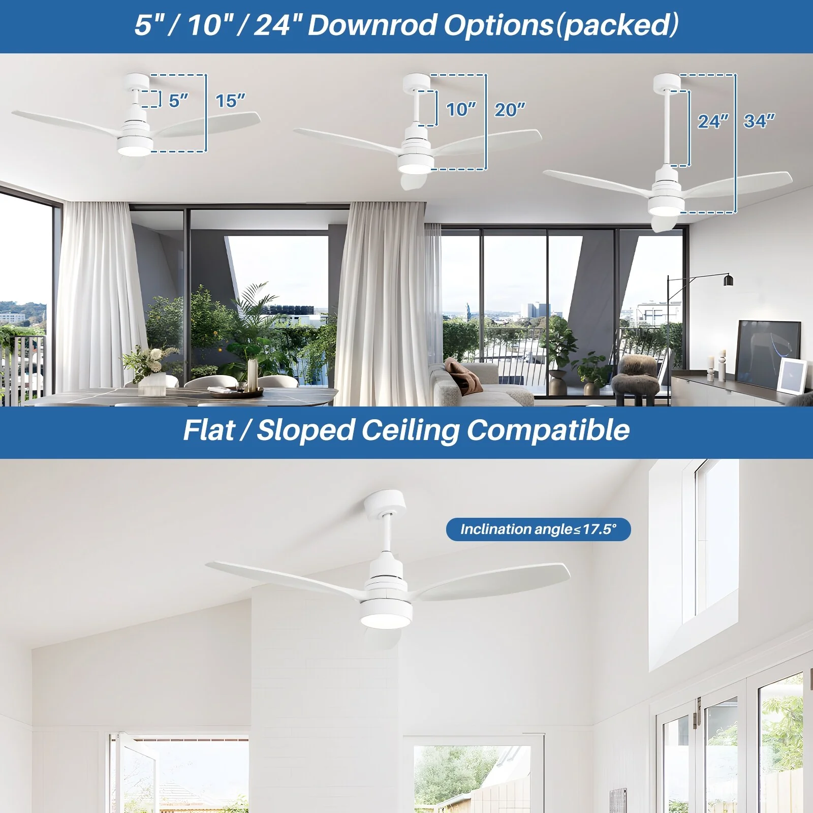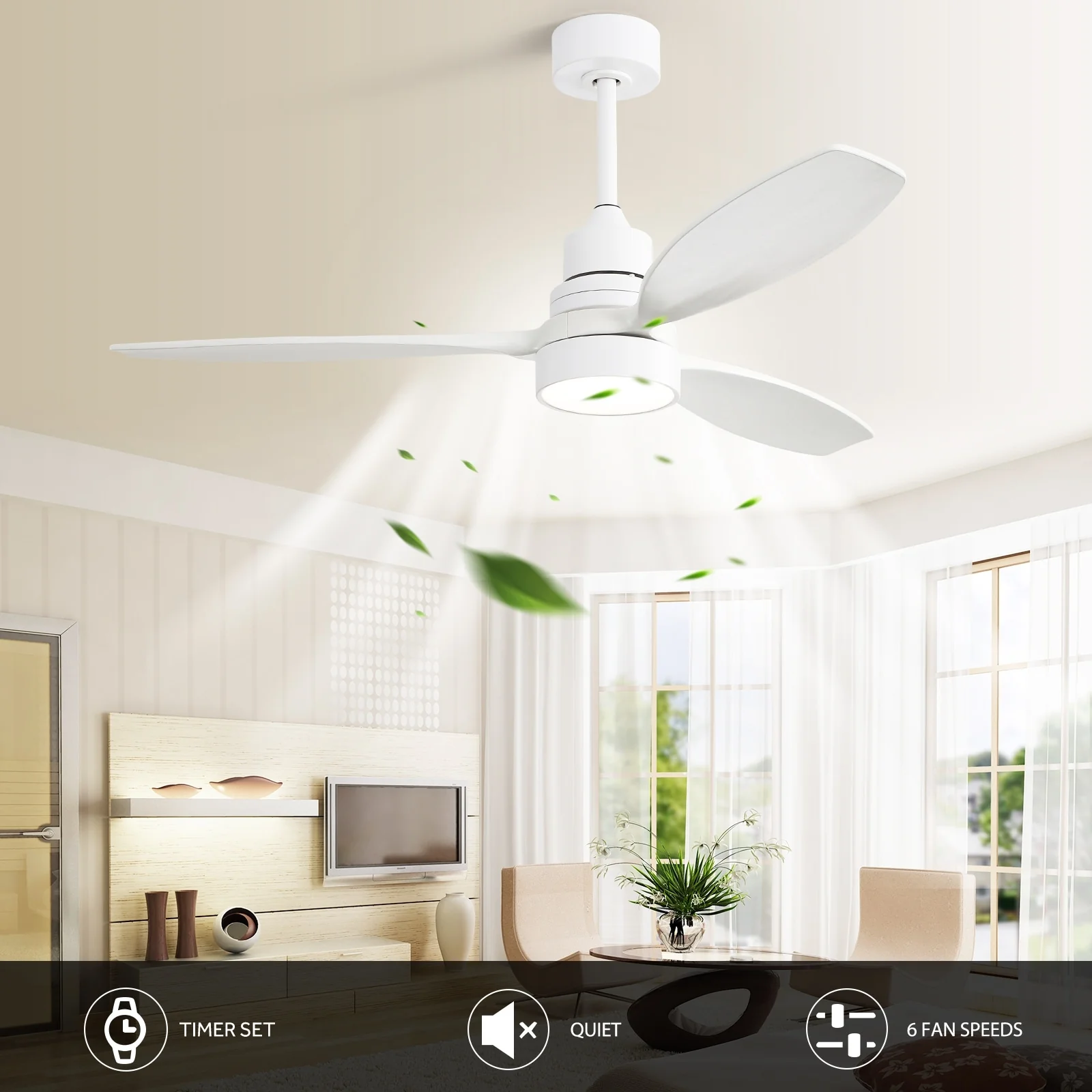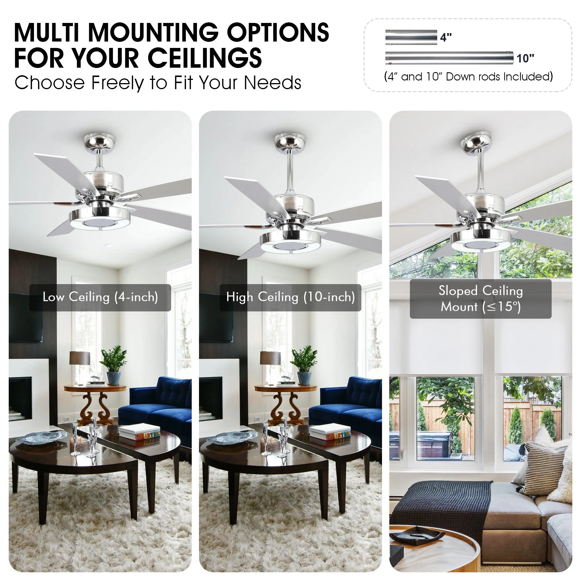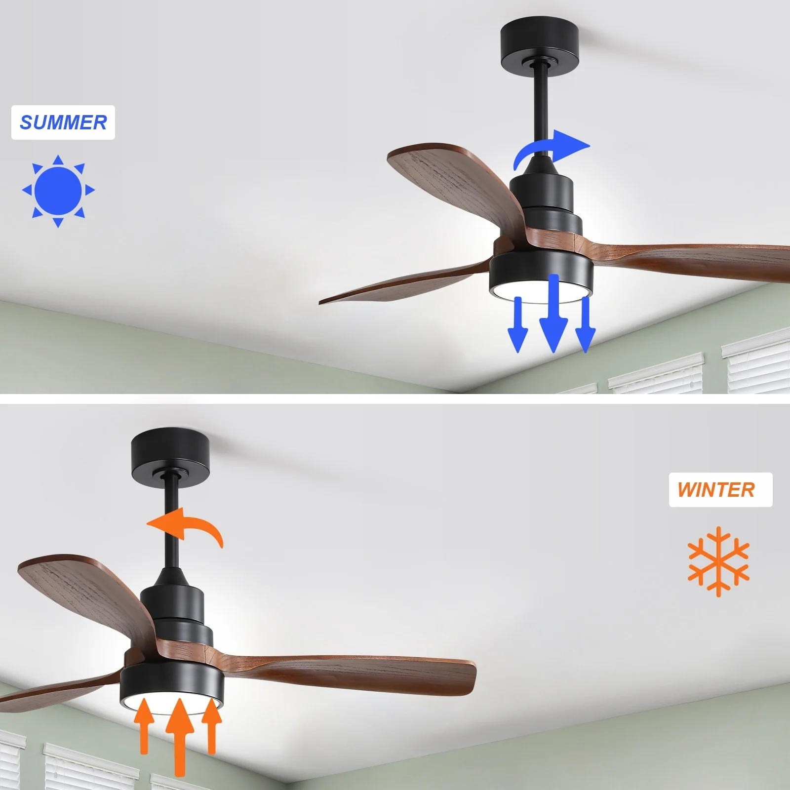 48" and 52" Integrated LED Ceiling Fan with Light and Remote, Reversible DC Motor
